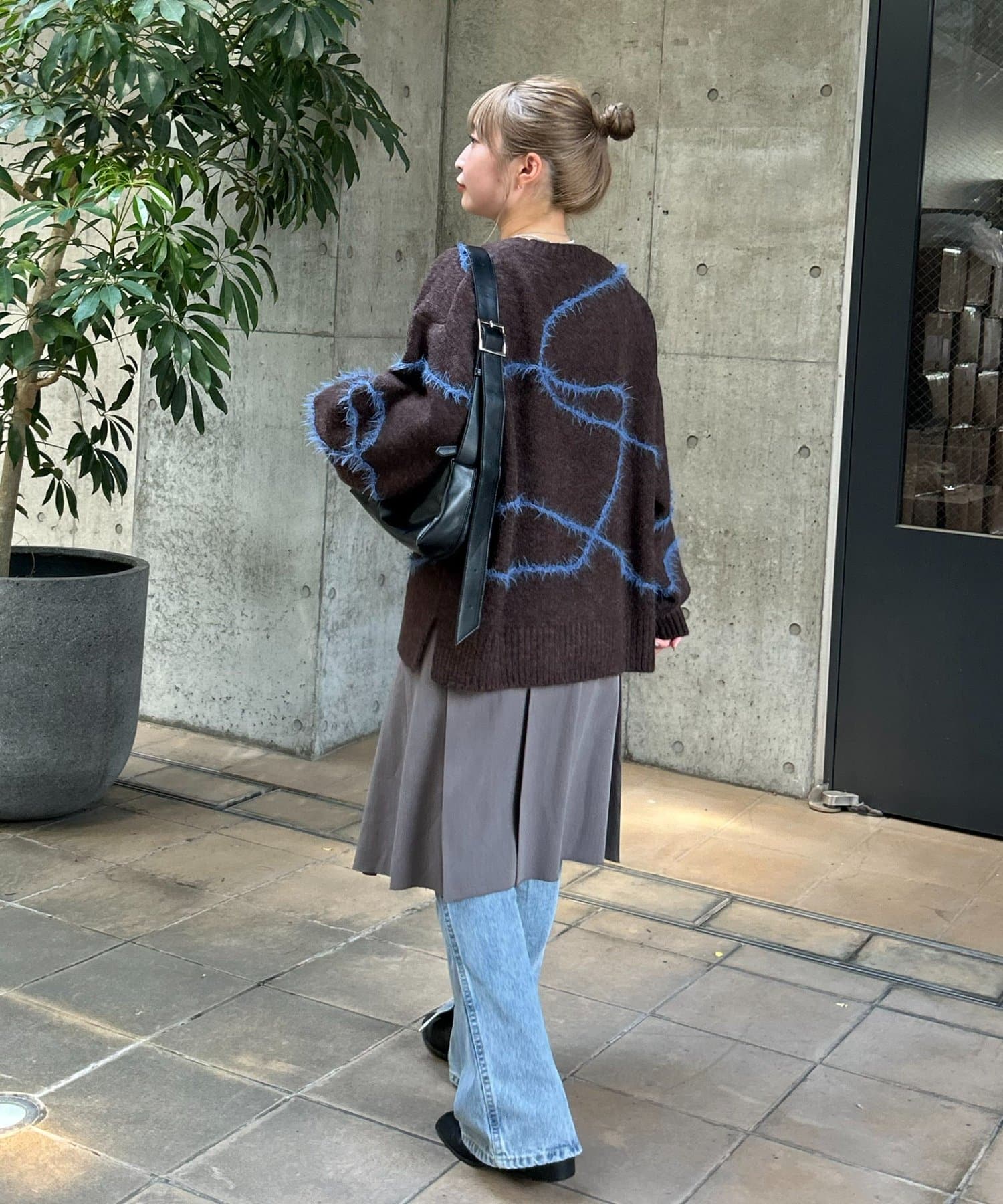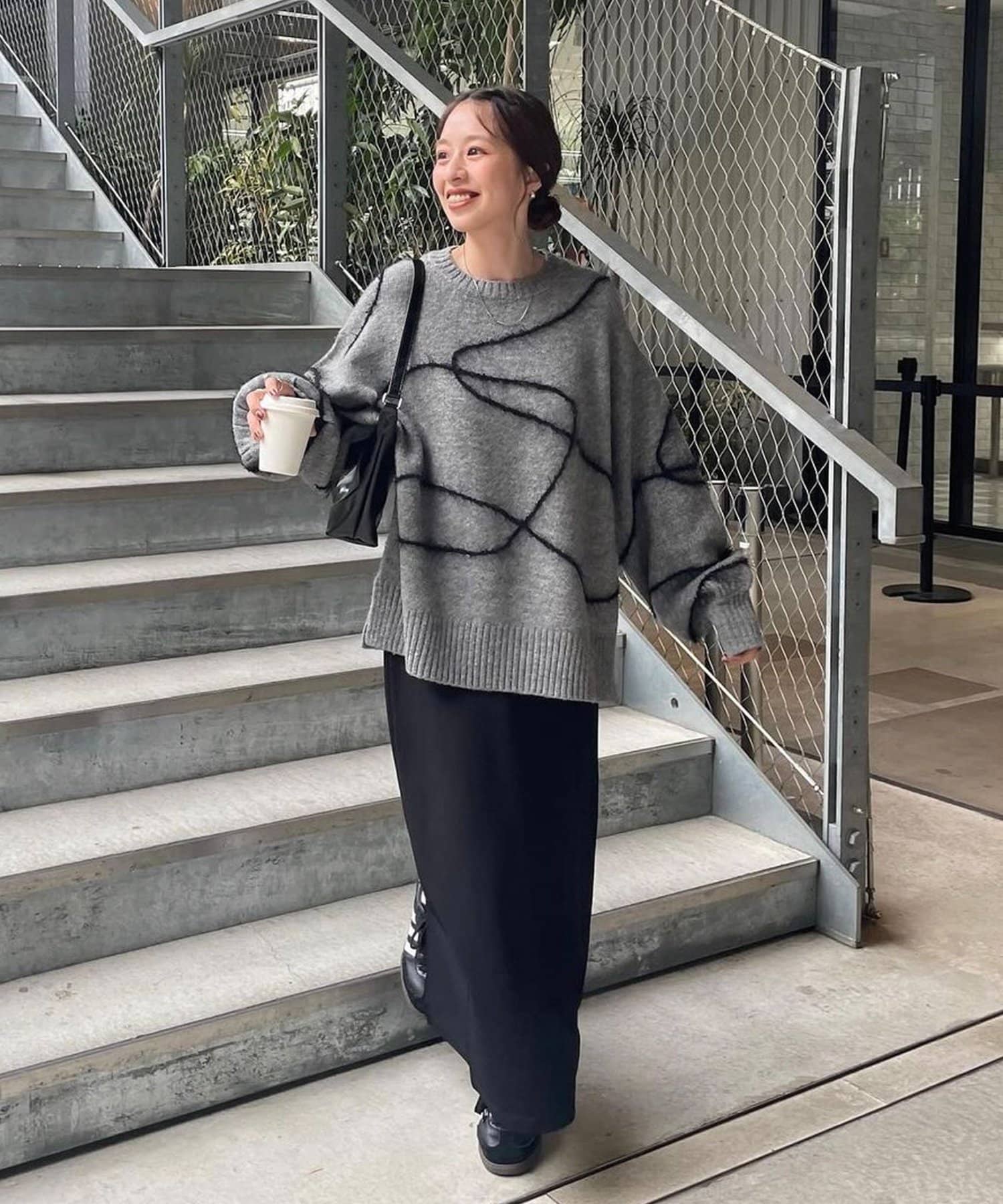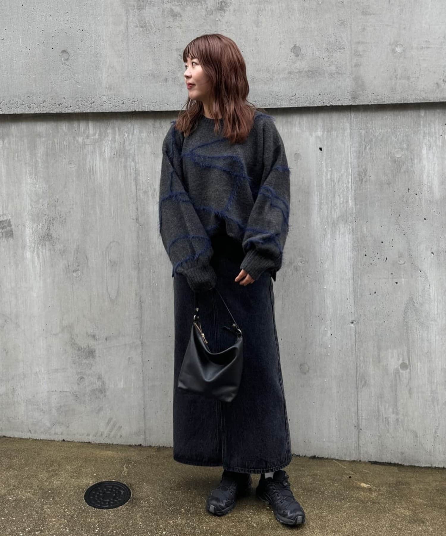 一枚で目を惹くアイテムなのでシンプルなボトムに合わせるだけでこなれたスタイリングが完成します。
