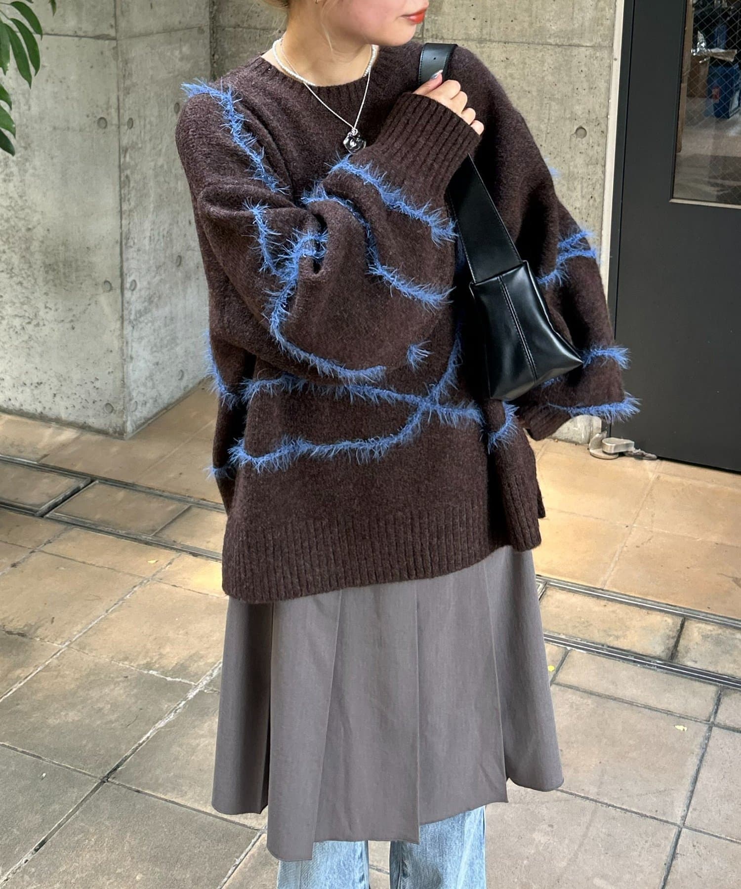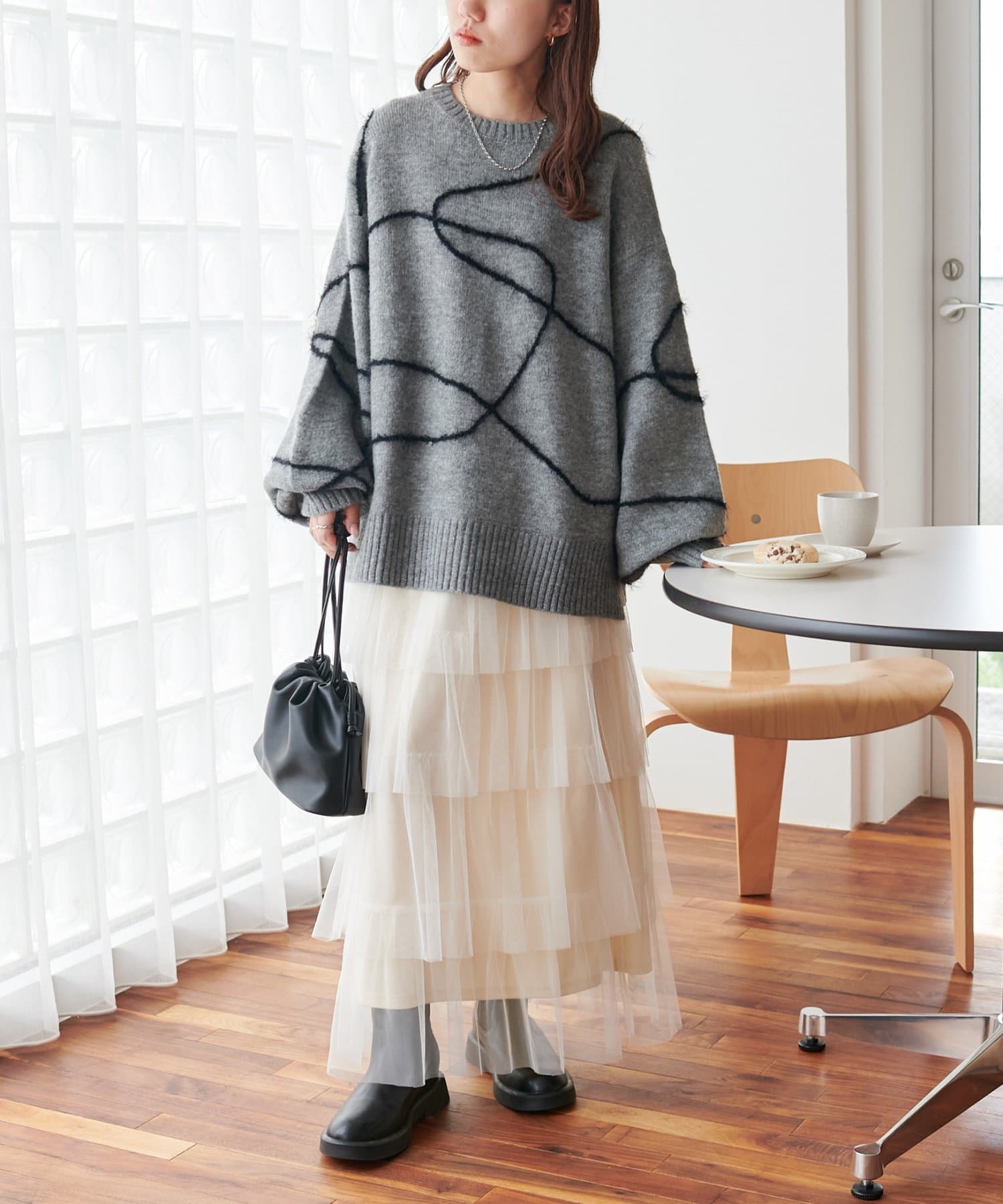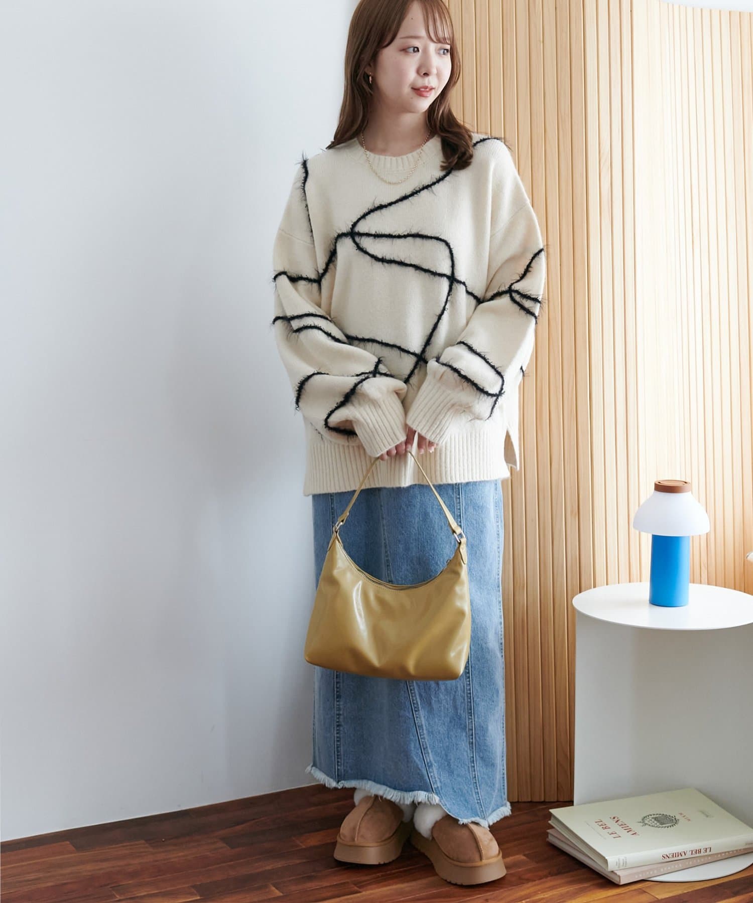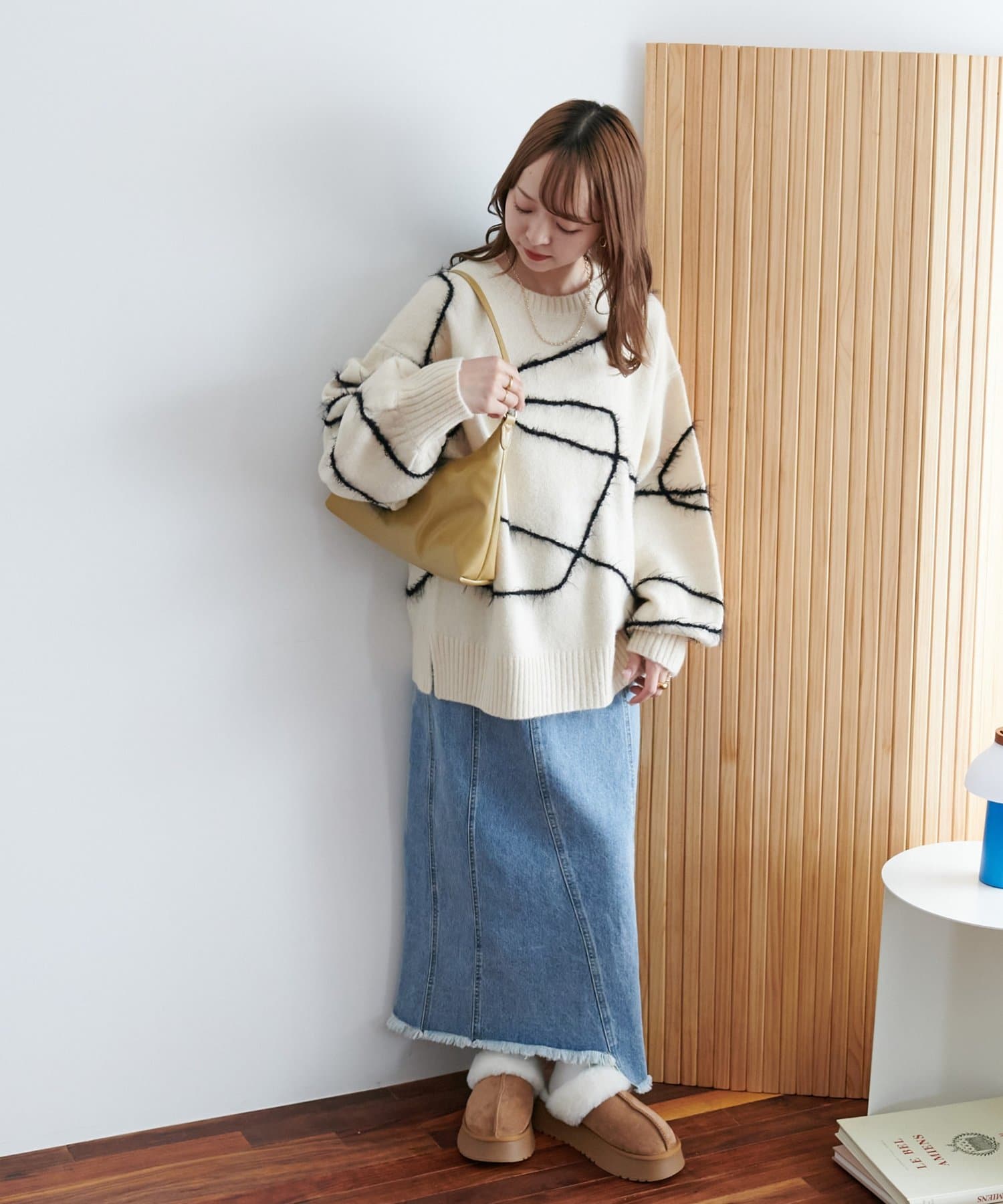 一枚で目を惹くアイテムなのでシンプルなボトムに合わせるだけでこなれたスタイリングが完成します。