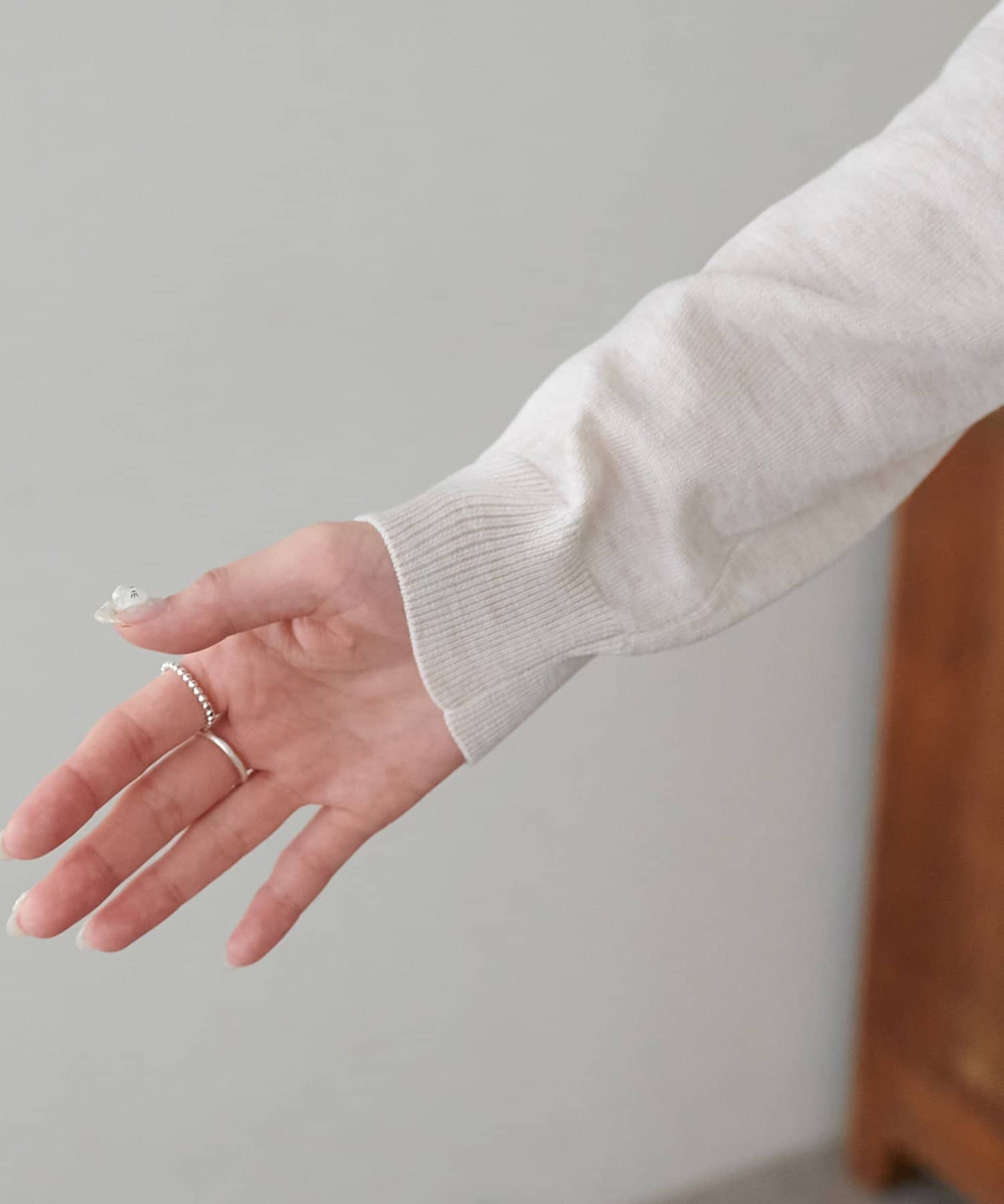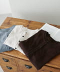 ボリューム感があまりないので、ボトムスのシルエット問わず着まわせます。肌ざわりが柔らかく、長時間着ていても快適です!