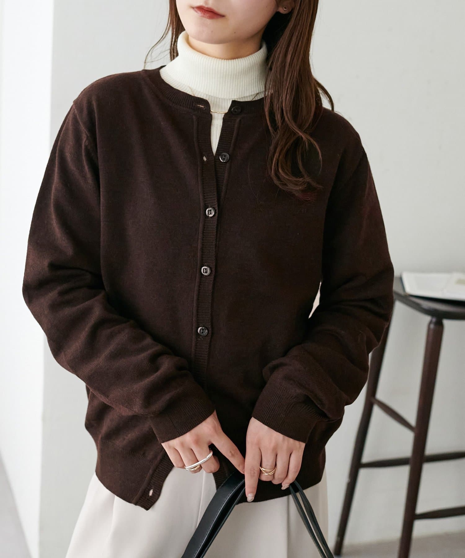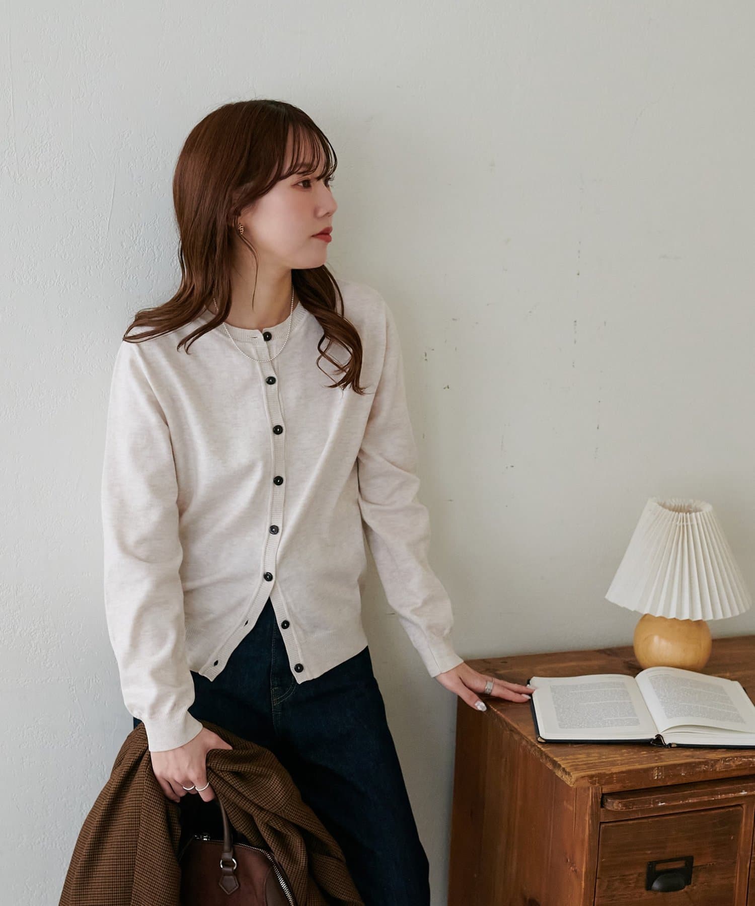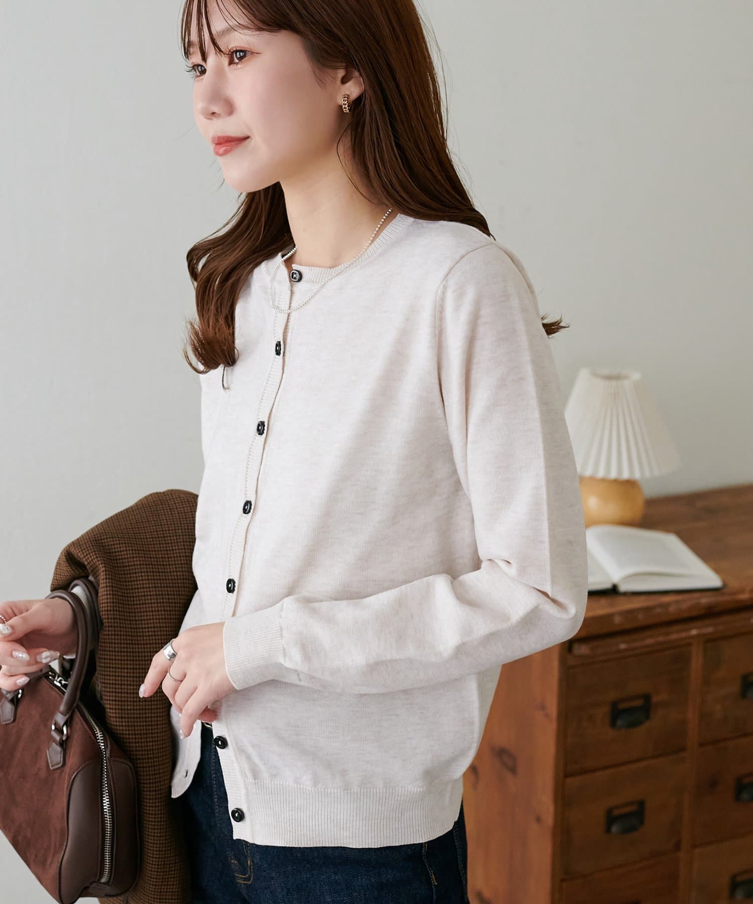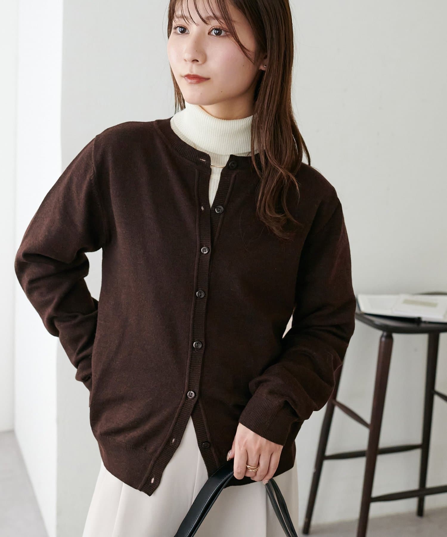 ベーシックながらも上品に着こなせるクルーネックカーディガン