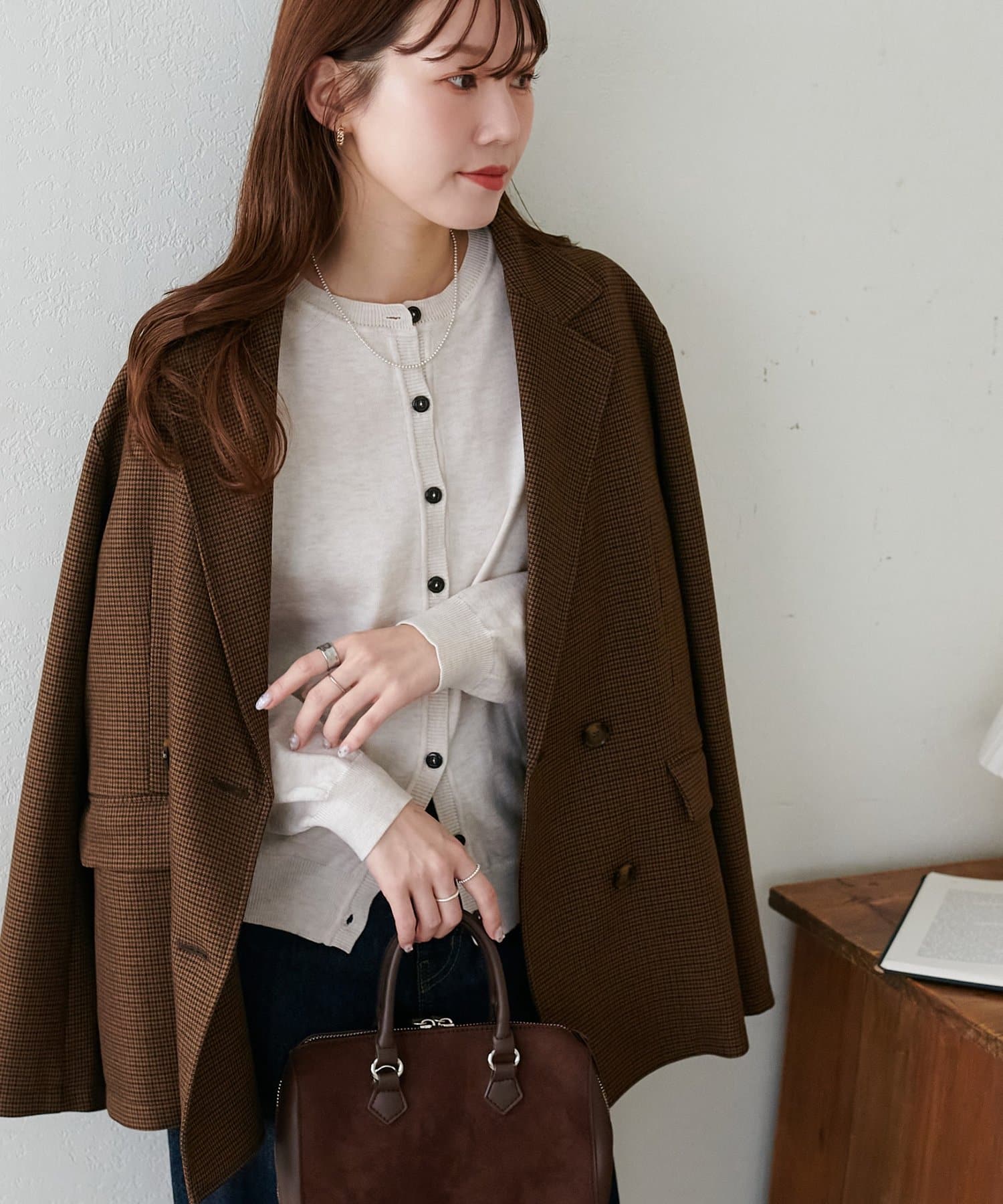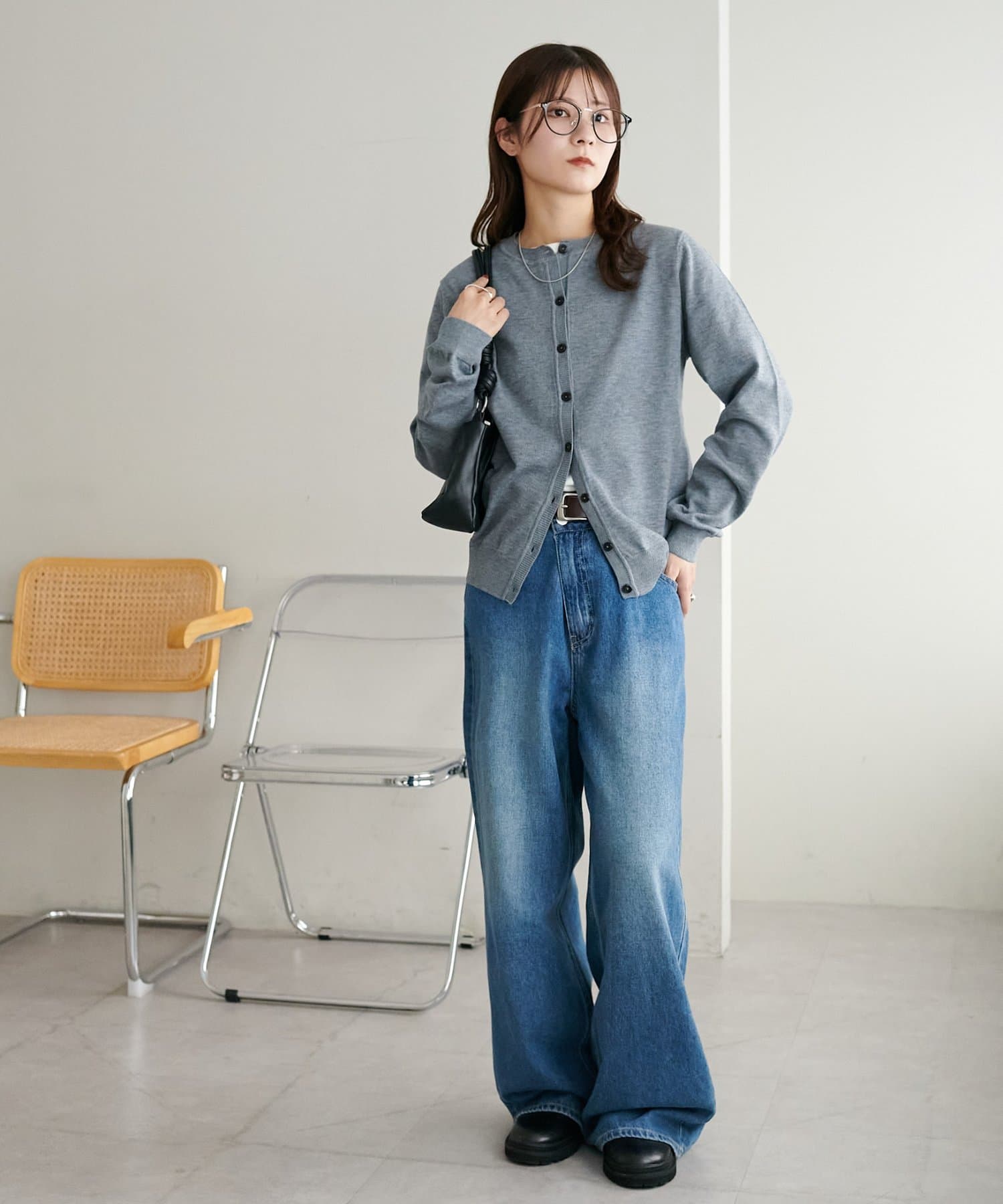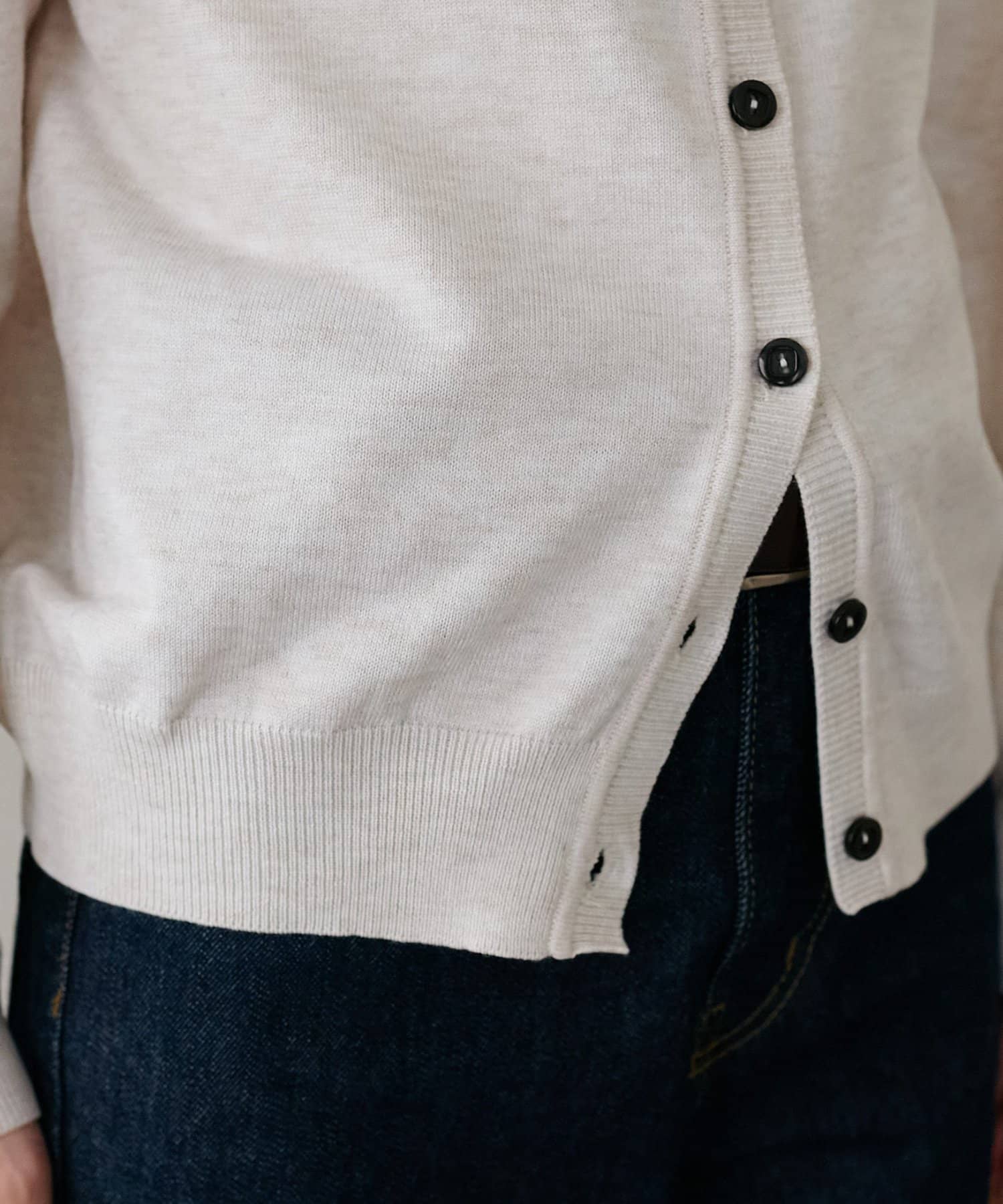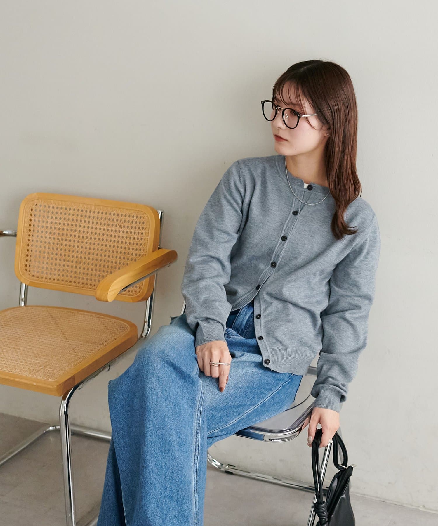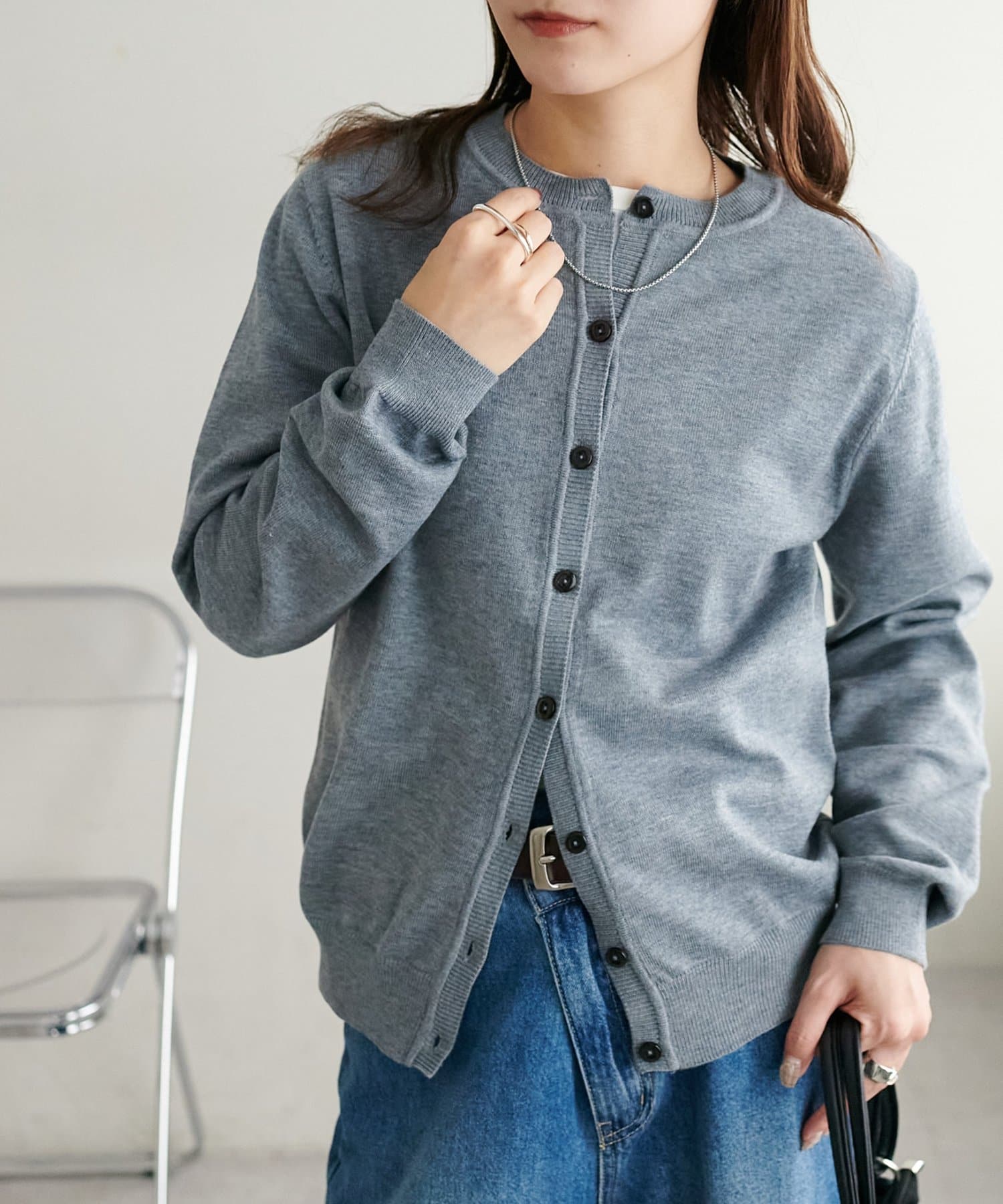 ベーシックながらも上品に着こなせるクルーネックカーディガン