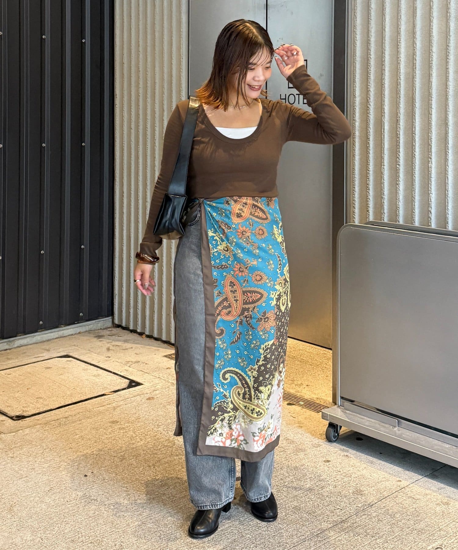 長すぎず短すぎない絶妙な丈感で、インしてもアウトで着てもシルエットがきれいに決まります。