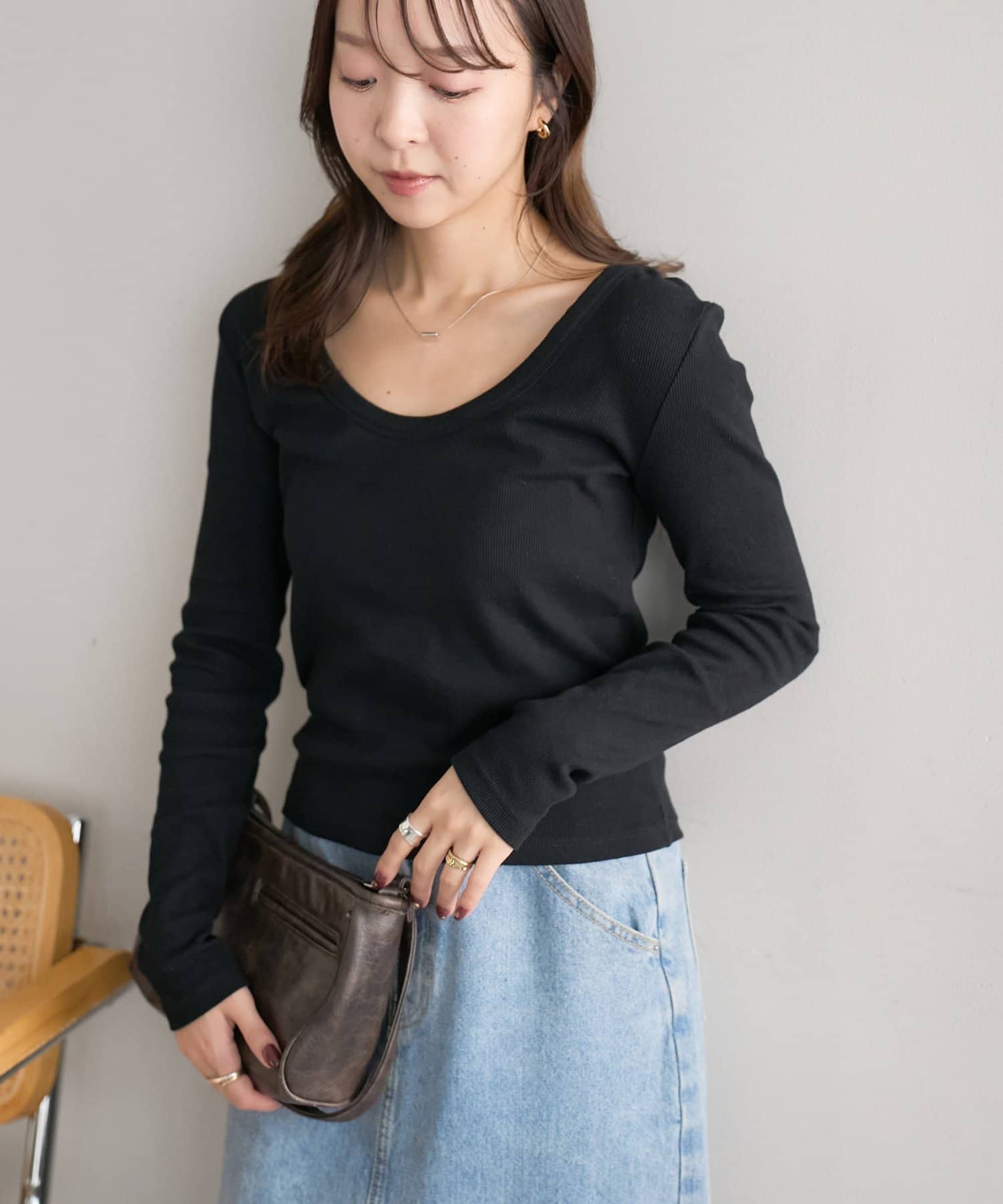 【@a_min1203企画/細見え◎/前後2WAY】リブカットUネックロンT《WEB限定》