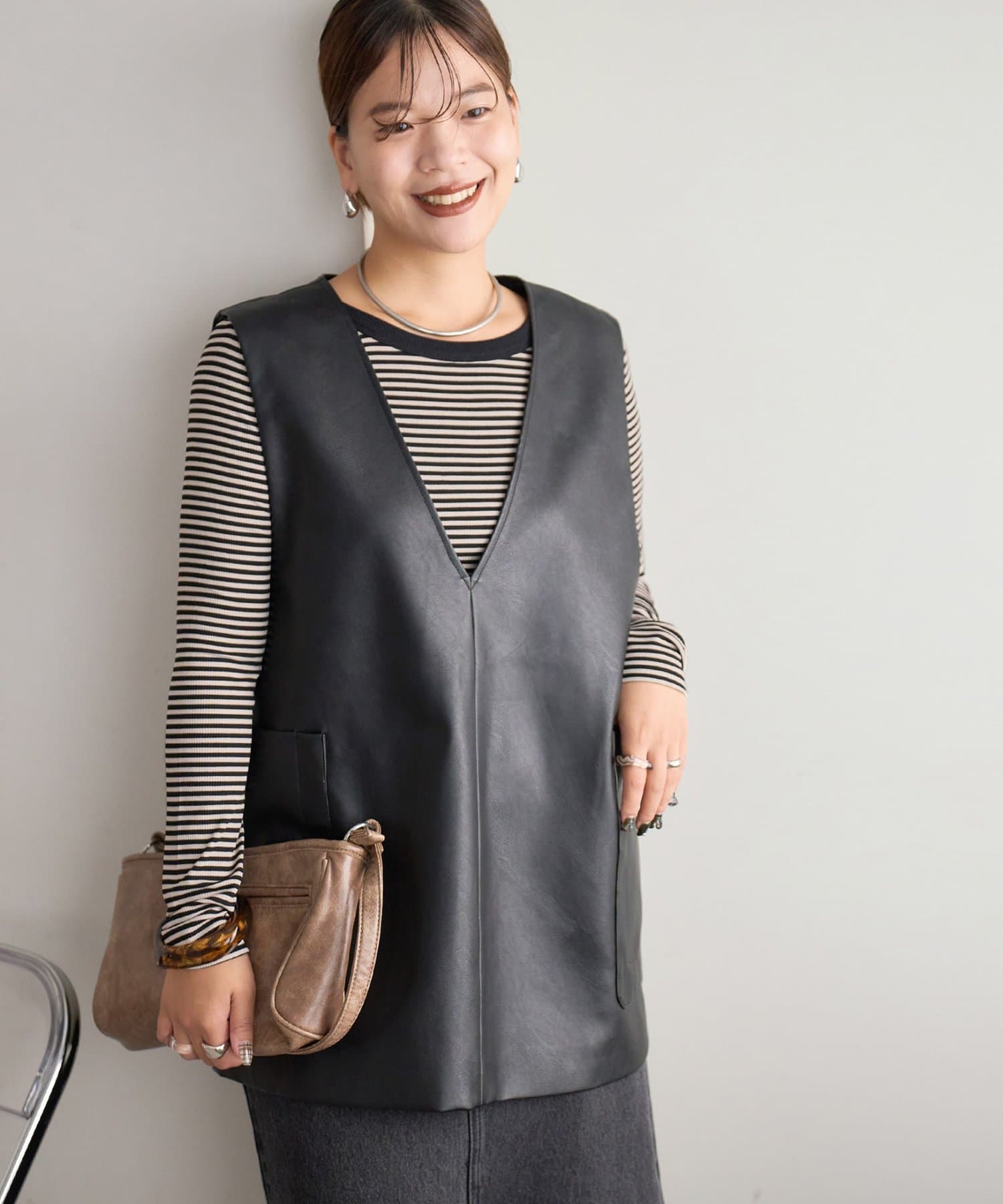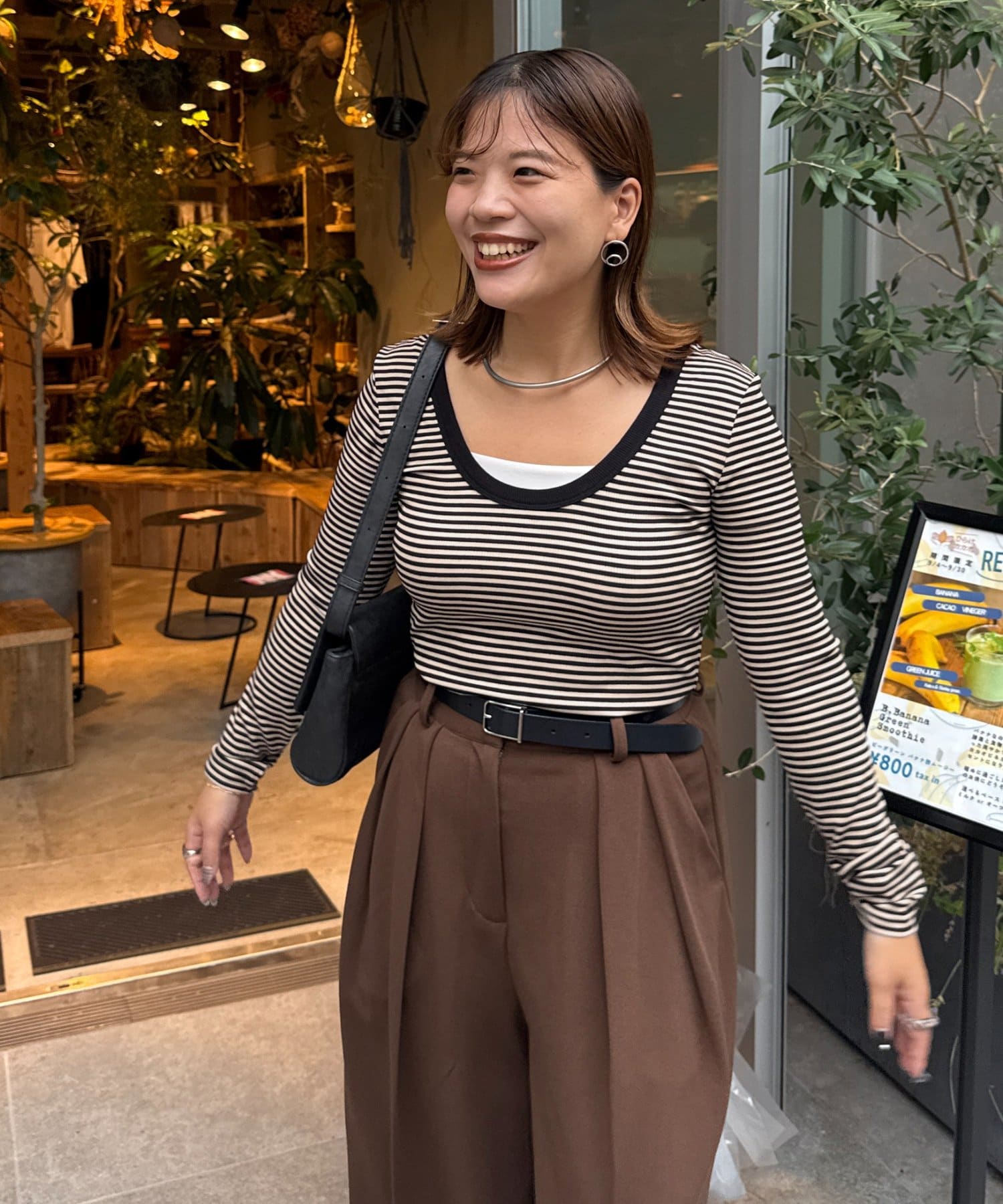 160cmスタッフ:前後2WAY仕様になっているので、コーデに合わせて首元の開き具合を変えられるのも嬉しいポイント◎伸縮性も抜群で着心地も良いです。