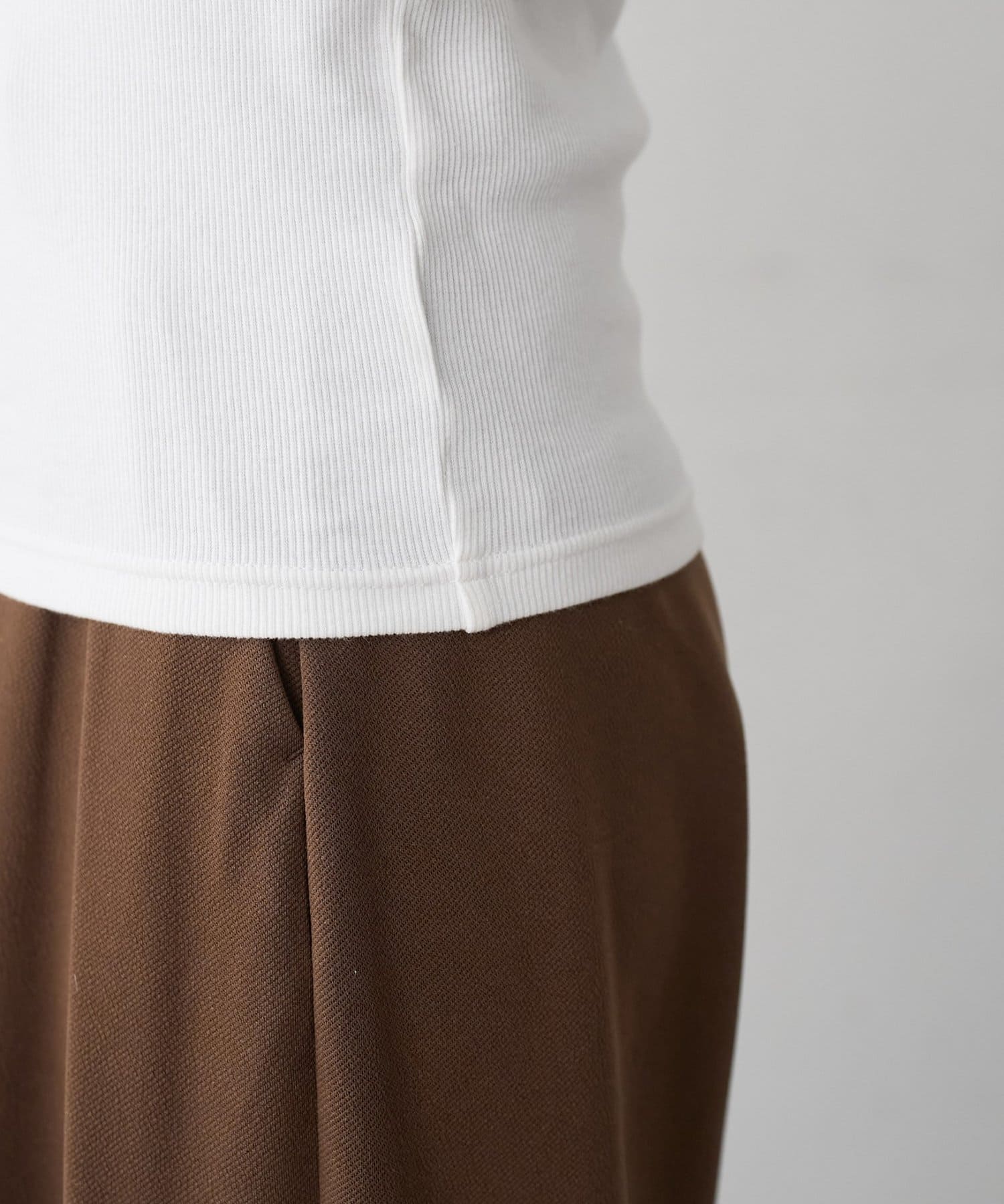 リブ素材特有のフィット感がありつつも、ボディラインを拾いすぎず、すっきりと見せてくれる絶妙なシルエットに仕上げました。