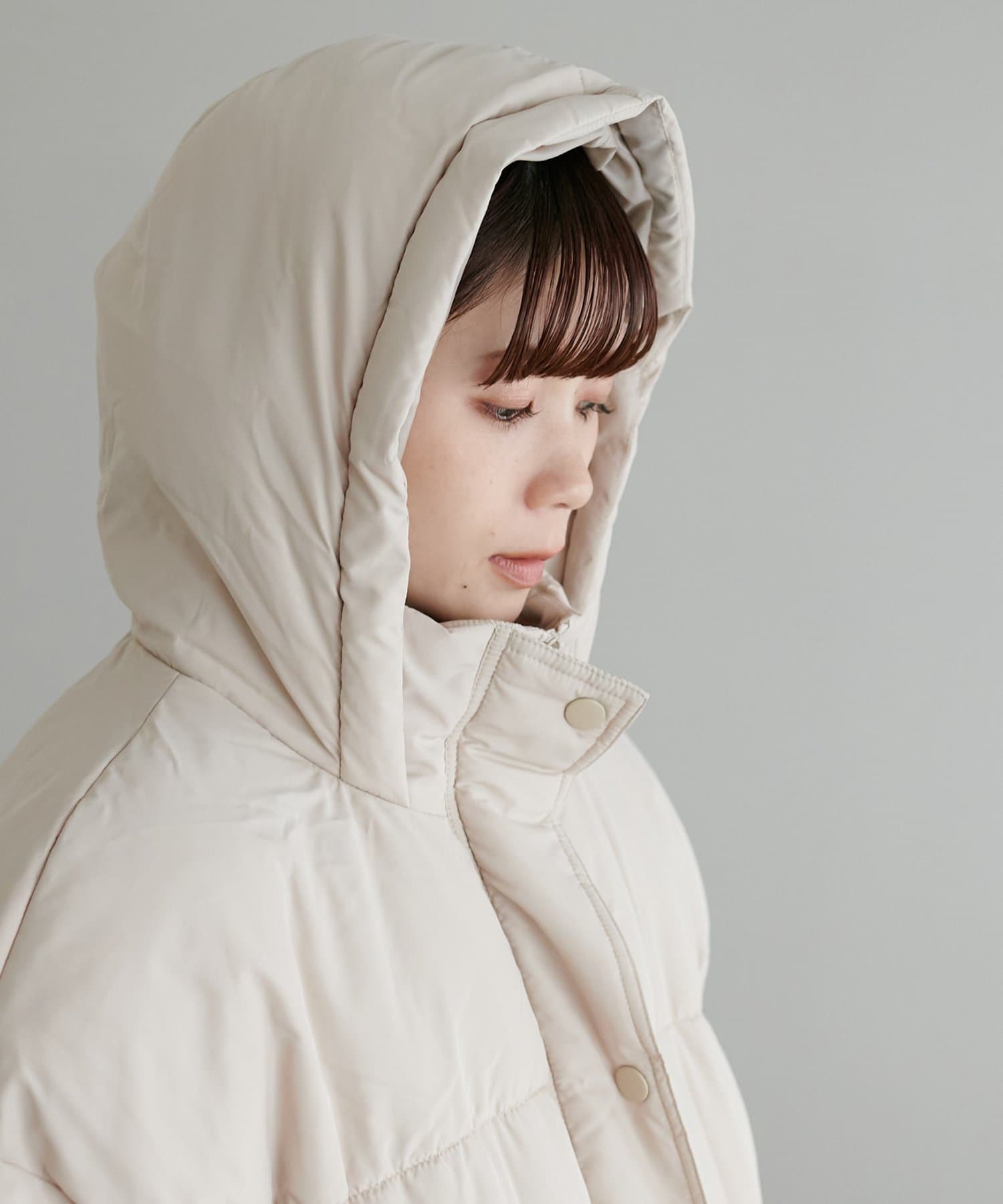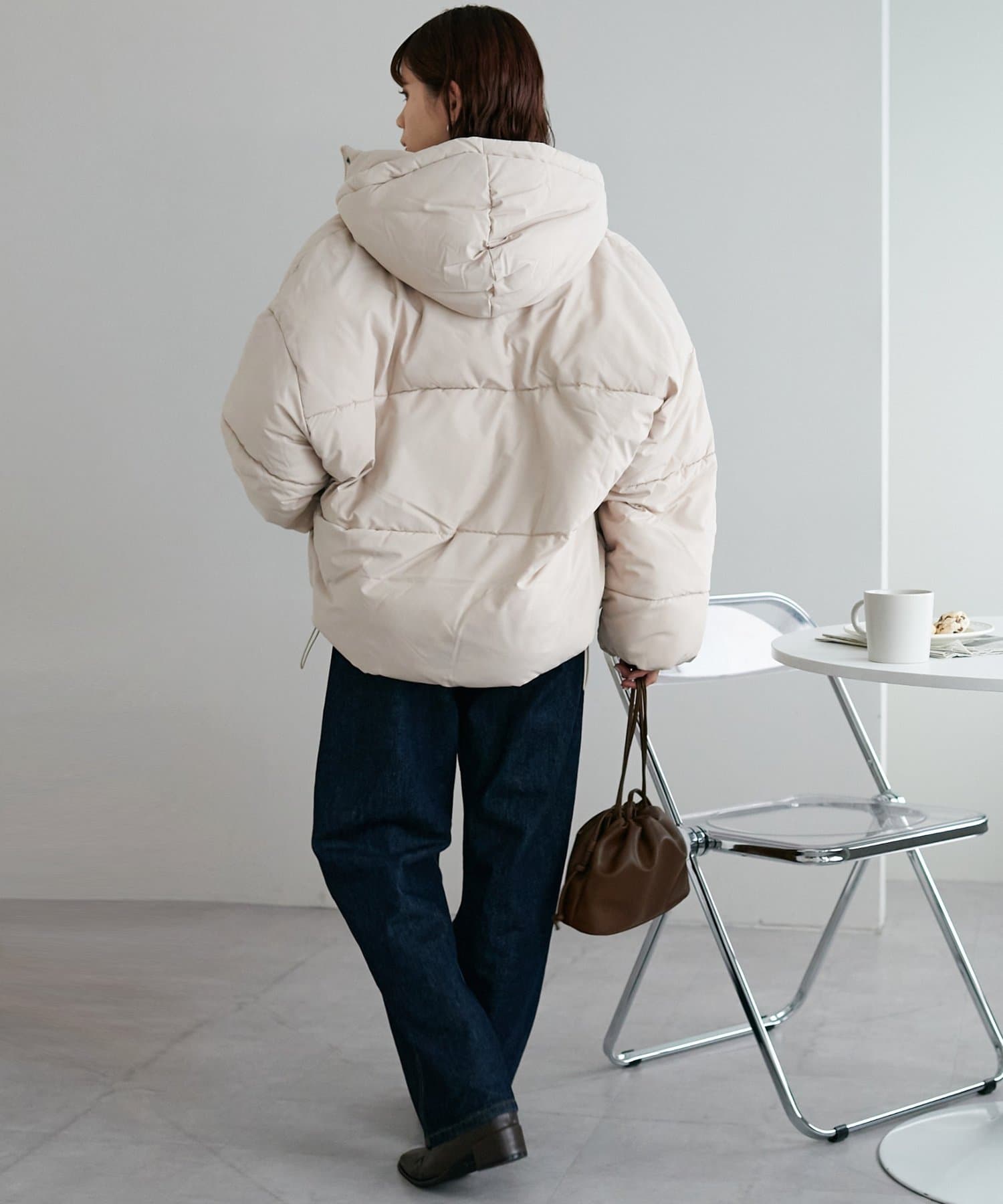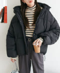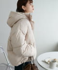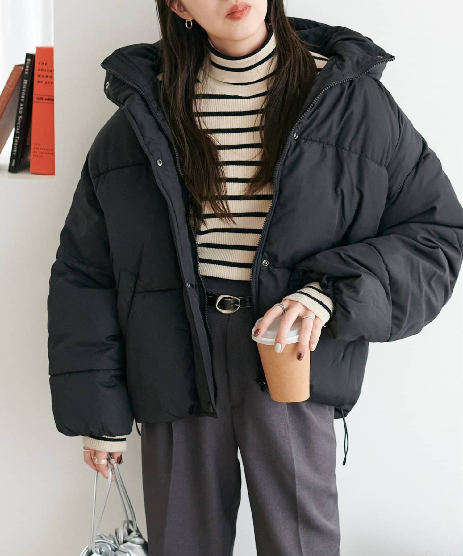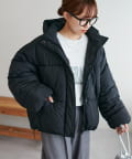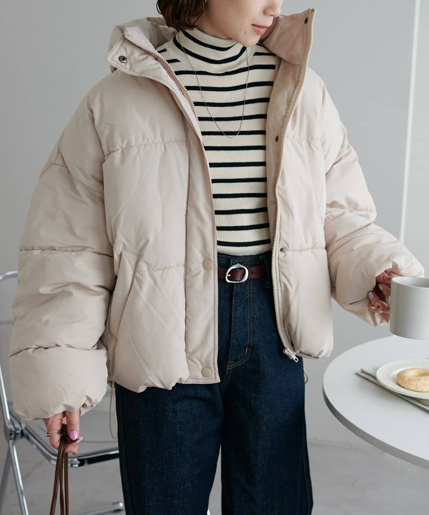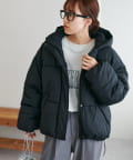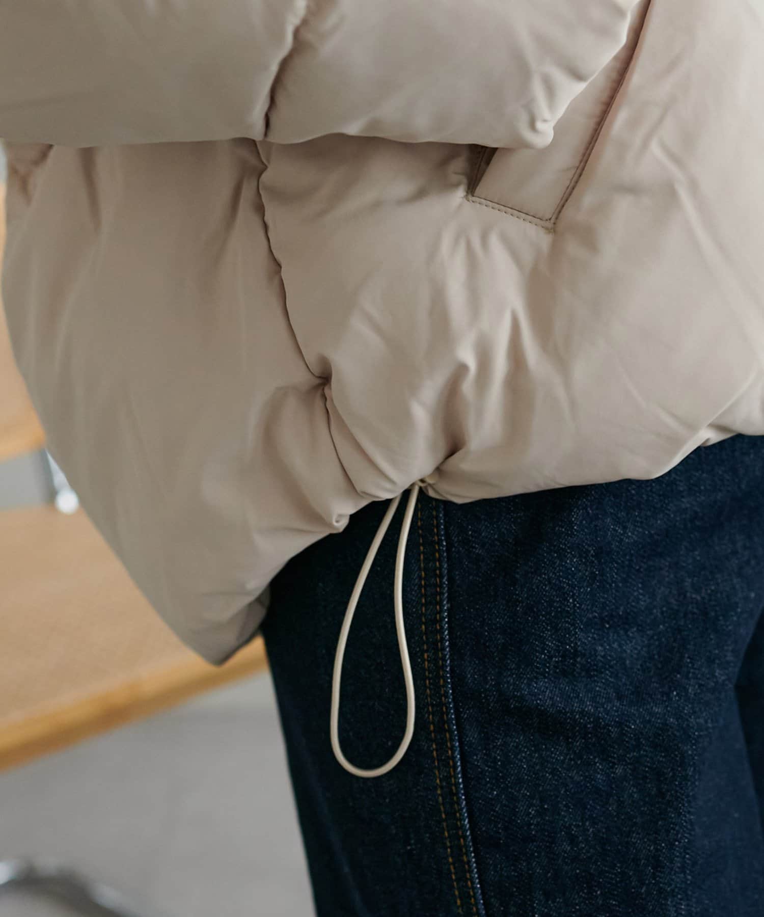 ふっくらとしたシルエットが可愛いらしいエコダウンフードブルゾン。しっかりと中綿が入っているので保温性も◎