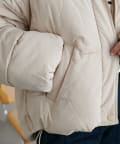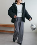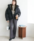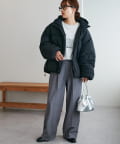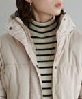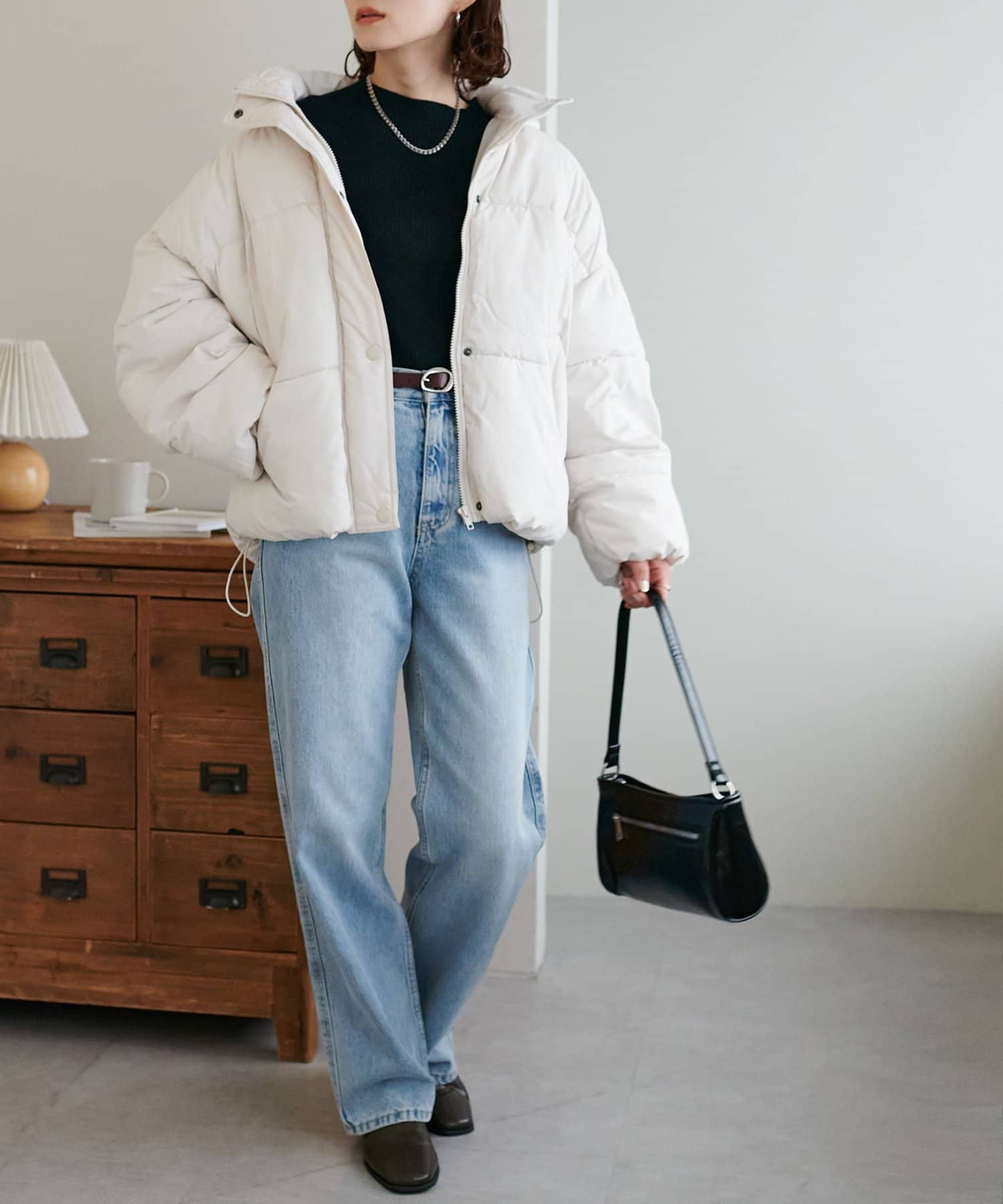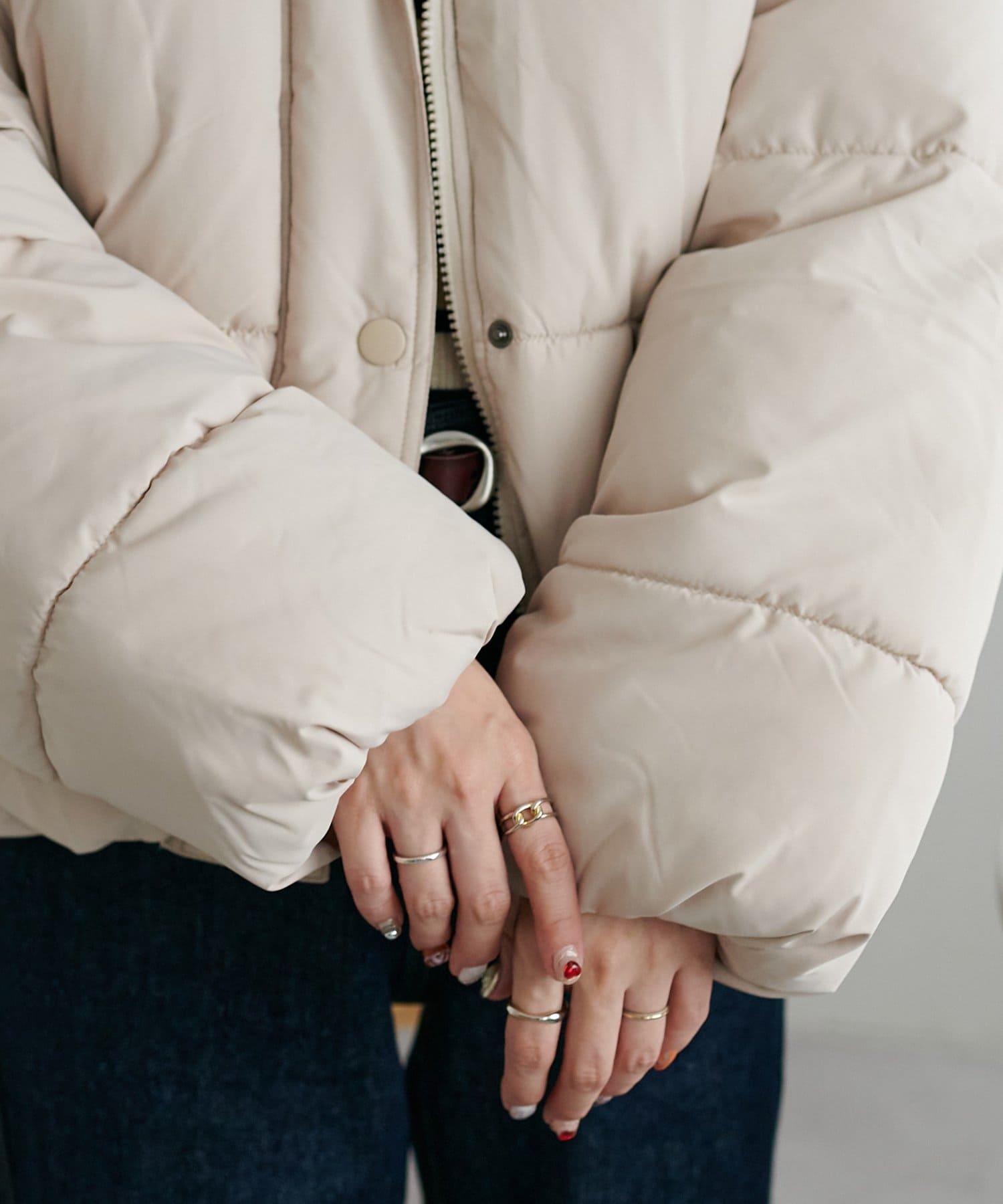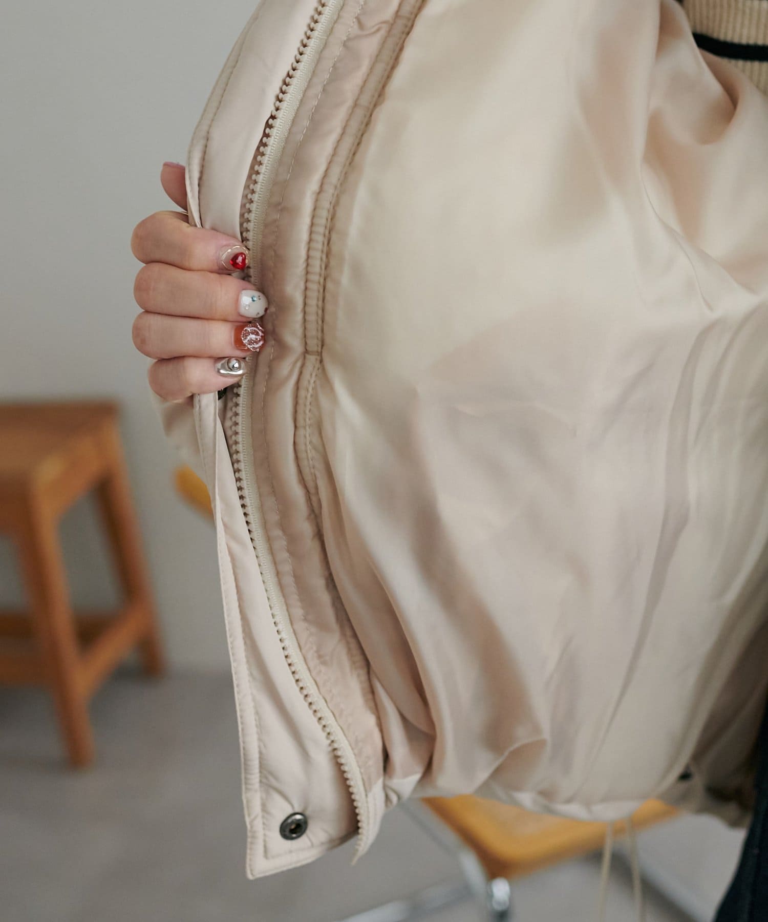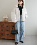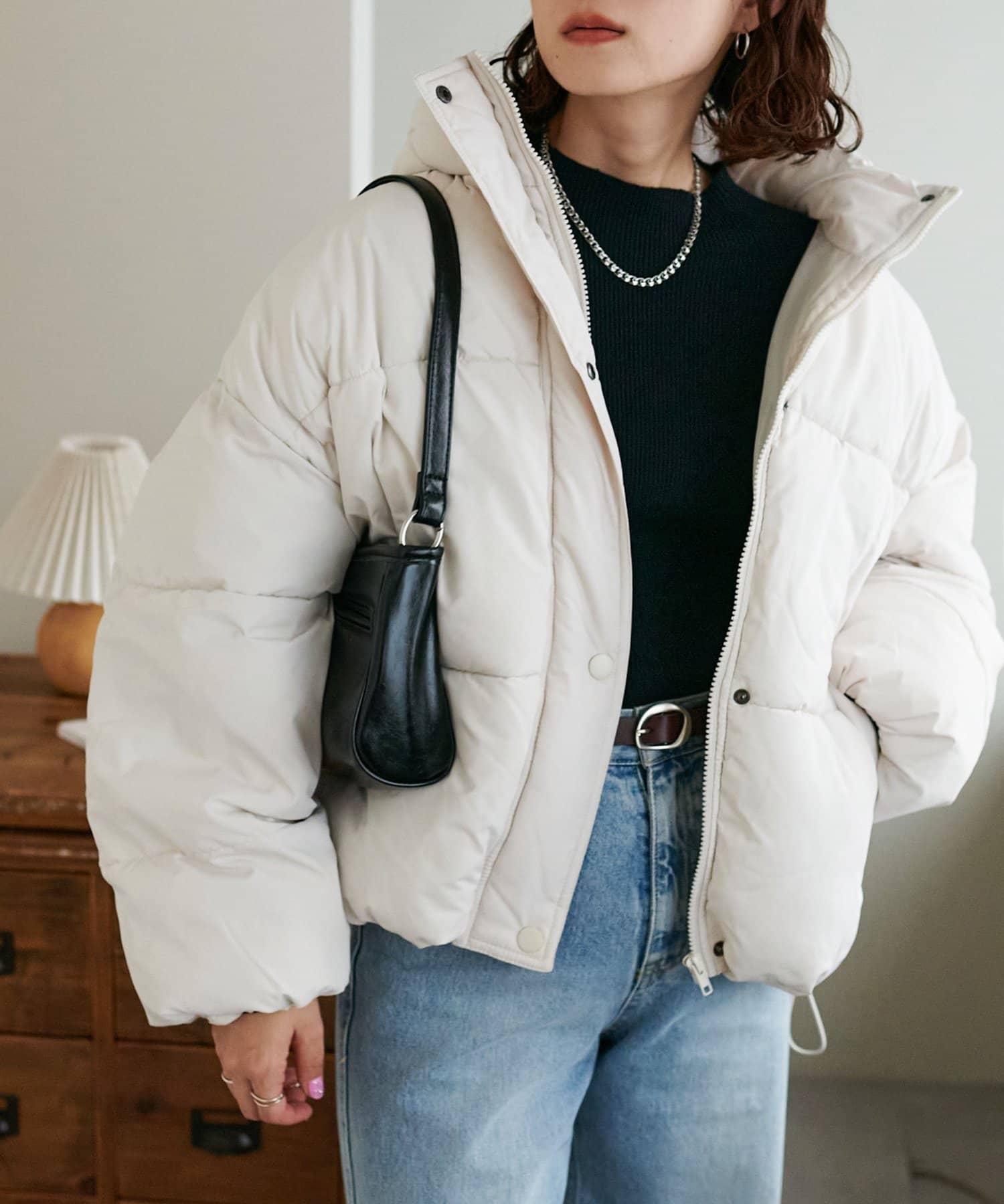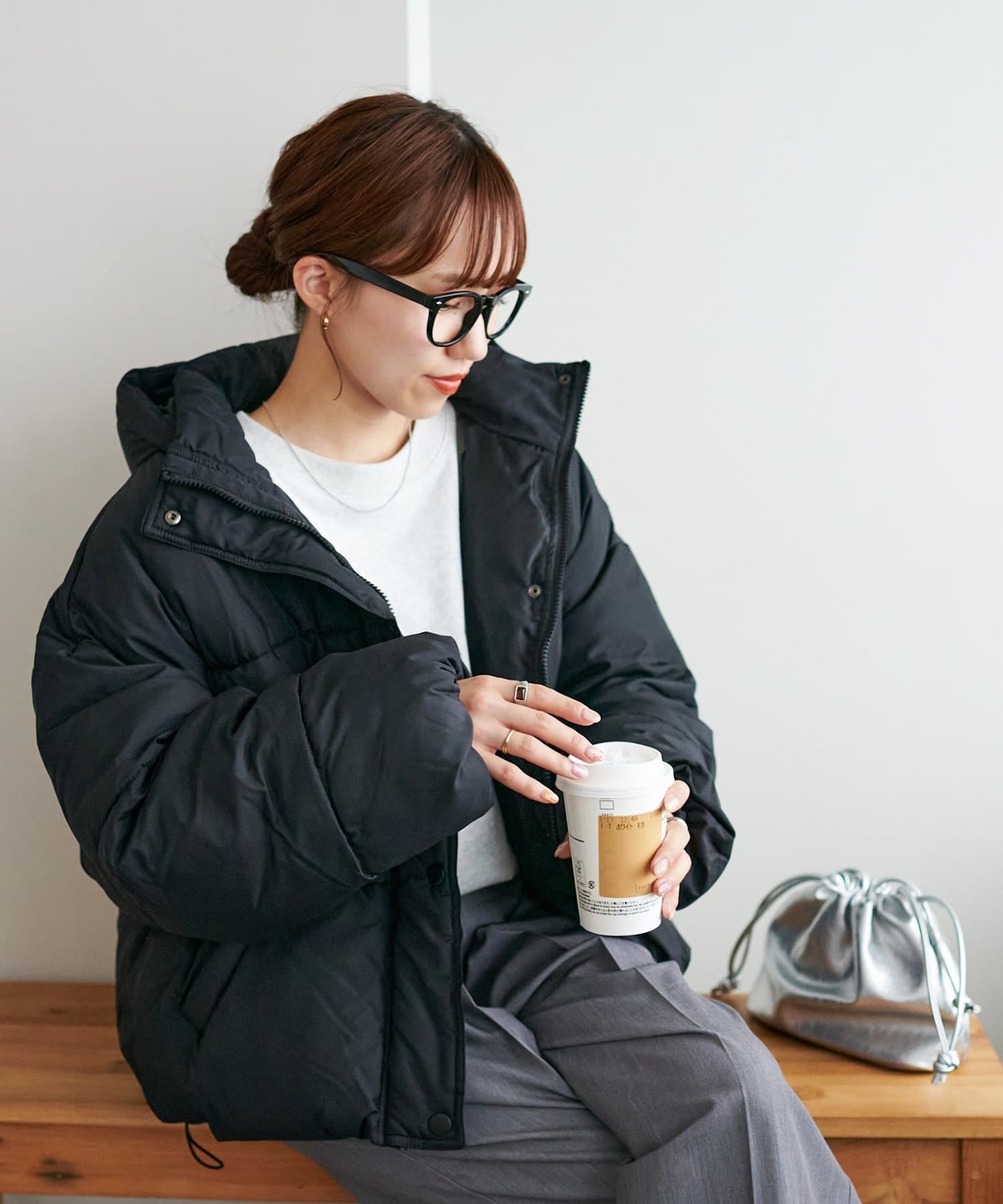ふっくらとしたシルエットが可愛いらしいエコダウンフードブルゾン。しっかりと中綿が入っているので保温性も◎