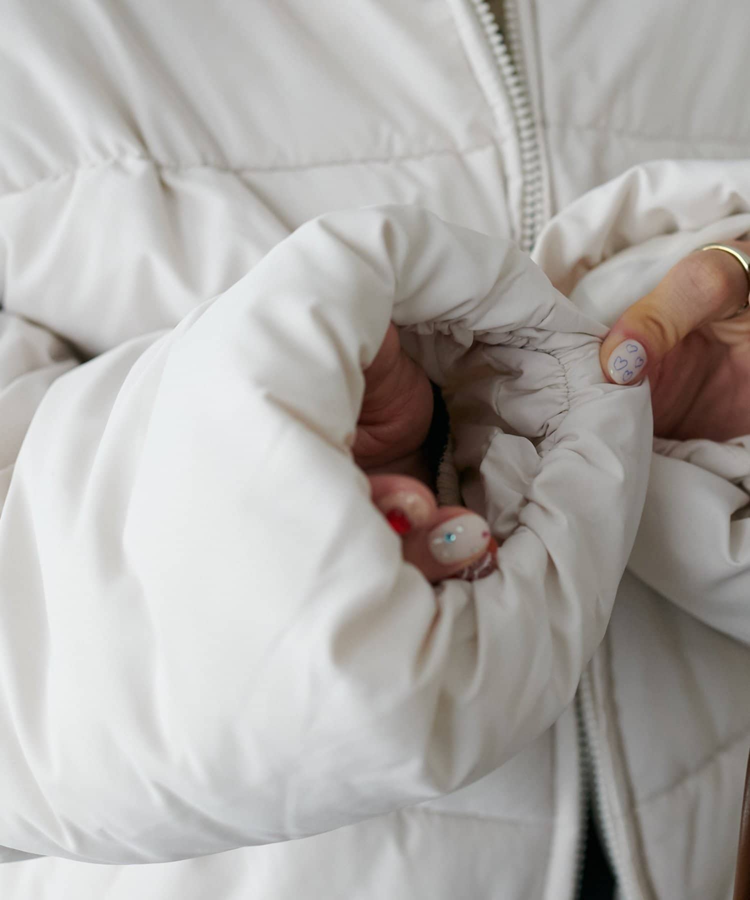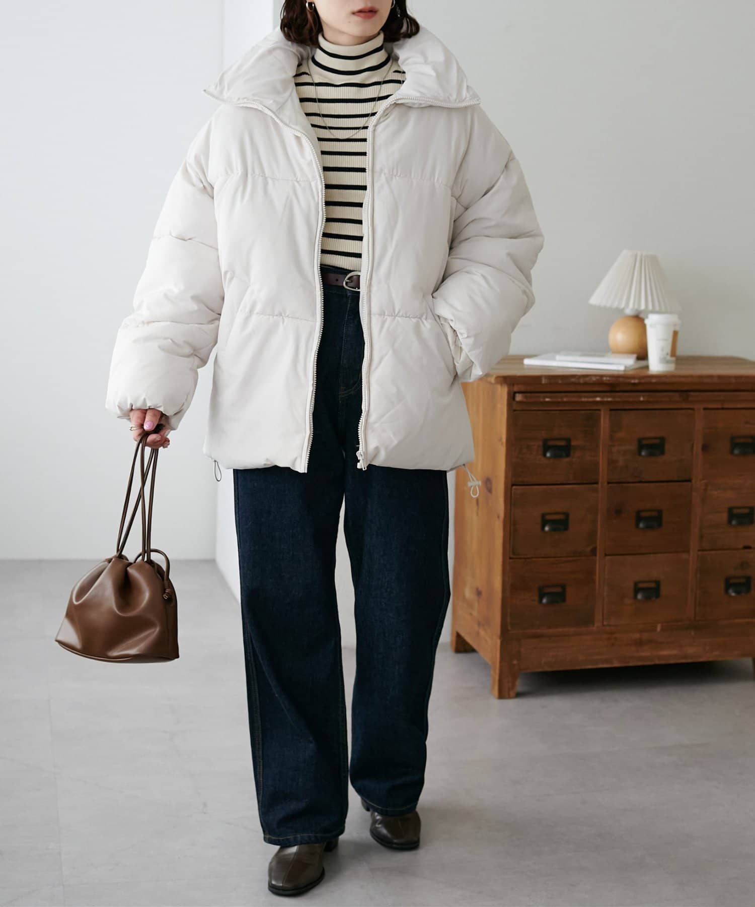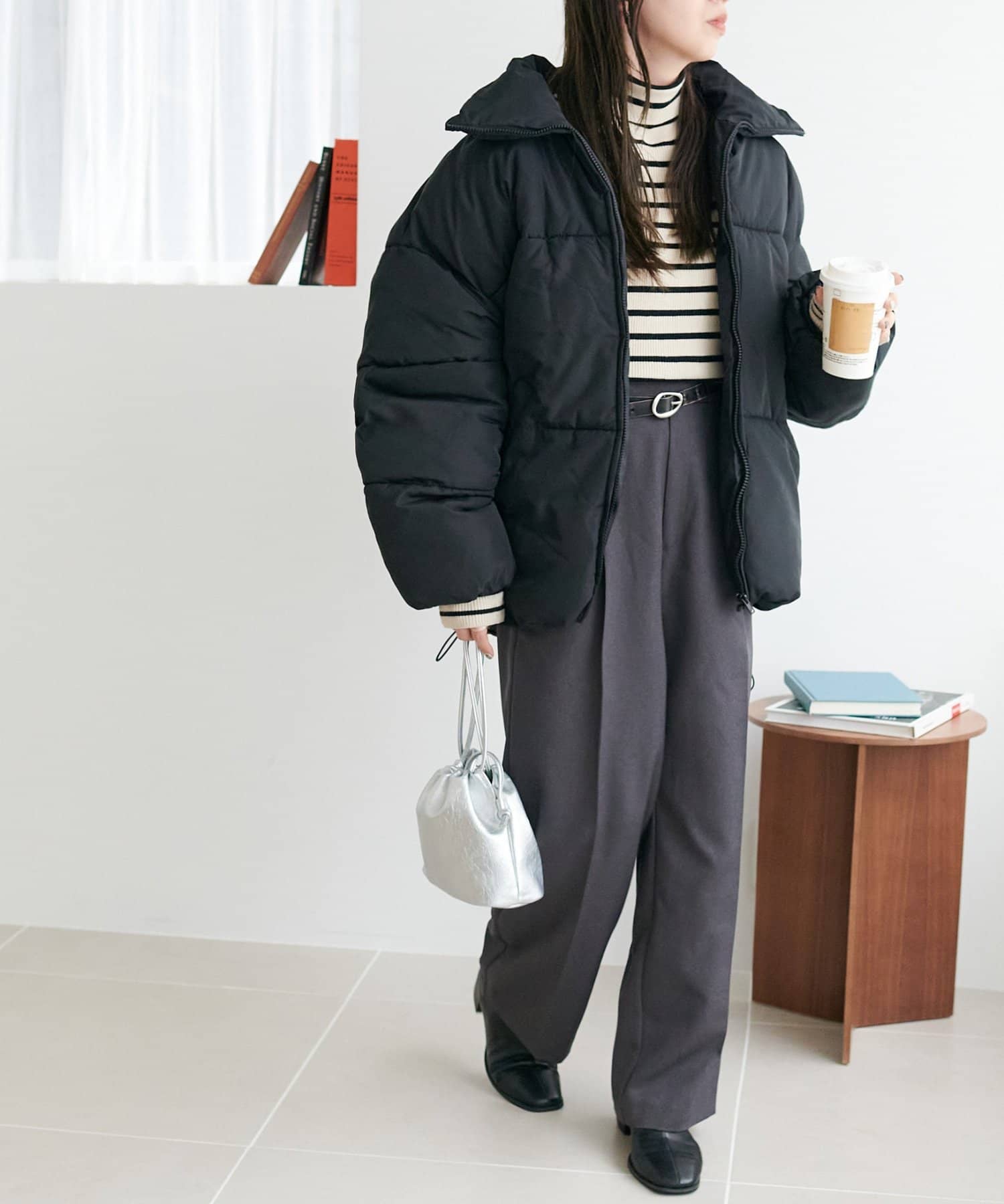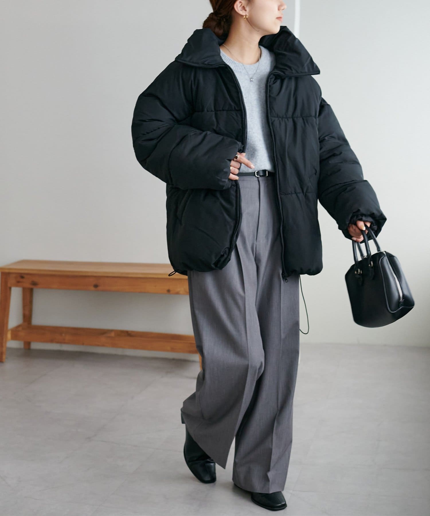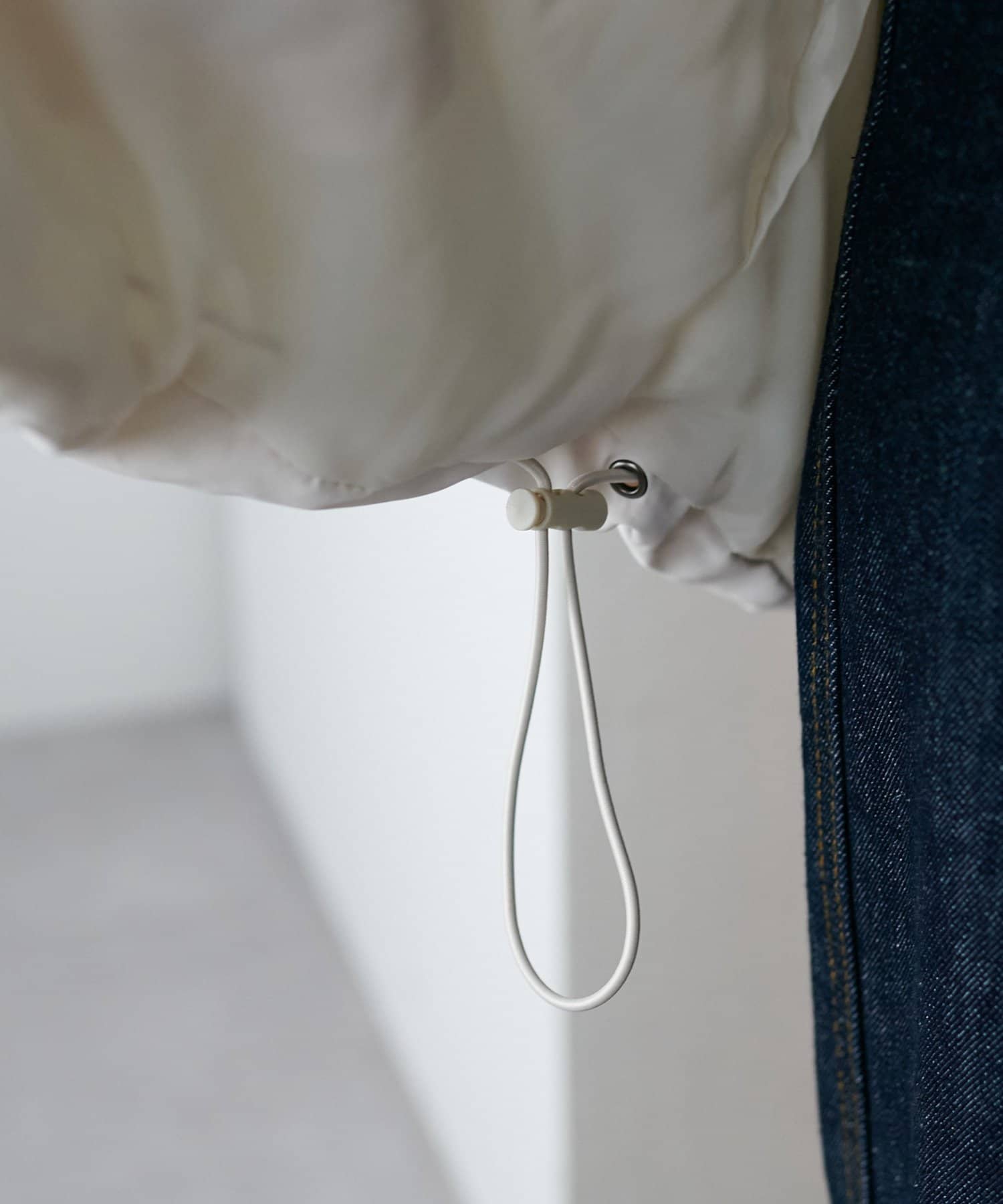 裾のドローコードを絞ると、まるっとしたシルエットでコーデにかわいらしさをプラスしてくれます。
