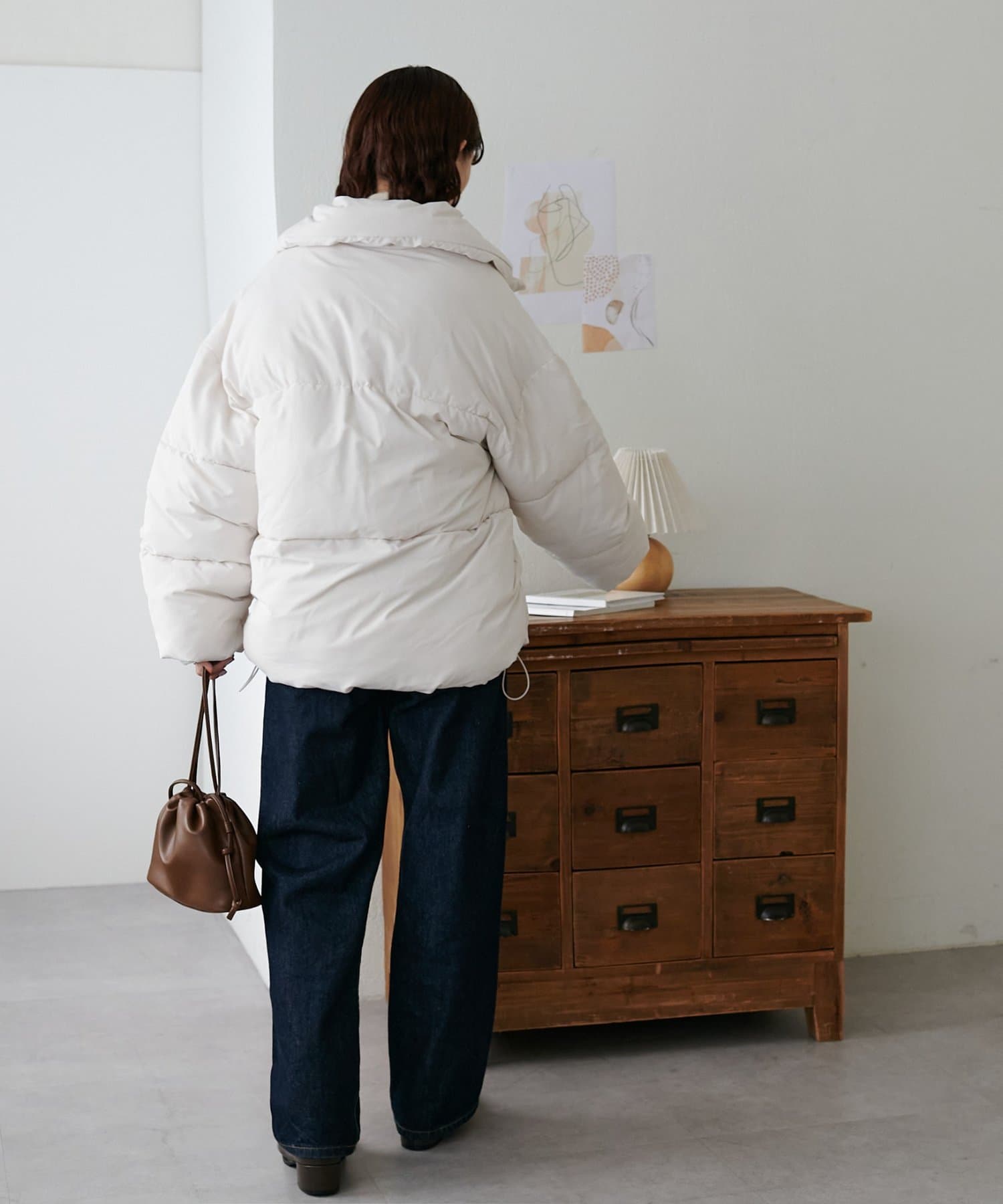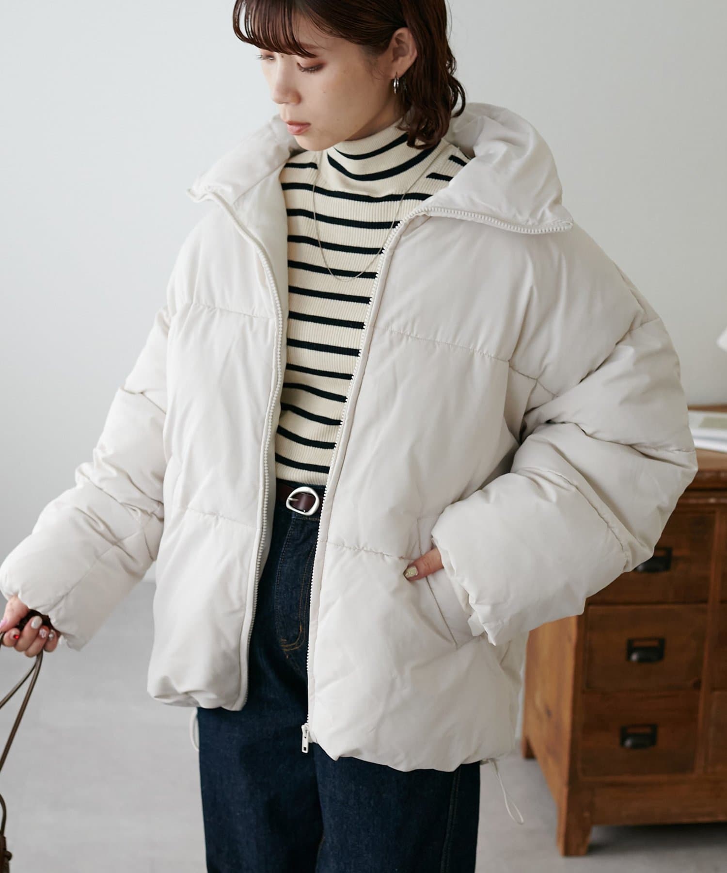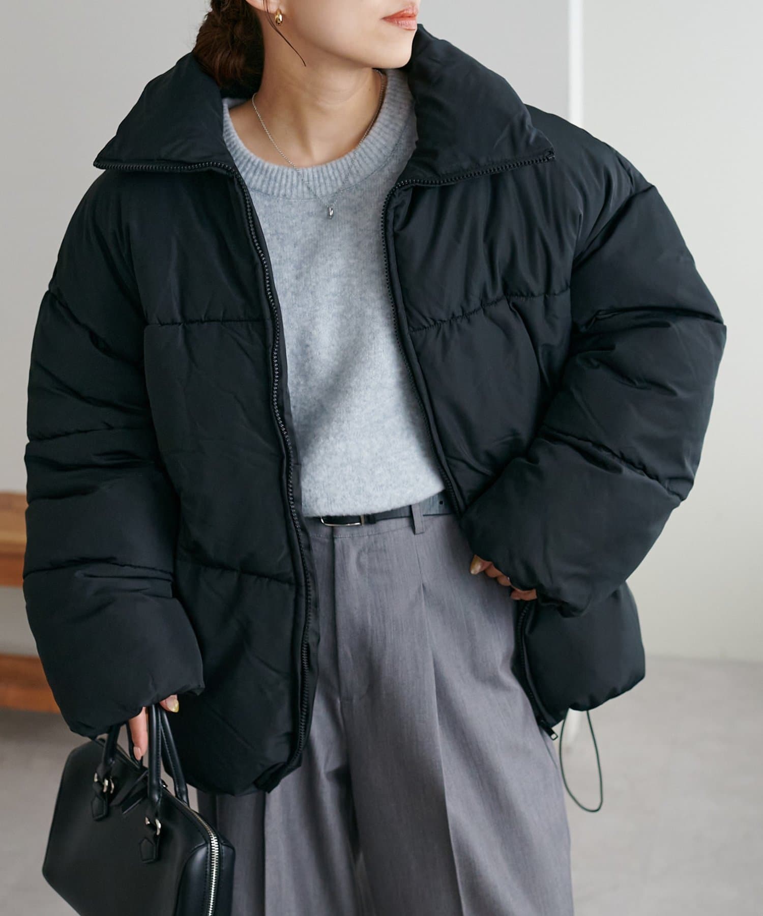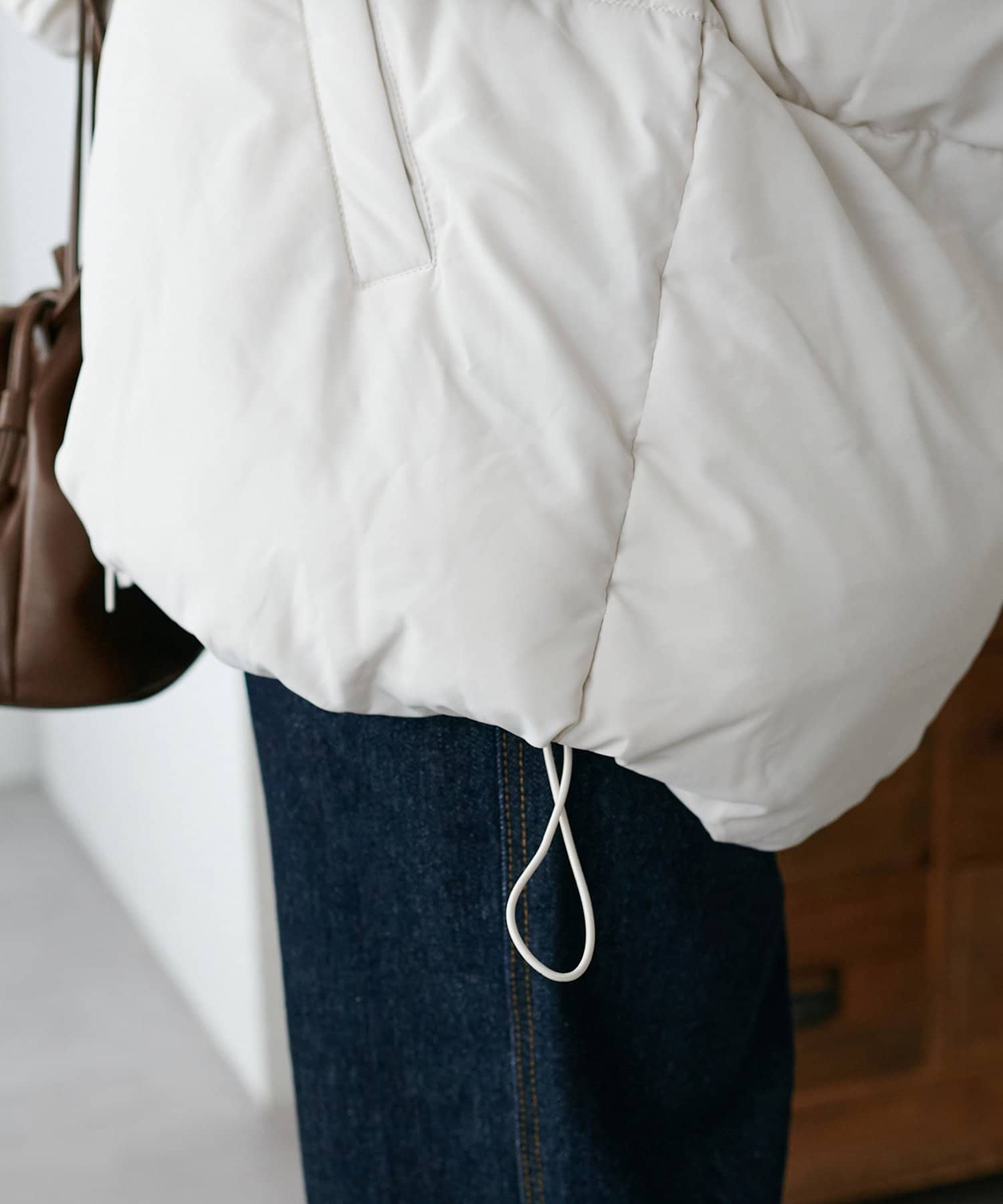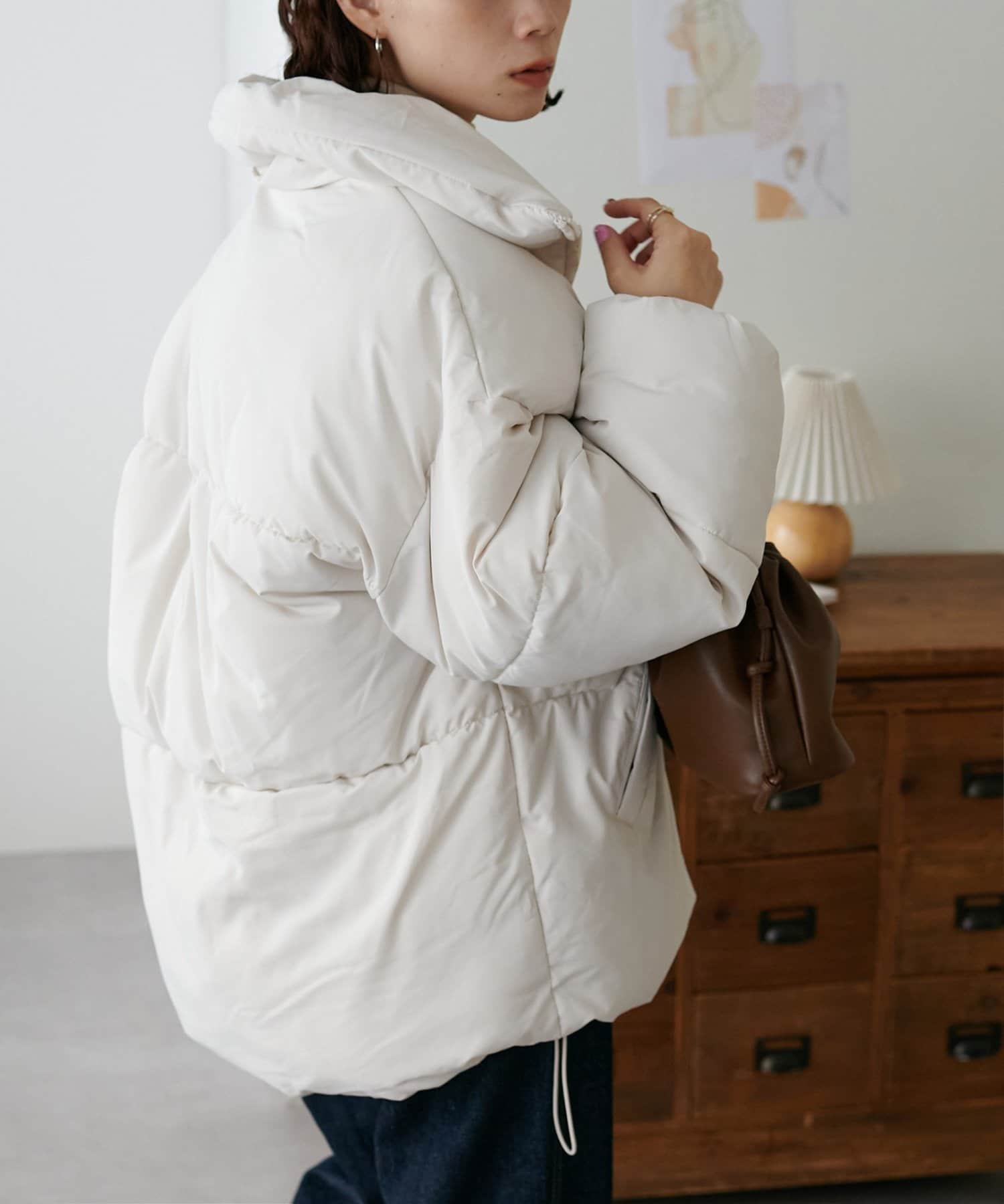 162cmスタッフ:コロンとしたフォルムが可愛い♡裾のドローコードでシルエットを調整できるのでお好みのシルエットで楽しめる一枚です!