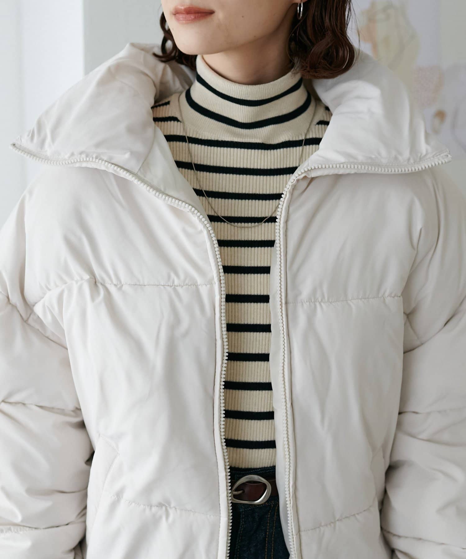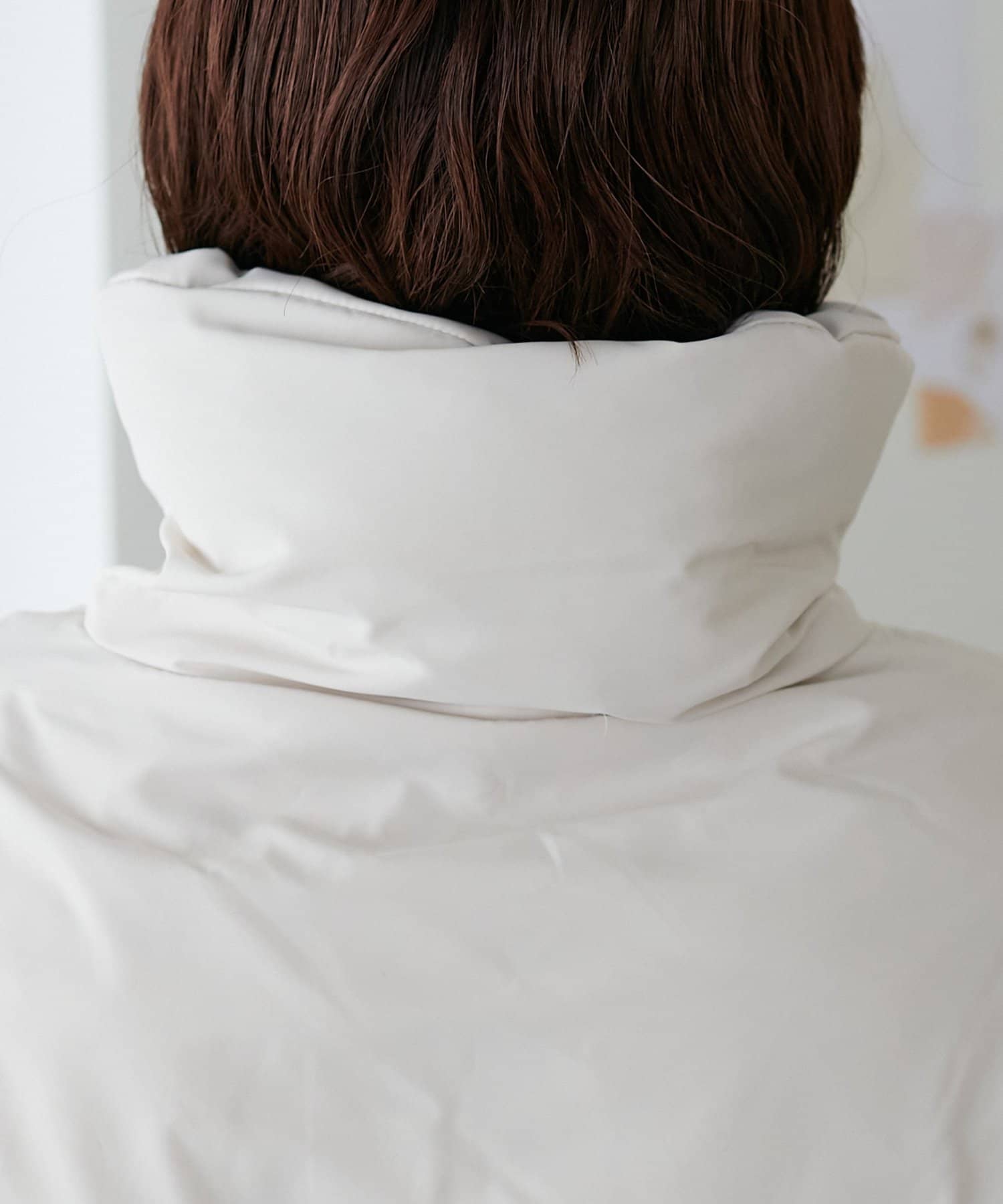 スタンドネックとしても着用可能で首まで暖かくしてくれる1枚です。