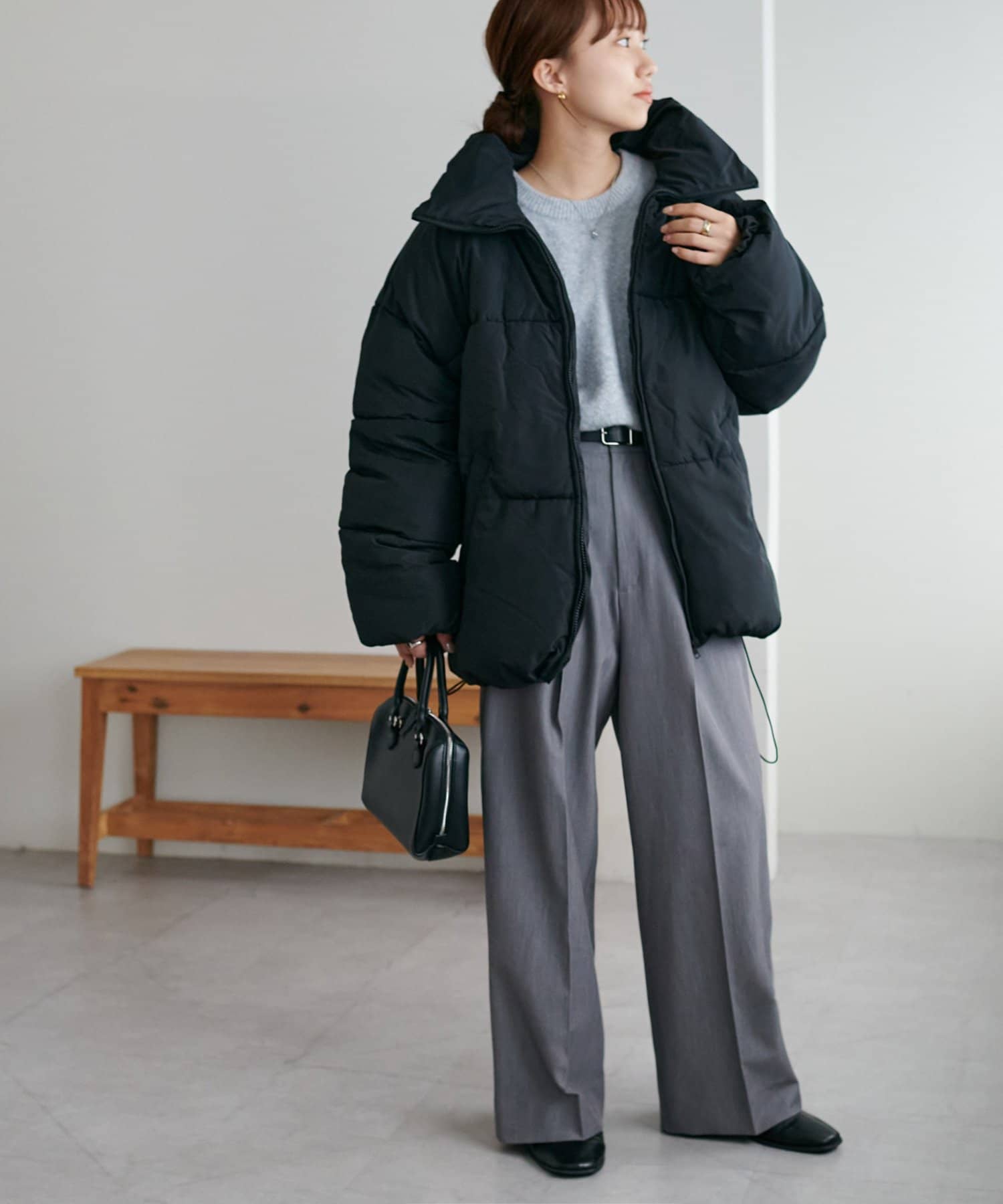 ゆったりとしたオーバーサイズは、コンパクトなトップスからボリューム感のあるアイテムまでごわつきにくく、合わせやすい♪