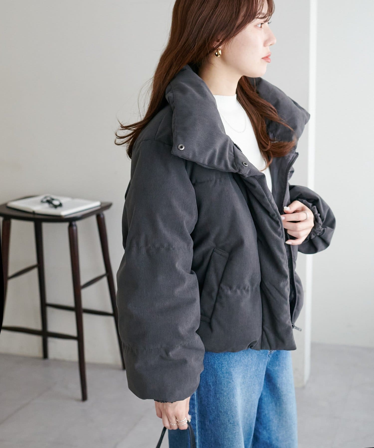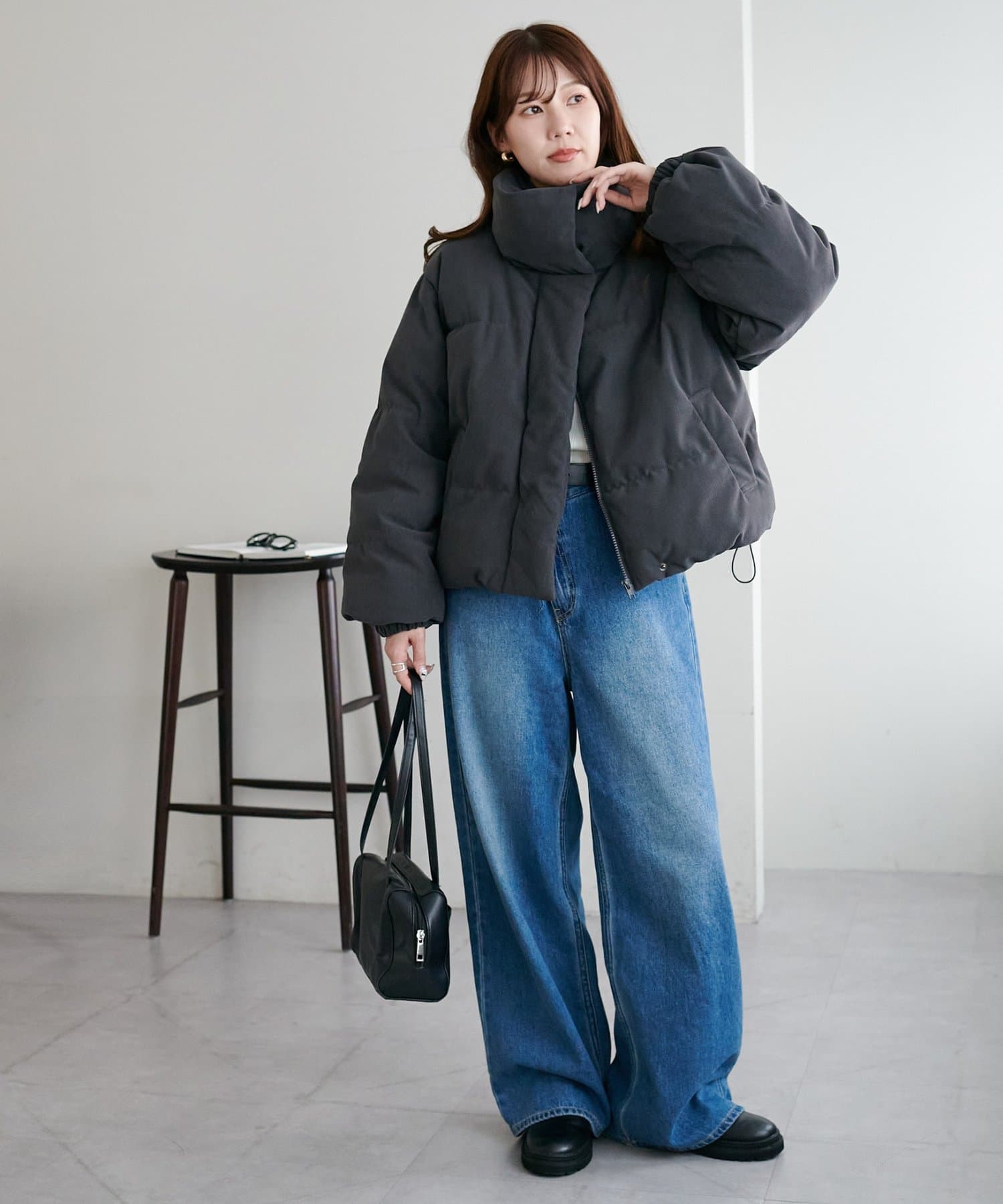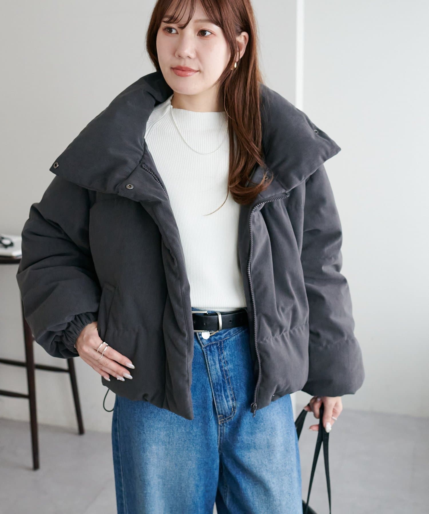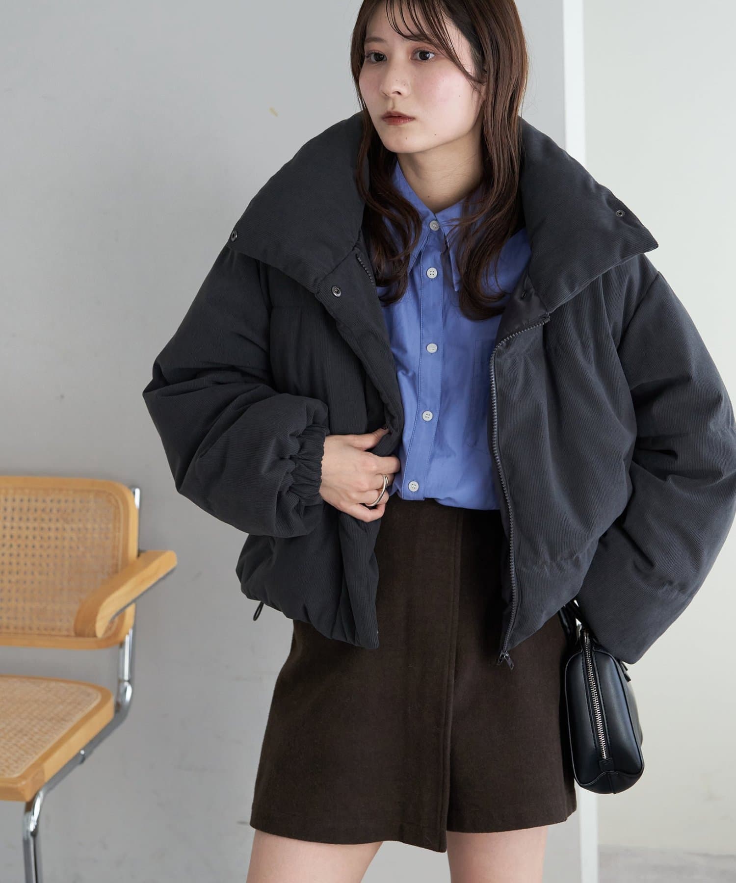 ・ボリューム感のあるシルエットながらショート丈でバランスよく着用可能