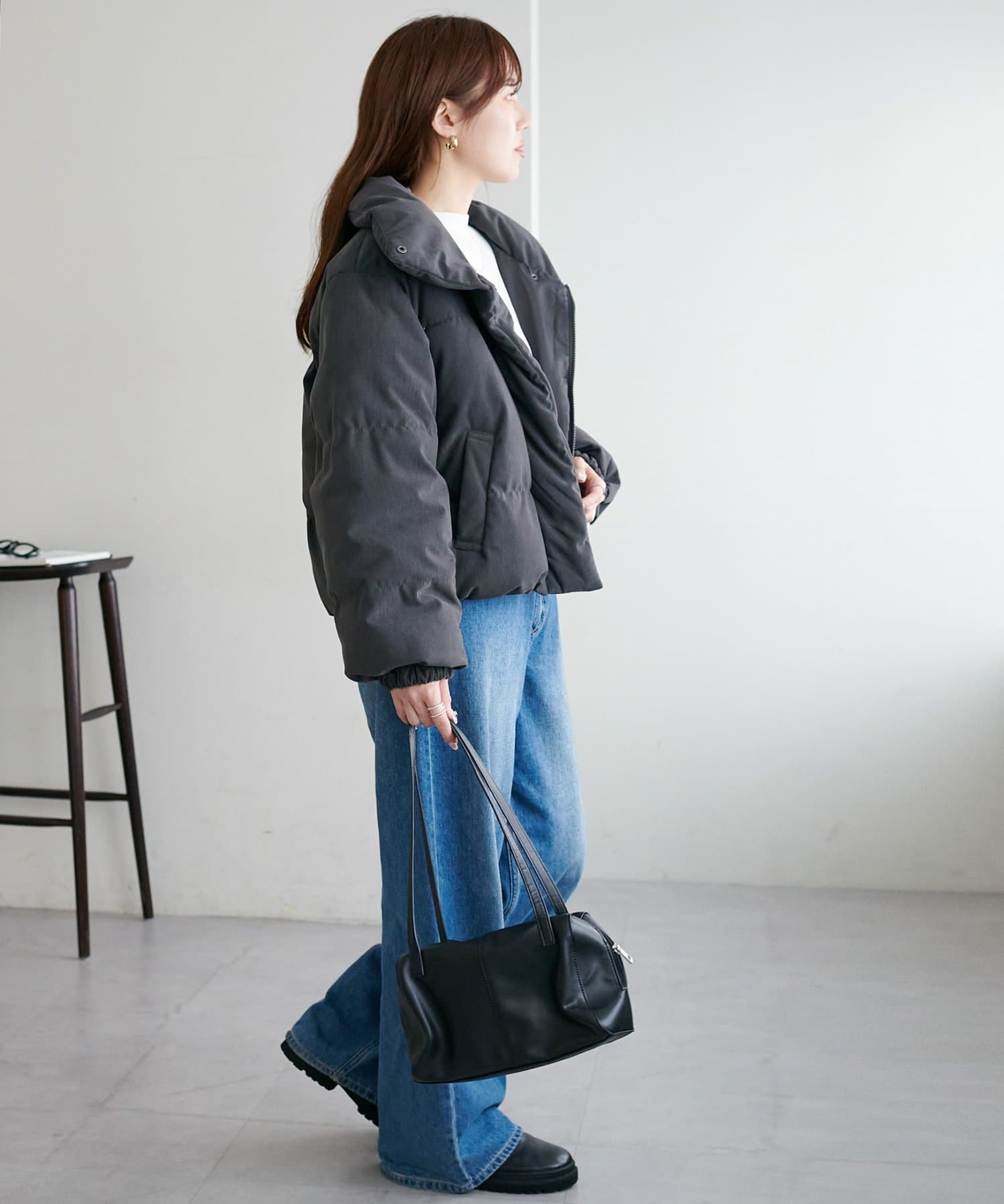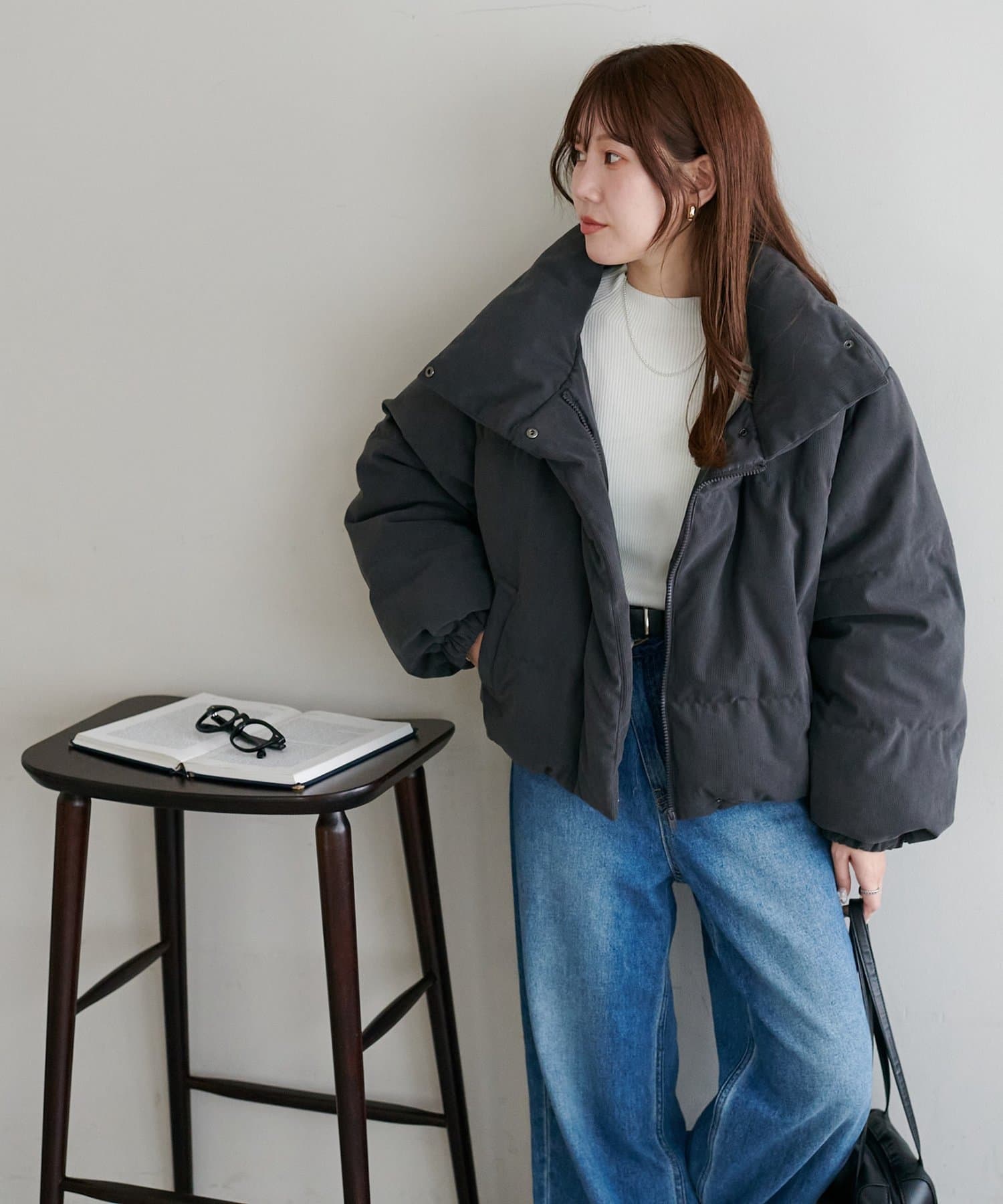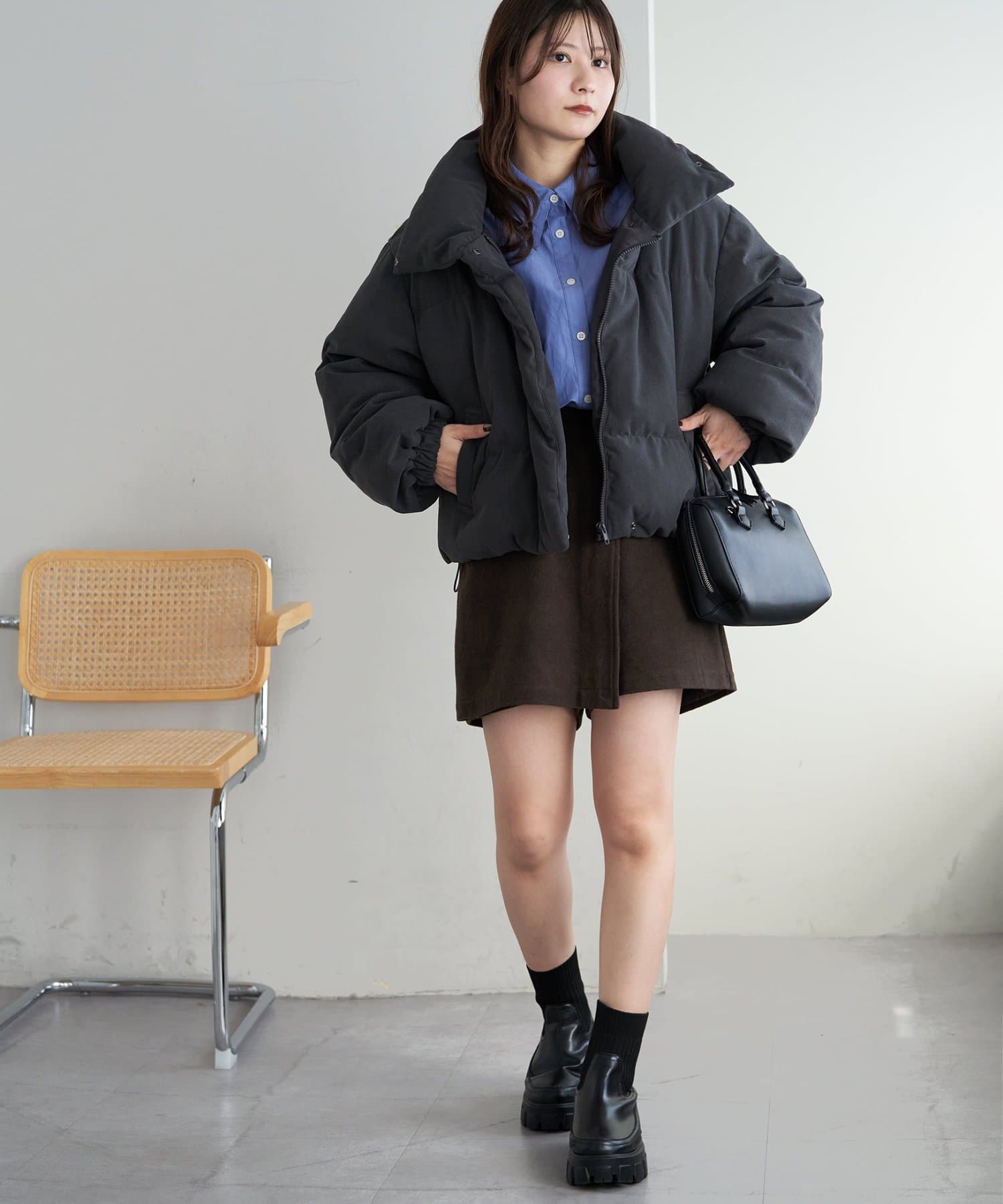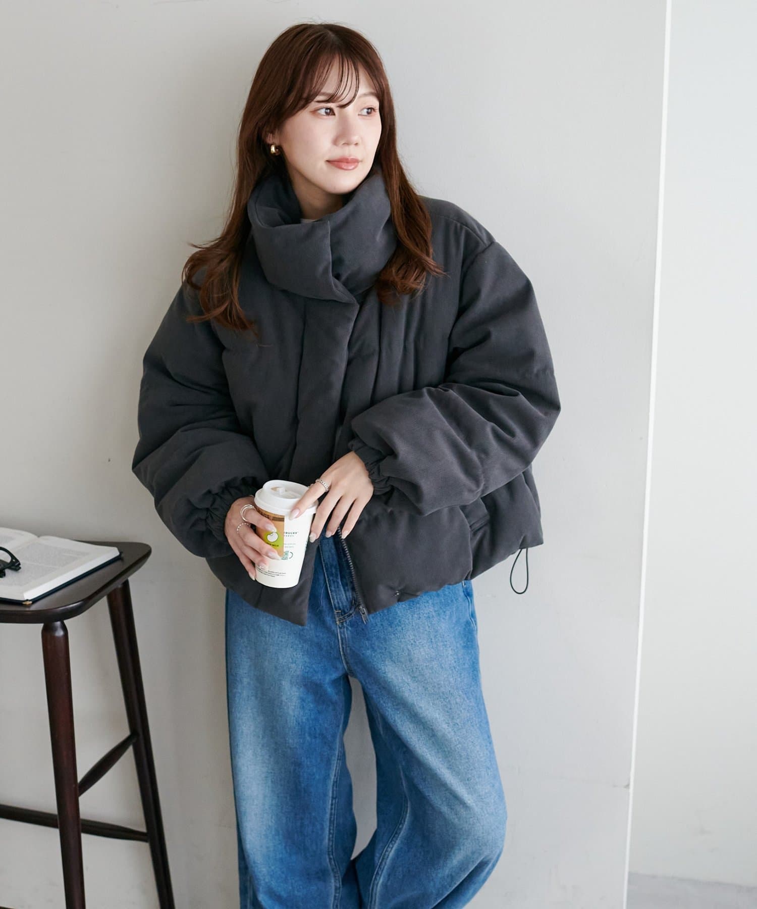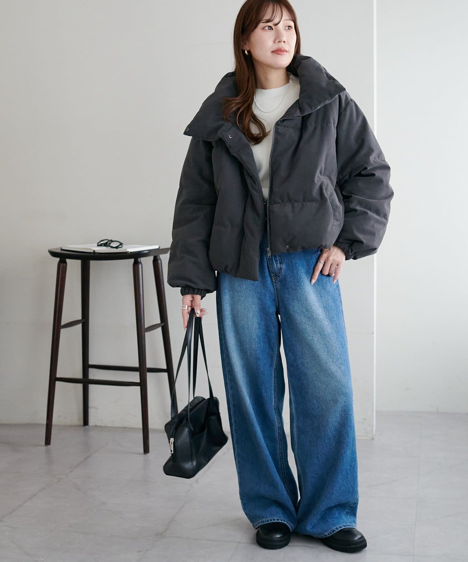 ・ボリューム感のあるシルエットながらショート丈でバランスよく着用可能
