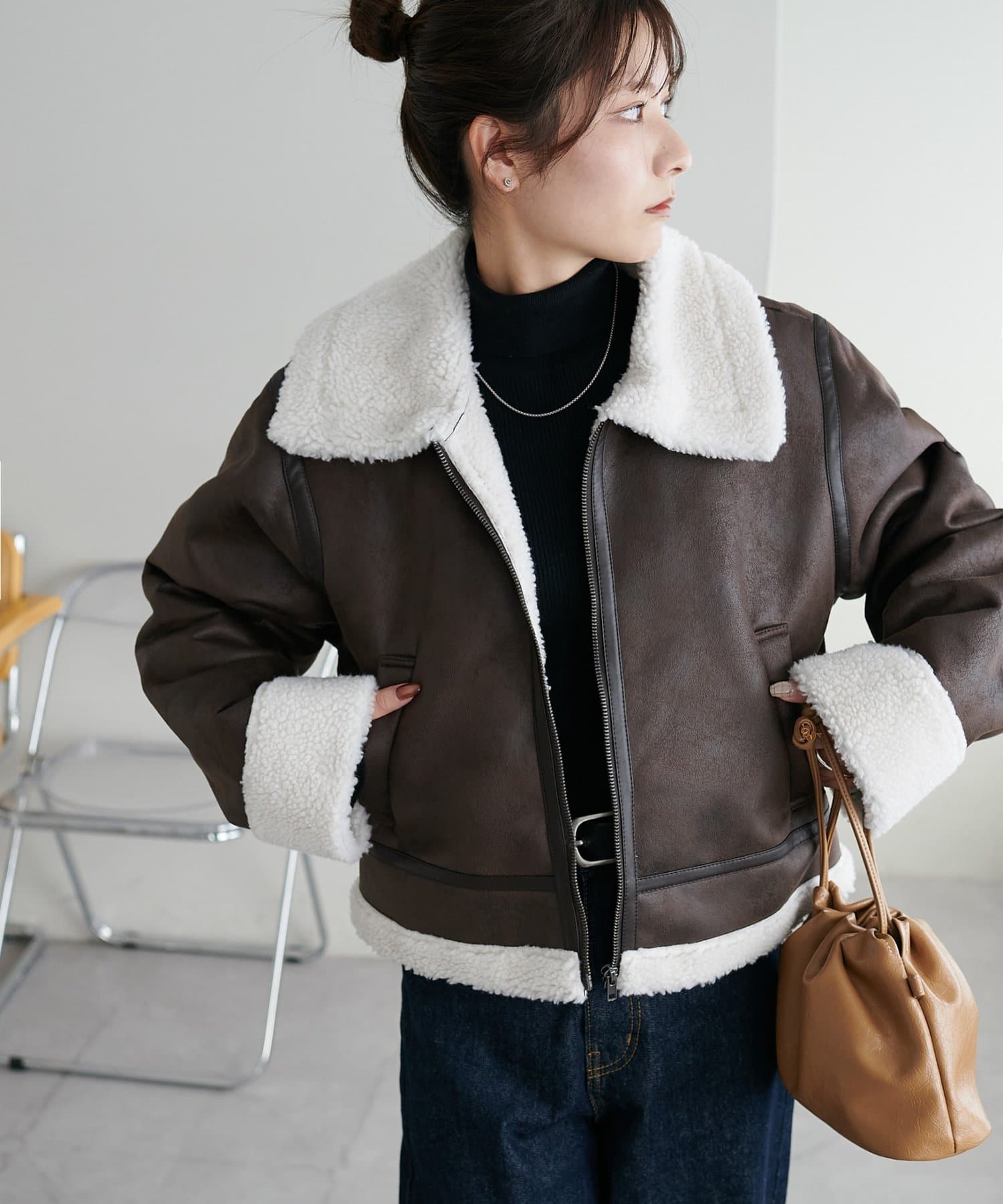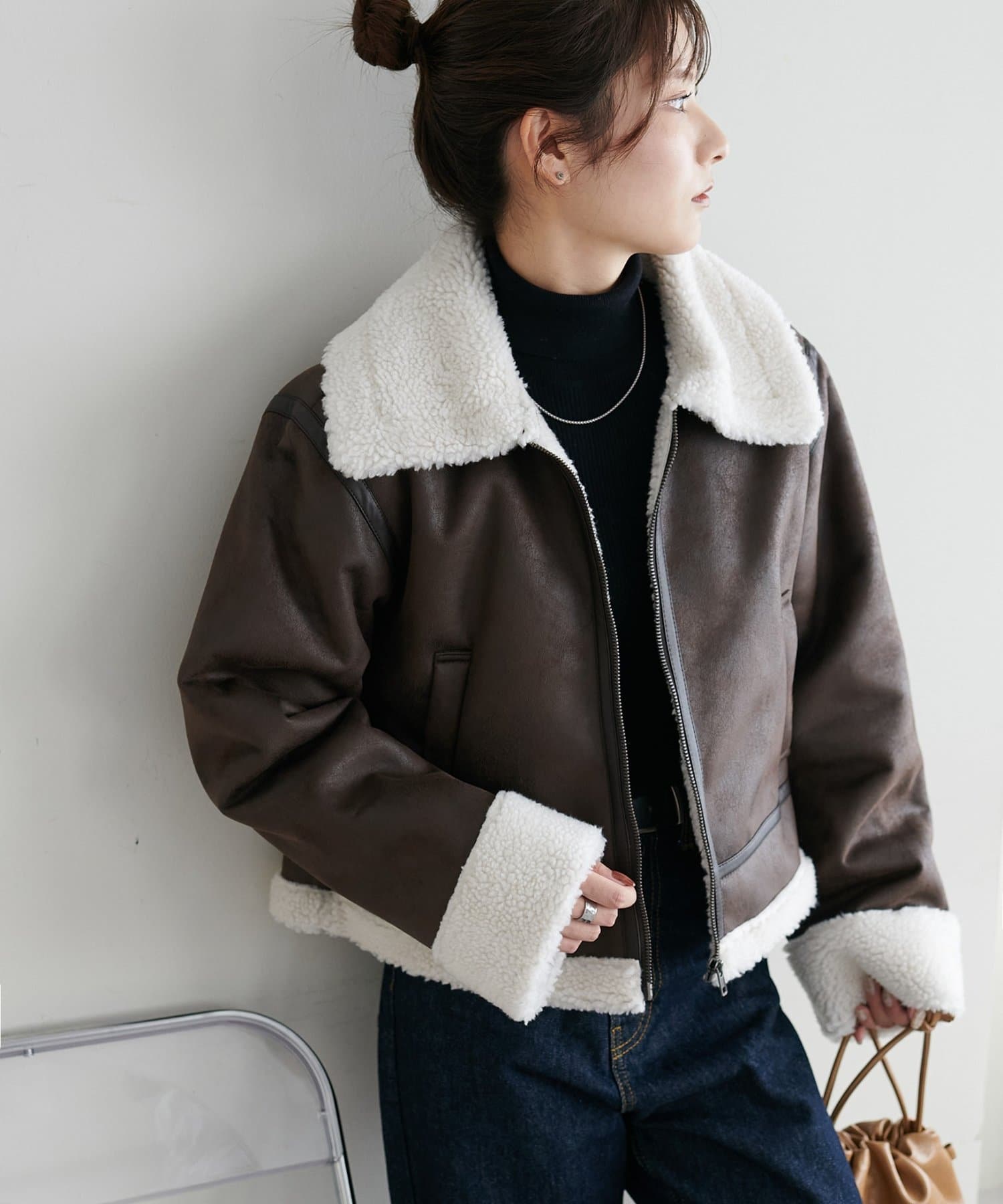 ・襟を立てると顔周りにボリュームが出て、小顔効果も◎