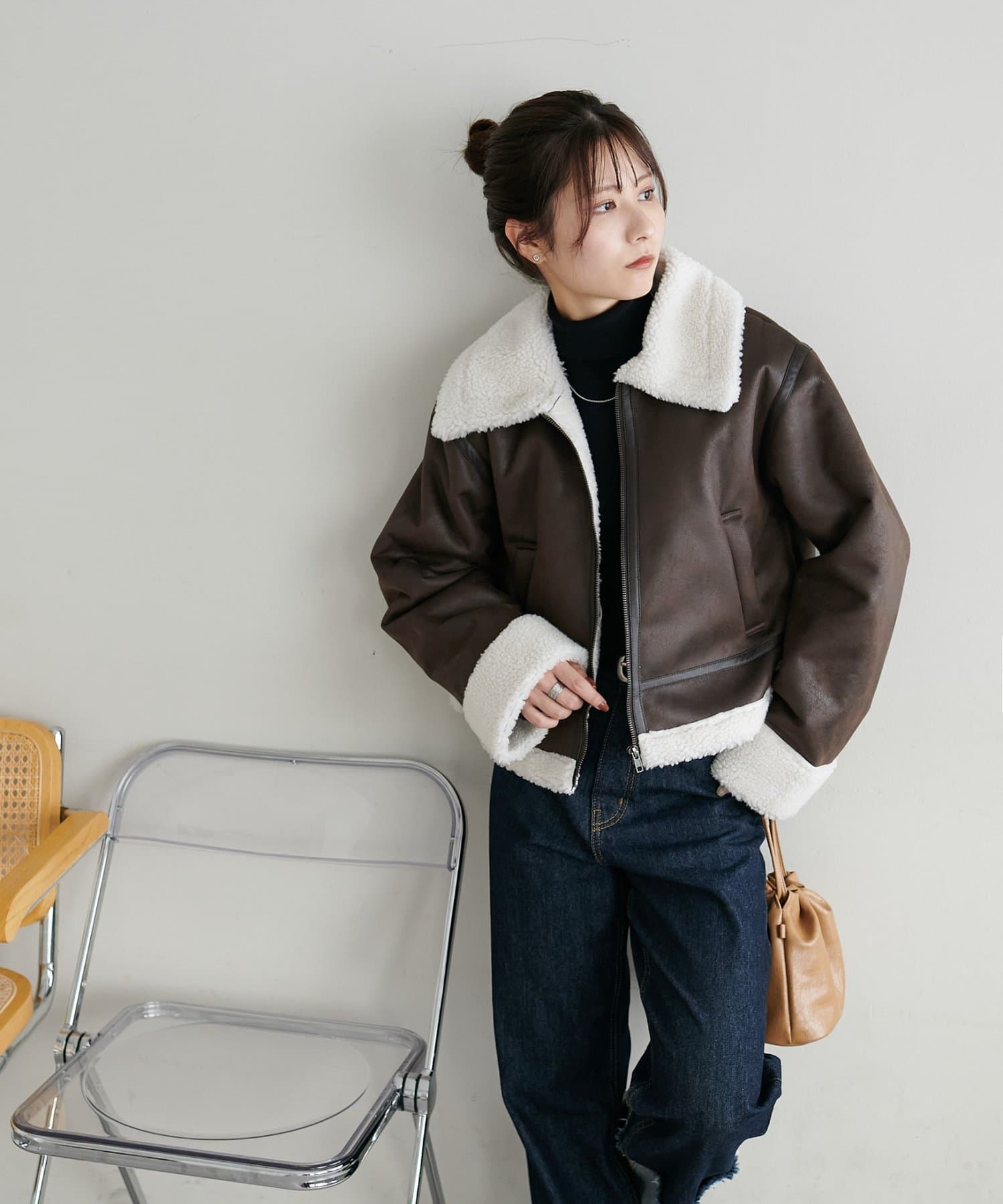 163cmスタッフ:丈感は腰骨あたりなので、スタイルアップして見えるのもおすすめポイントです♡