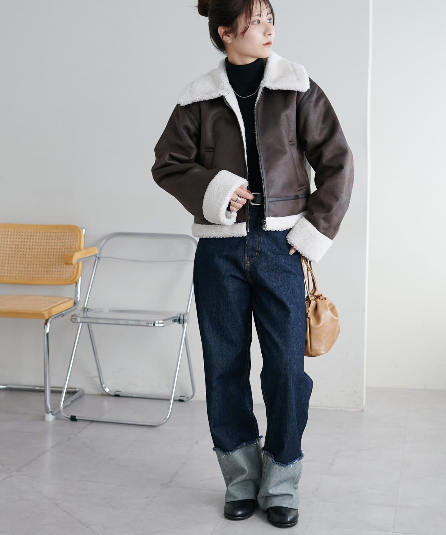 ・デニムでカジュアルにも、スカートやワンピースと合わせてもバランス良く決まる万能アウター