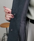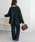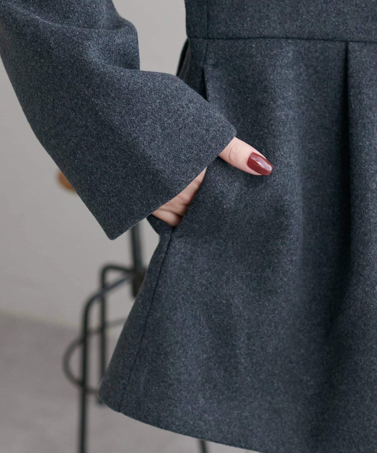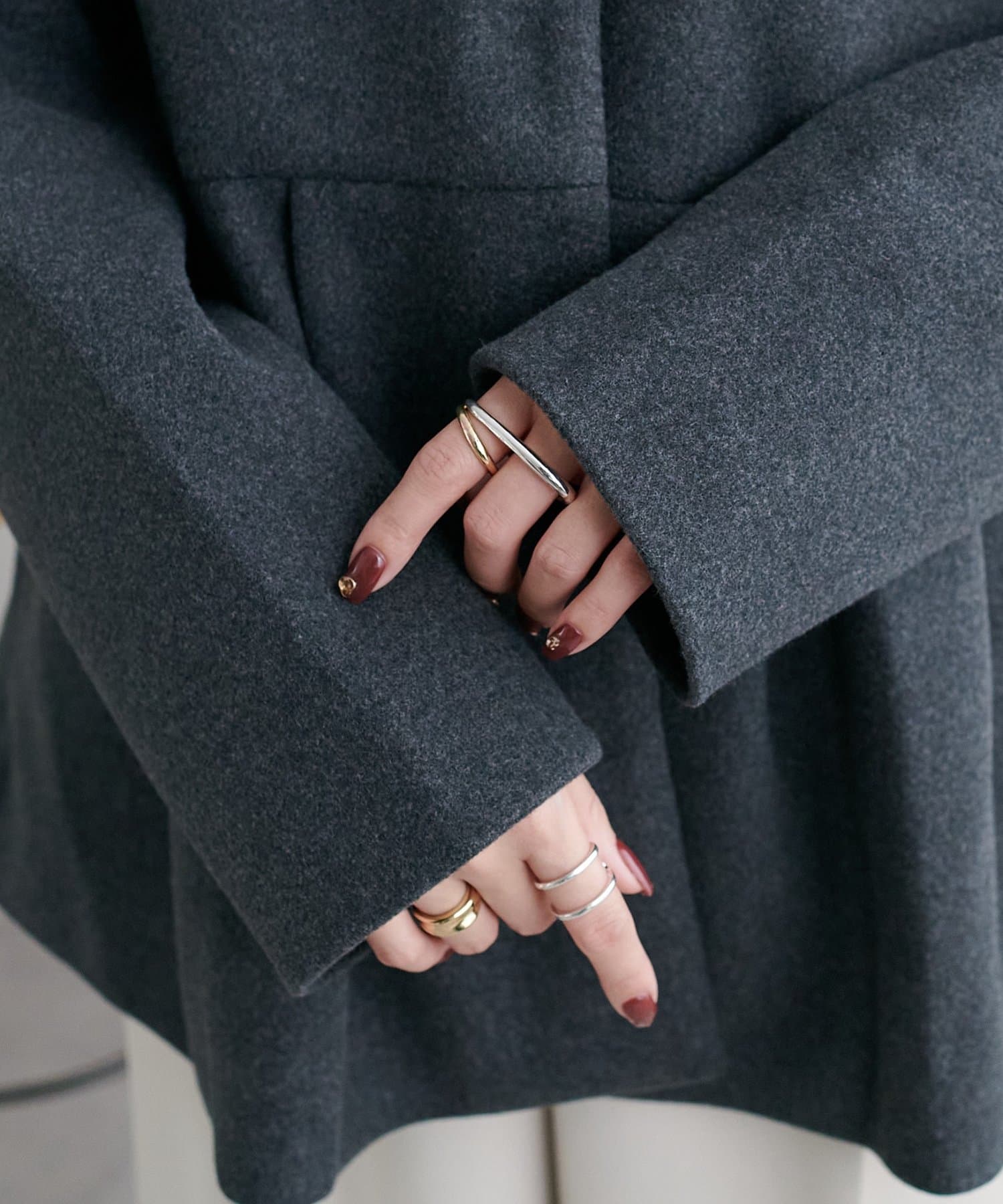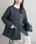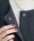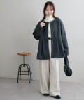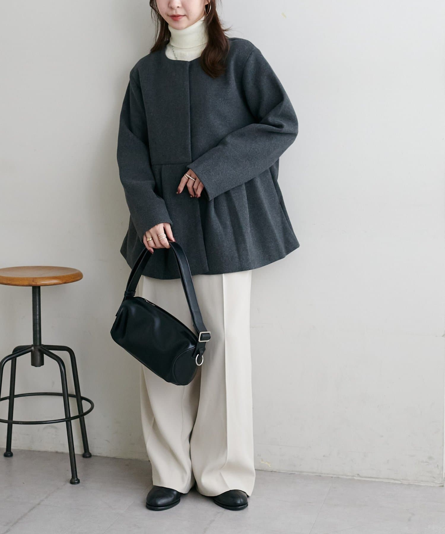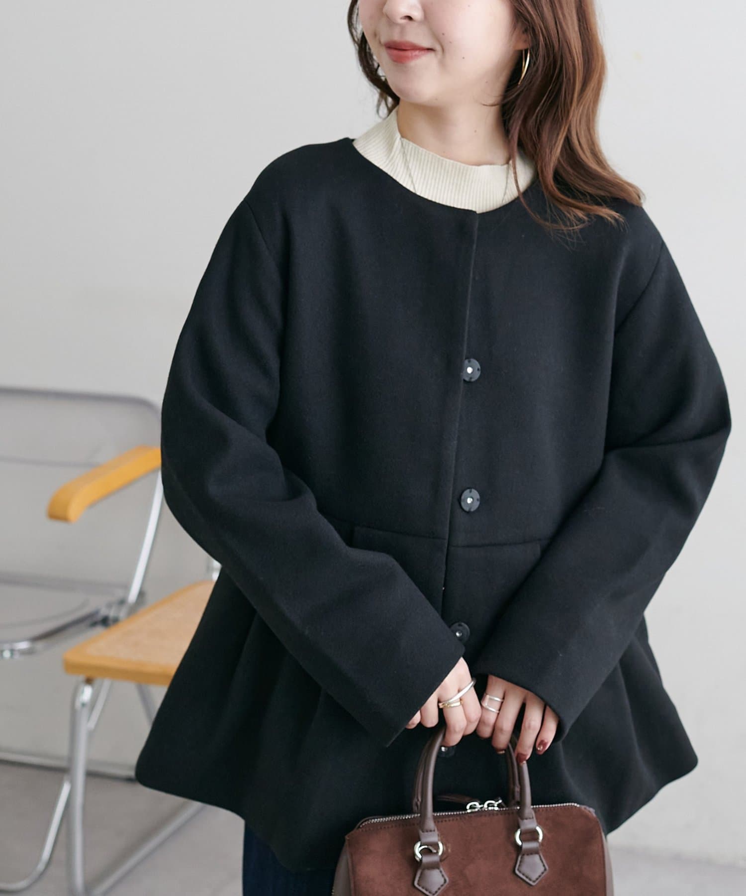 ノーカラーで首元が詰まりすぎていない分、タートルネックやハイネックとも合わせやすく、秋冬コーデにピッタリのアウターです。