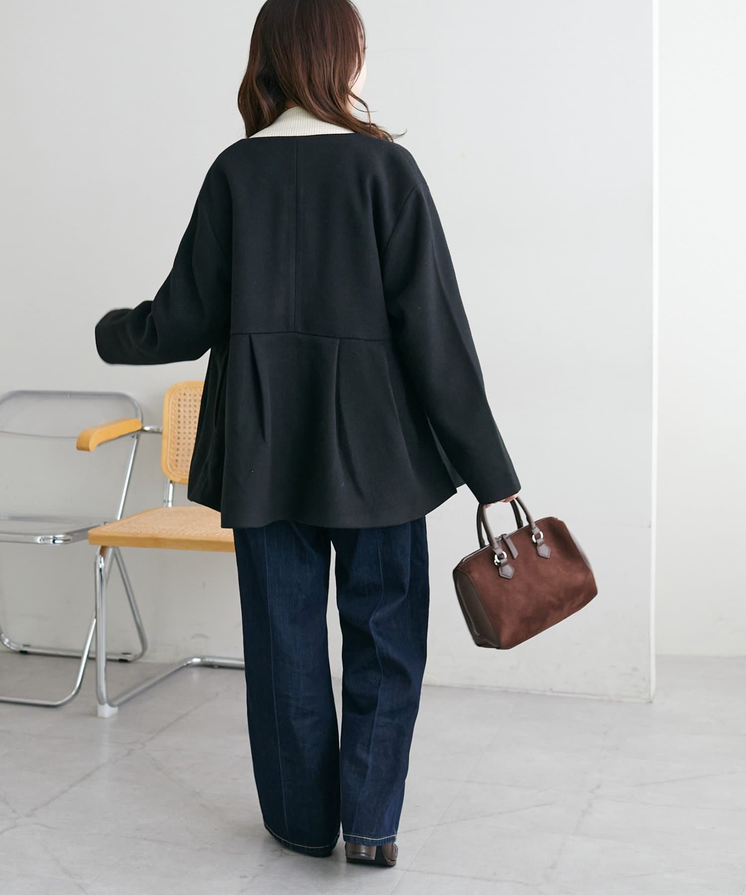 【レディに仕上がる】中空糸ペプラムノーカラージャケット
