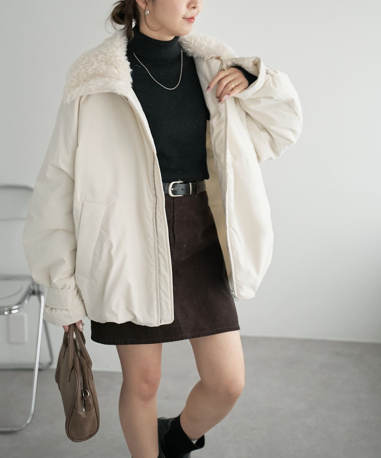 ファー衿は取り外し可能の2WAY仕様なので、気分やスタイリングに合わせて着こなしを変えられるのも魅力です♪