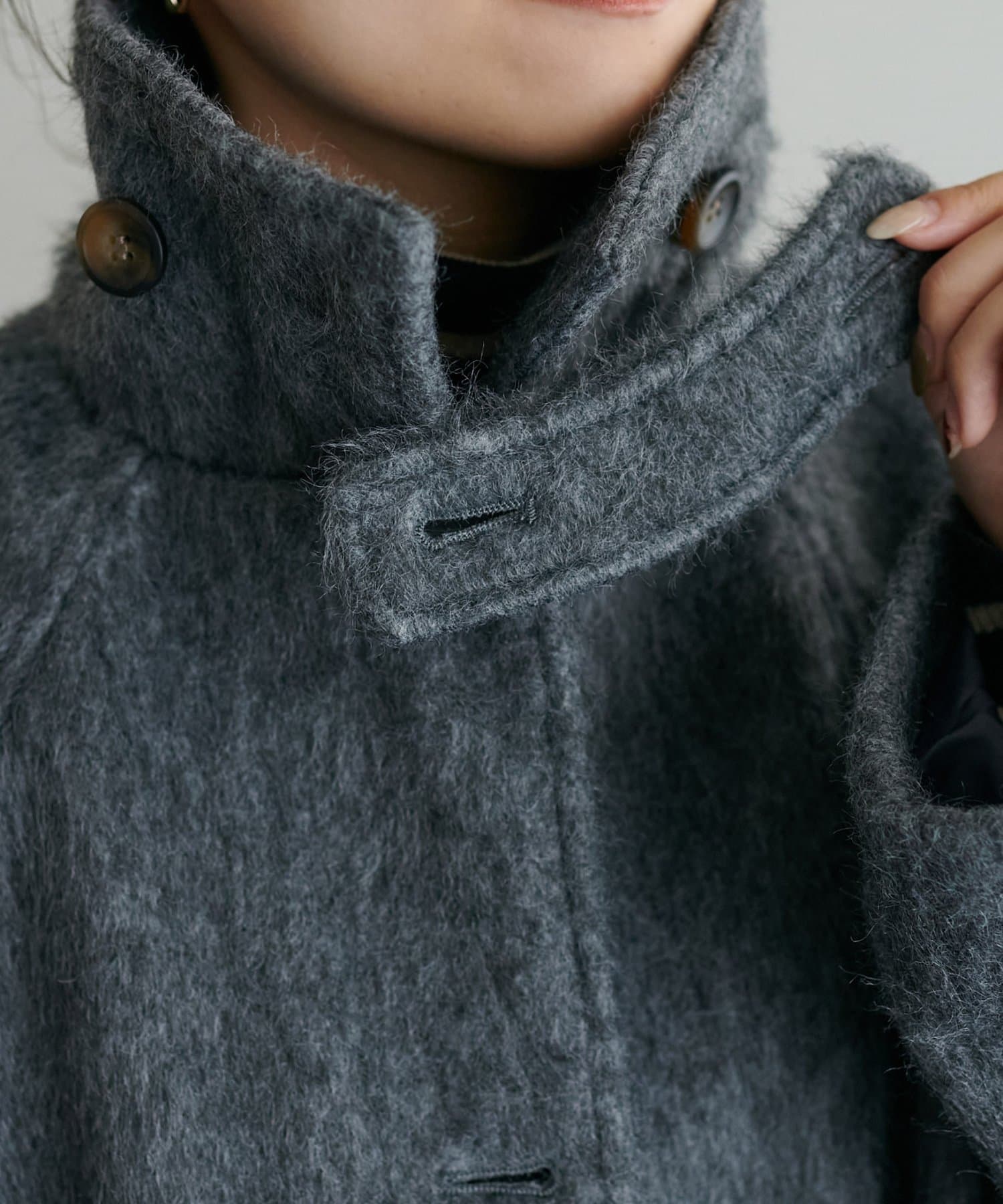 ・モヘアライクな素材が暖かく、大人かわいい雰囲気を演出