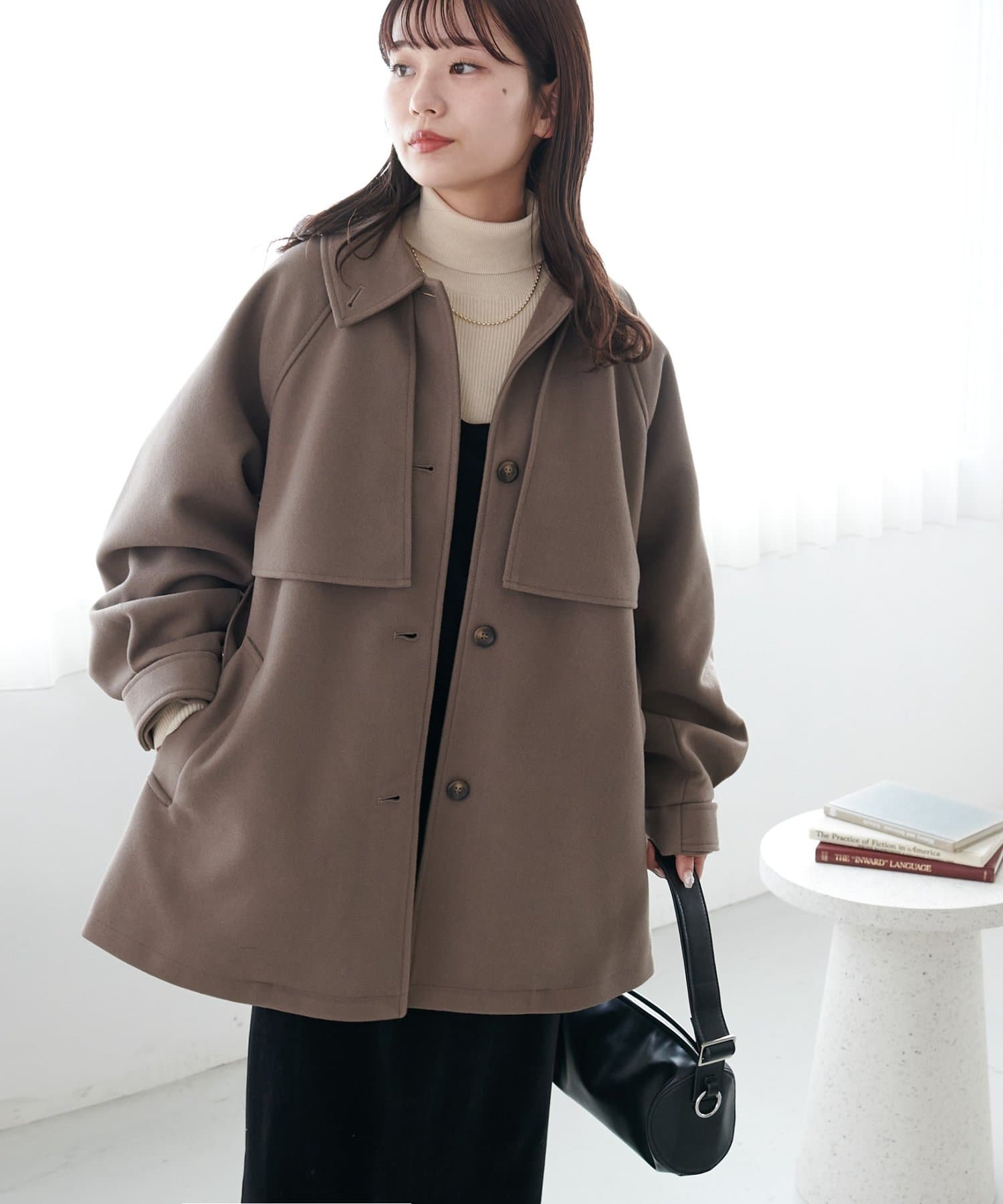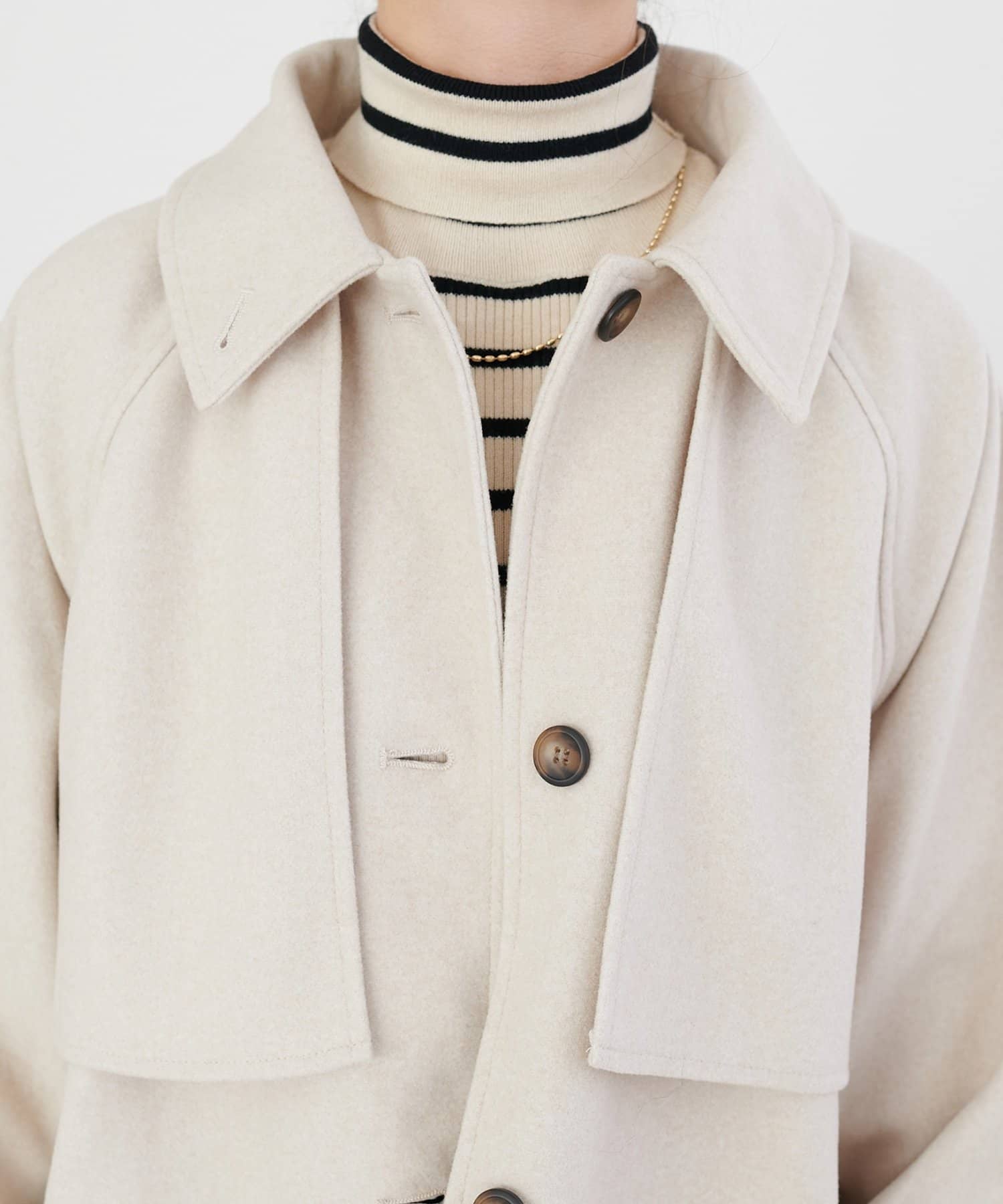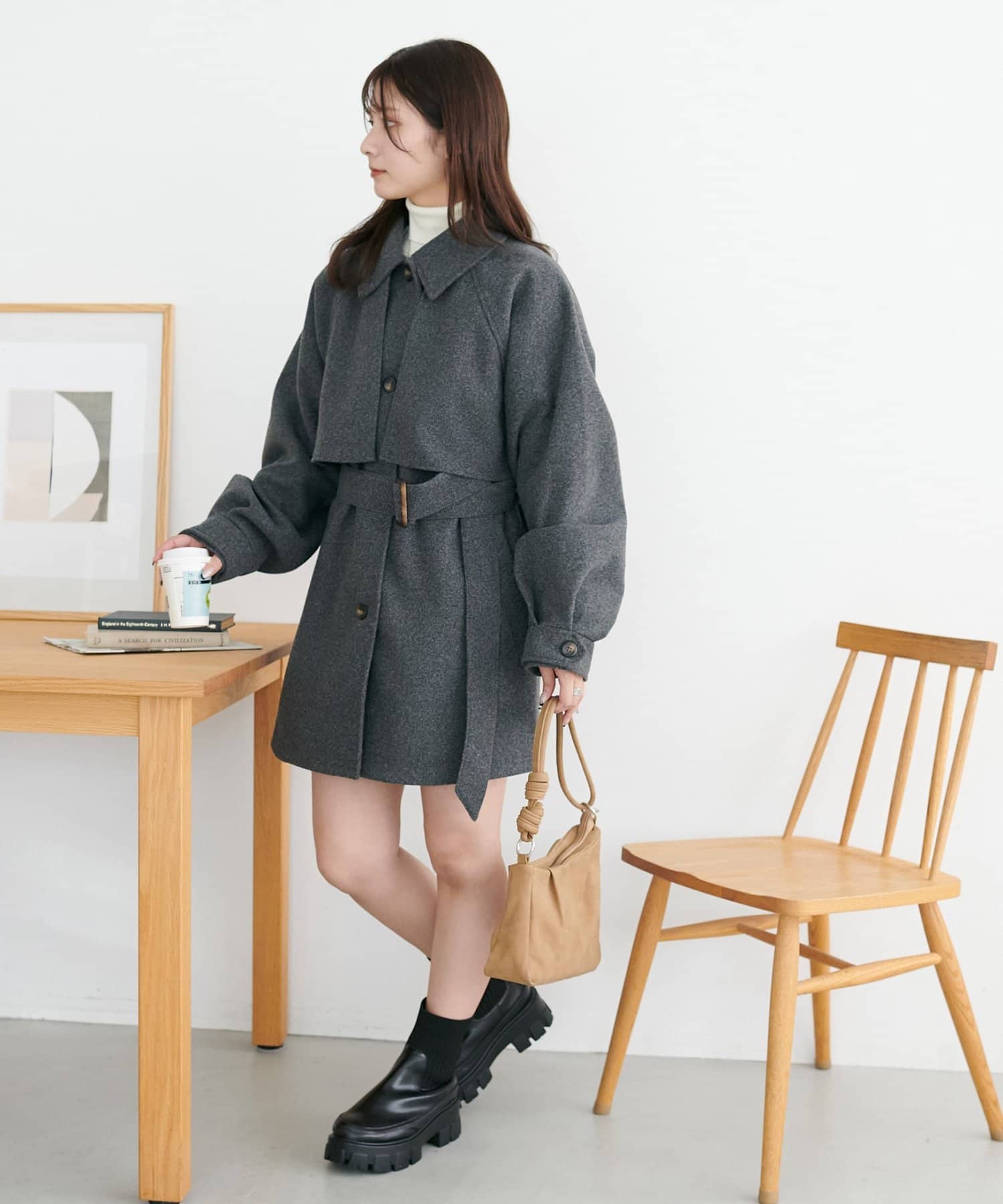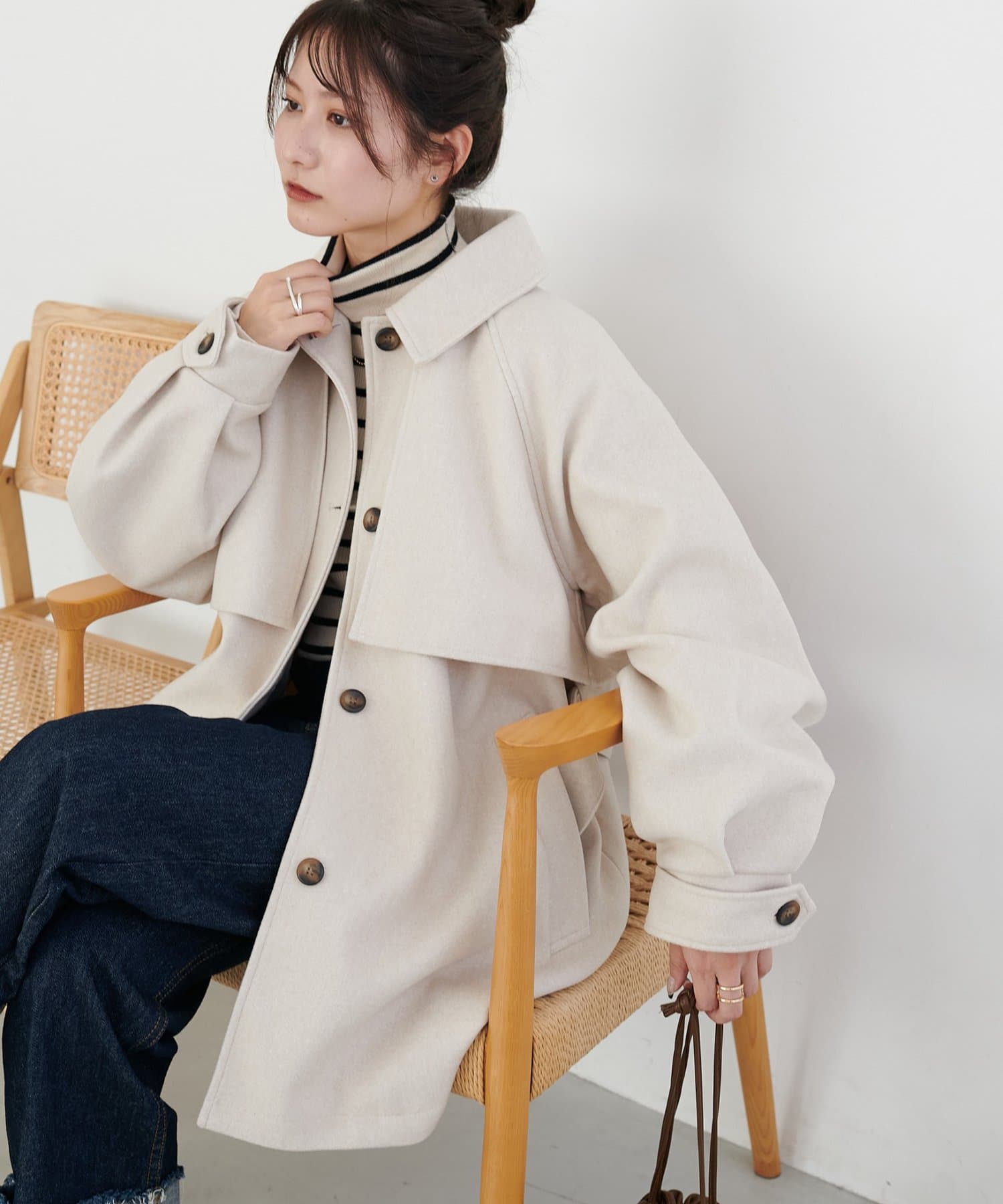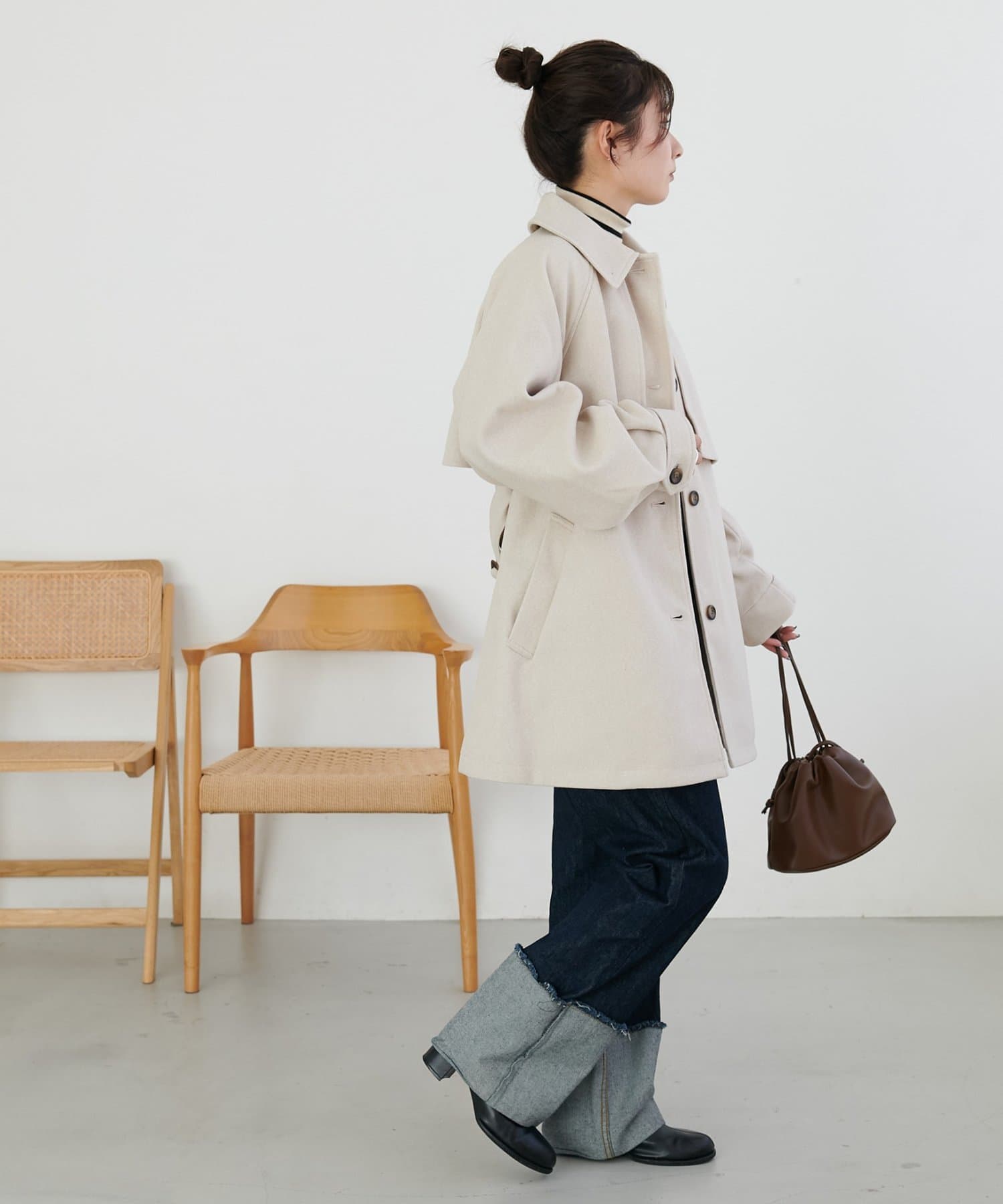 衿を立てても寝かせても着られる2WAYデザインが魅力のミドルコート。