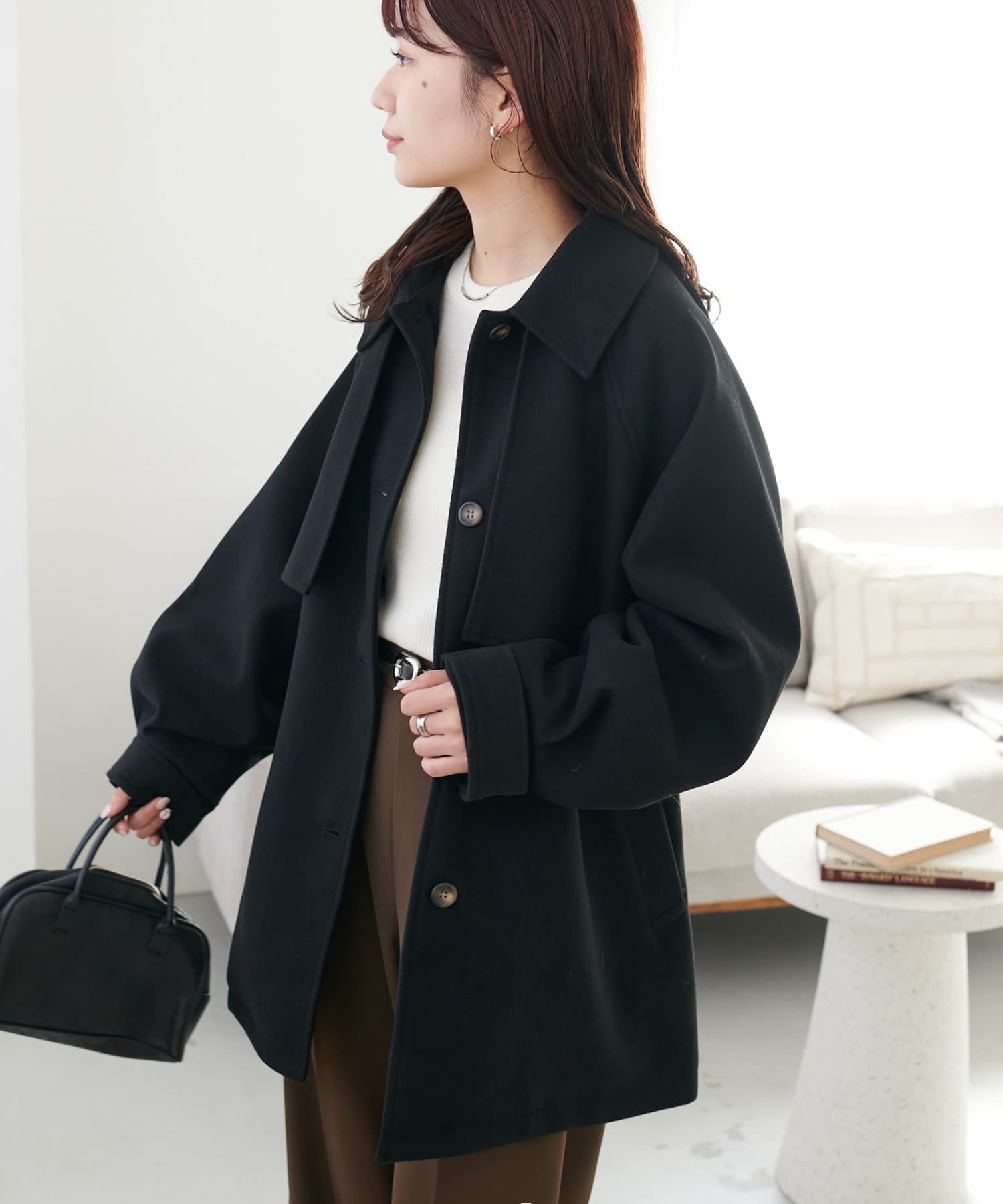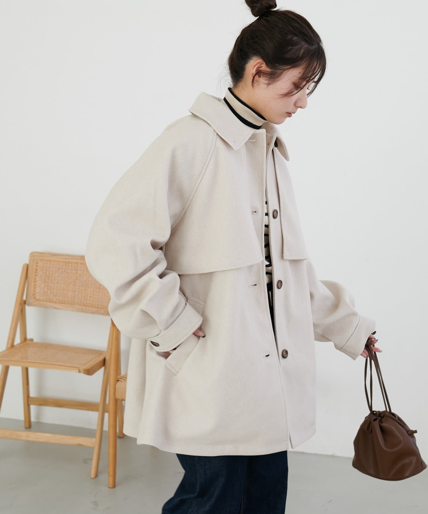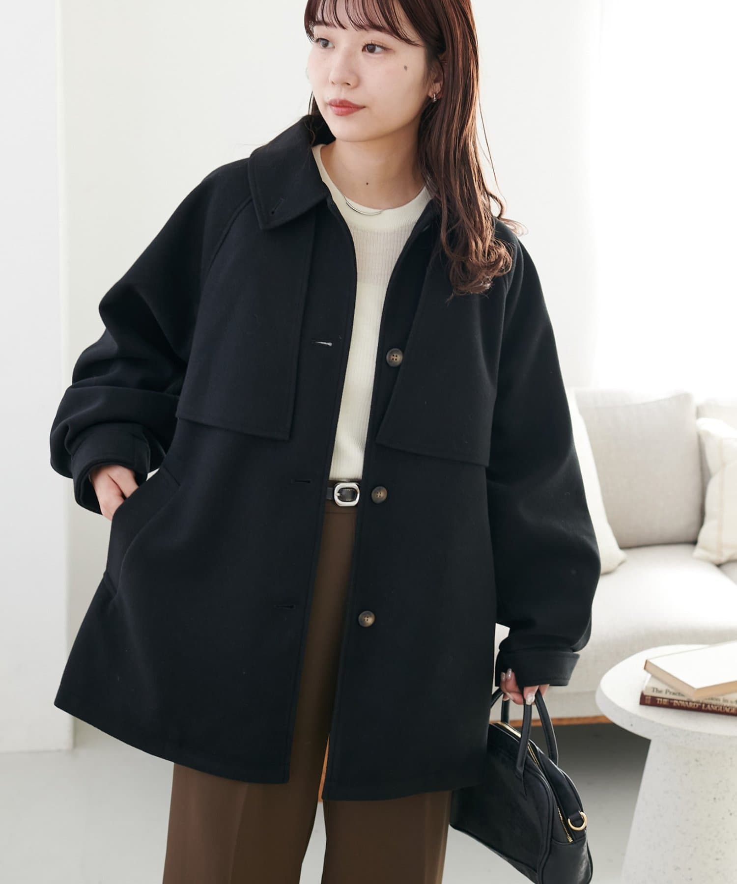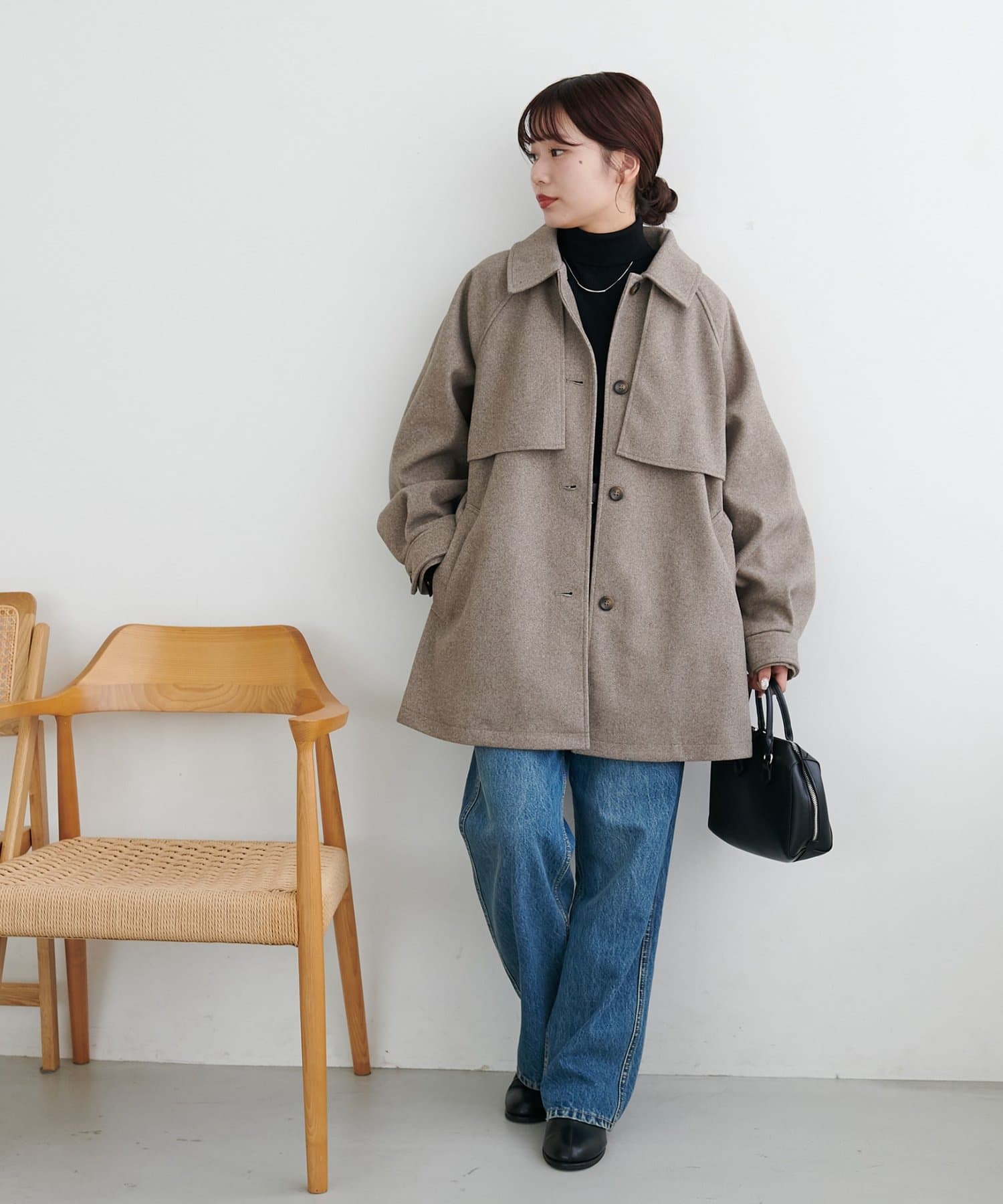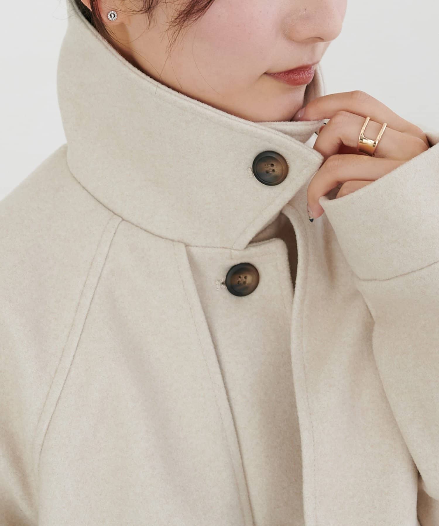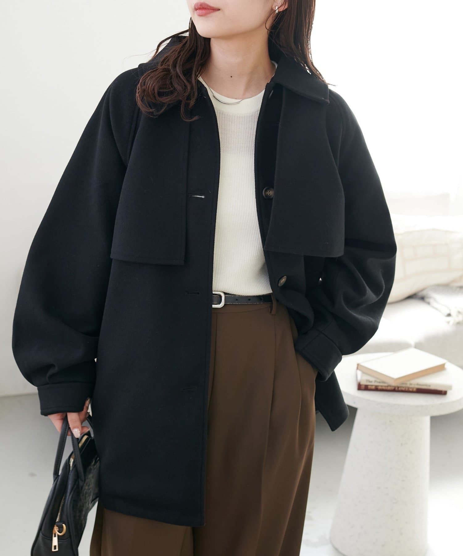 衿を立てても寝かせても着られる2WAYデザインが魅力のミドルコート。