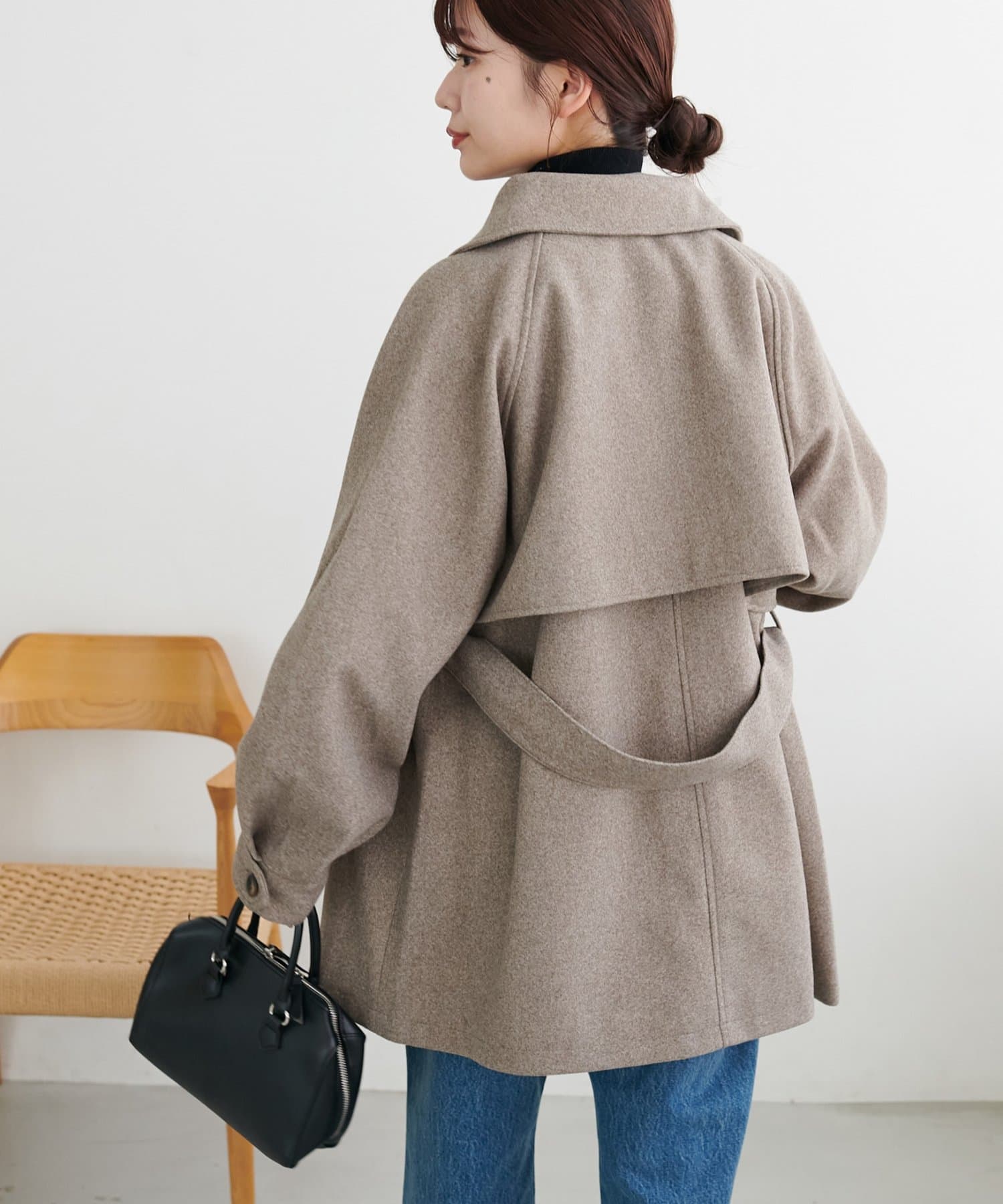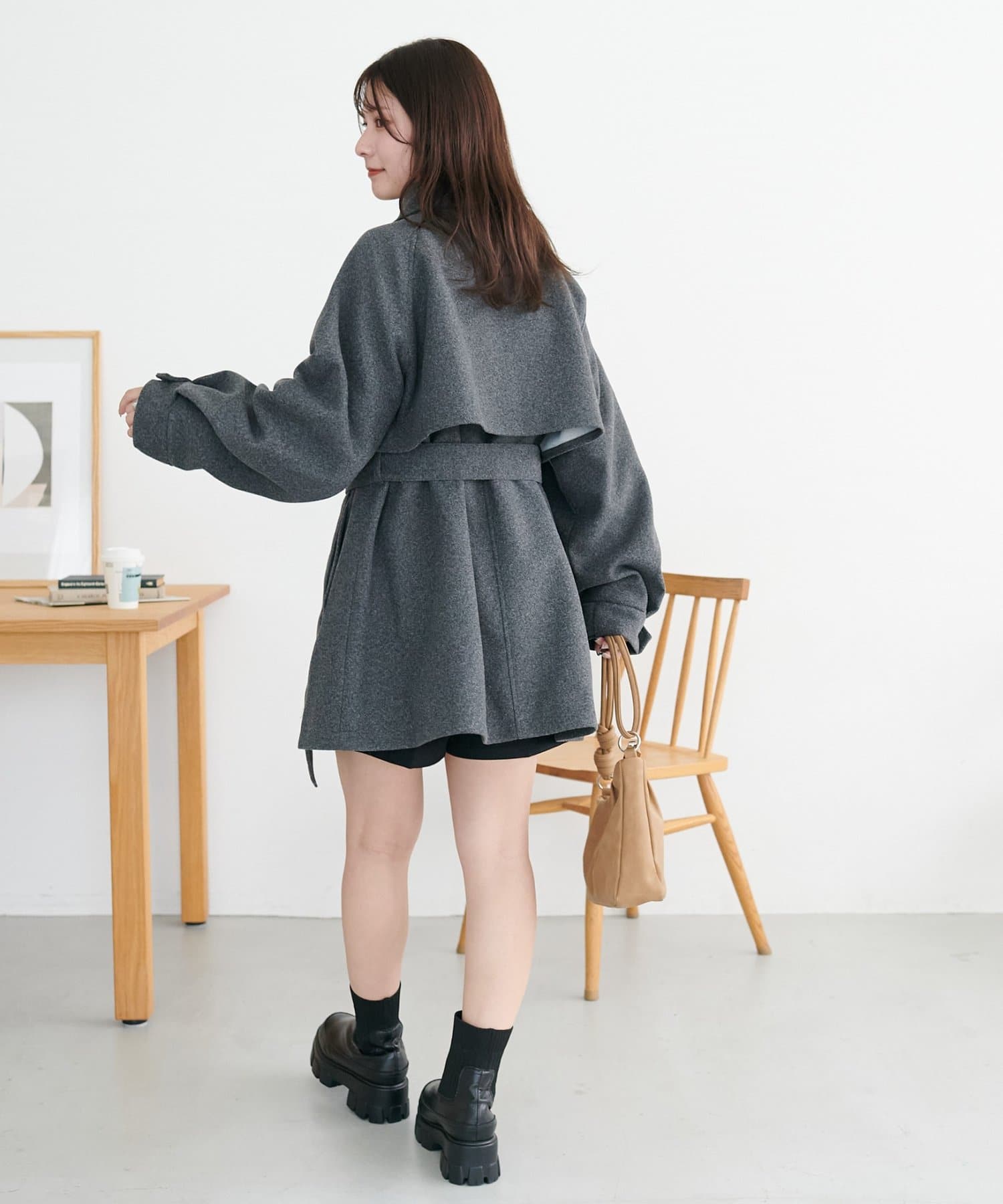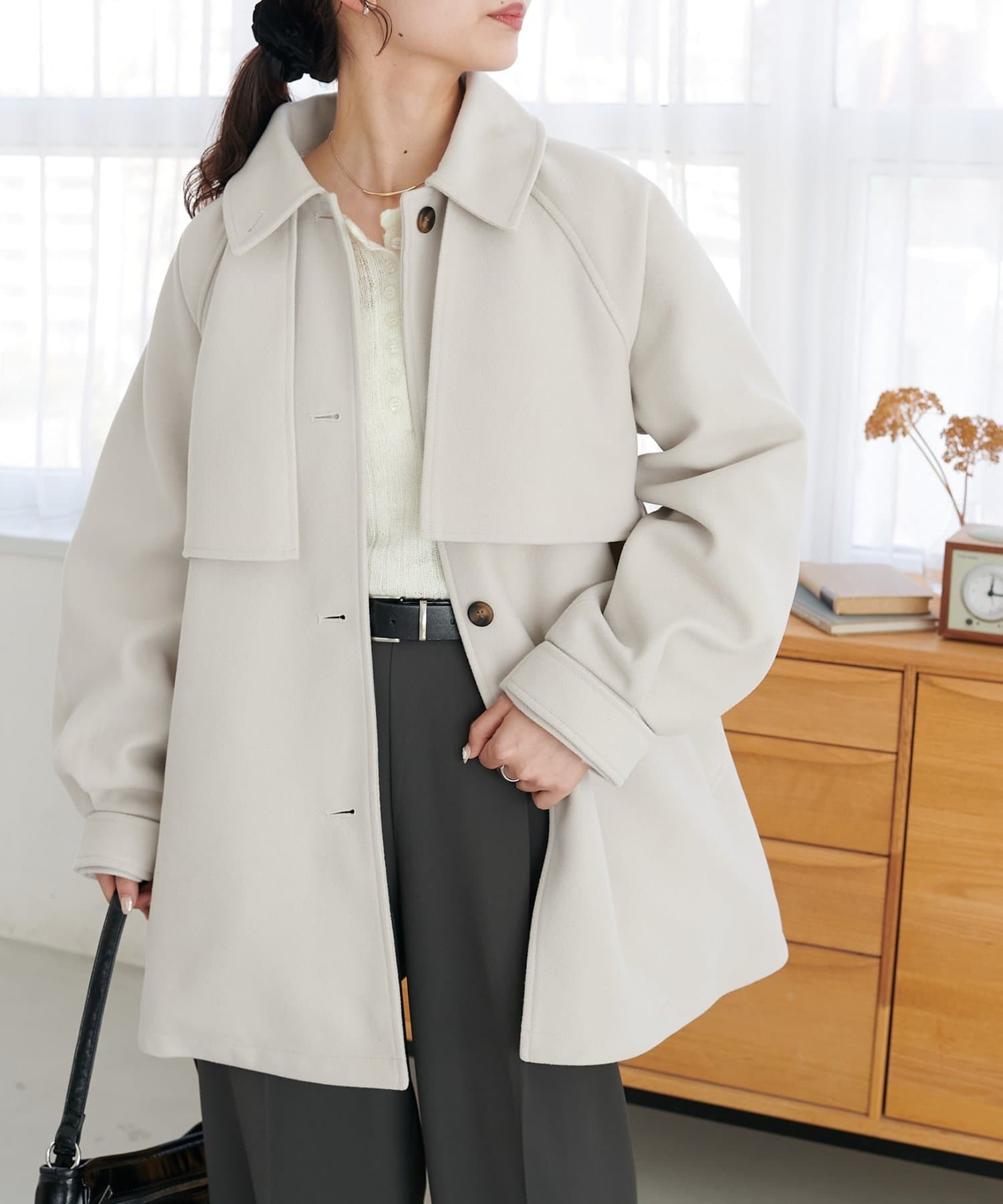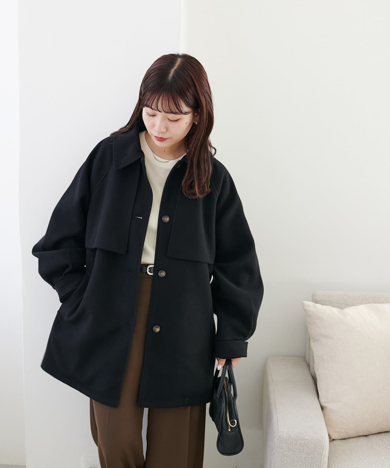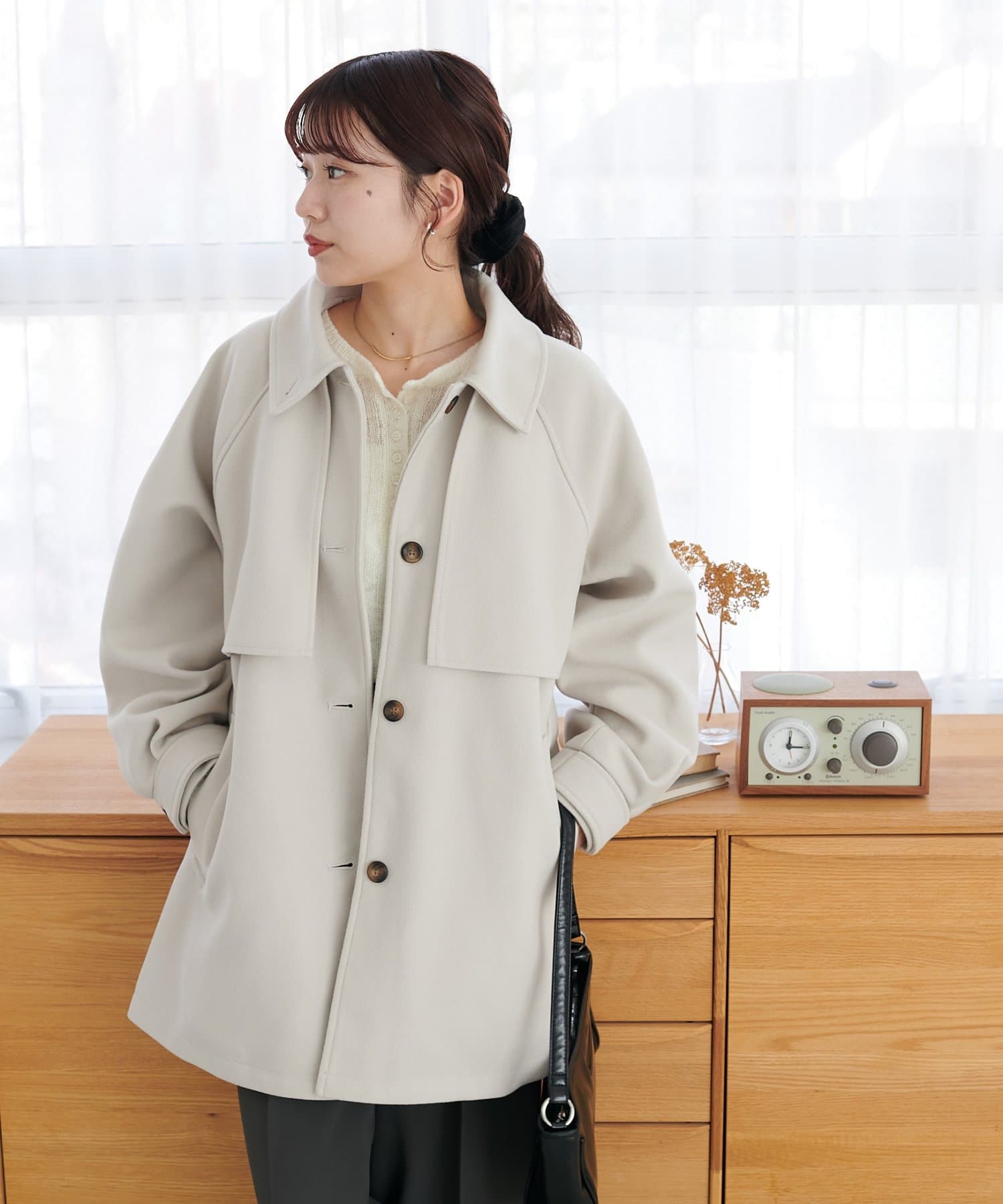 衿を立てても寝かせても着られる2WAYデザインが魅力のミドルコート。