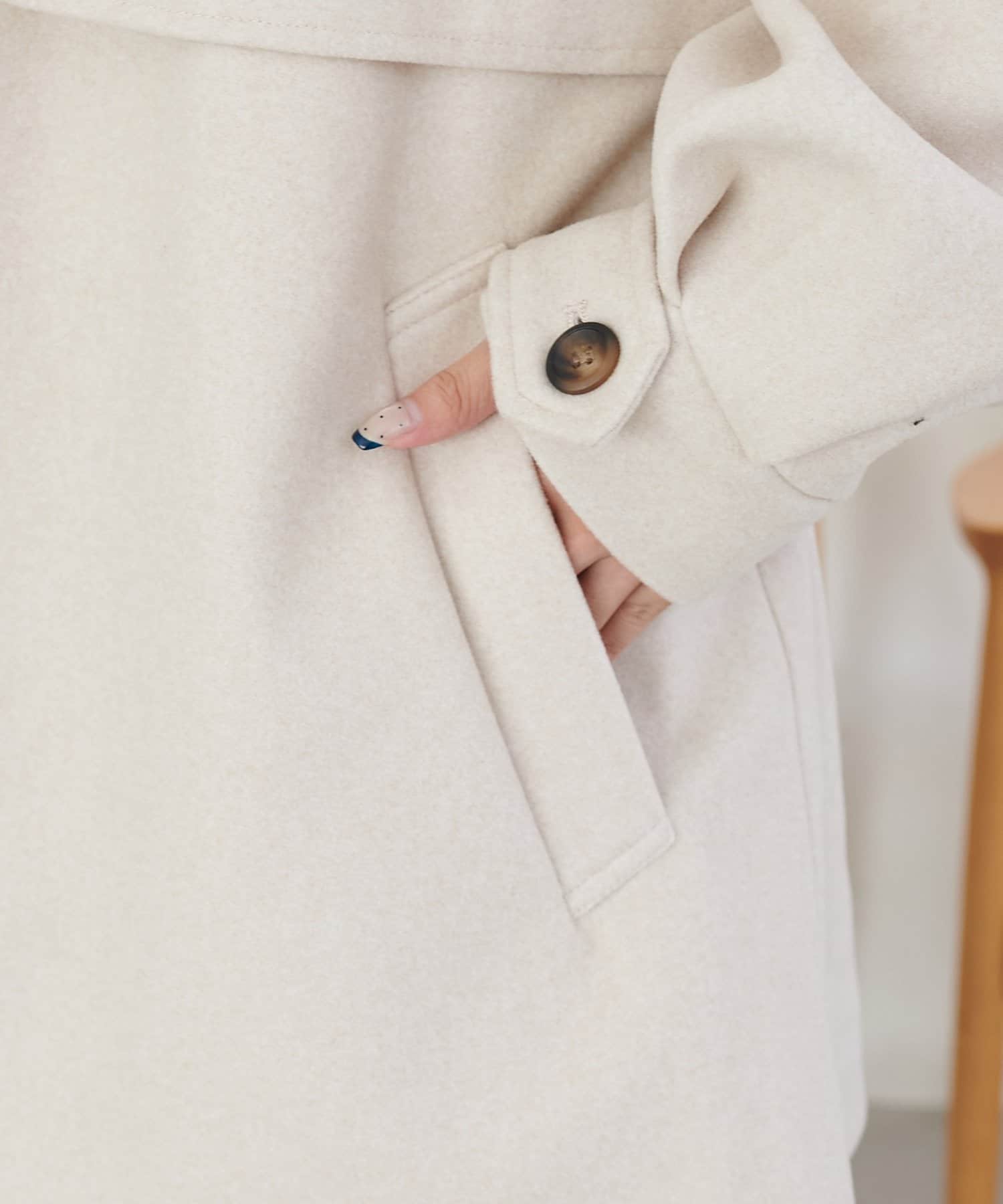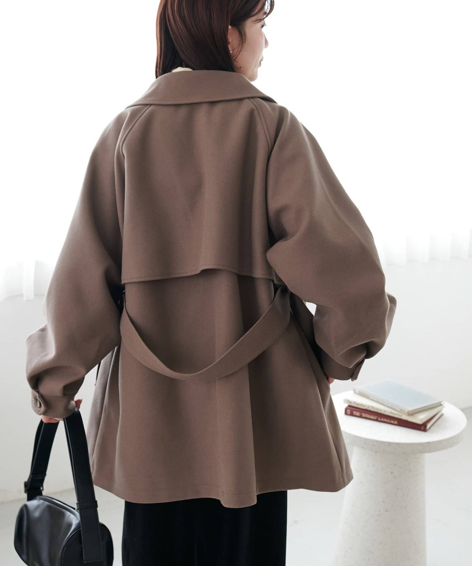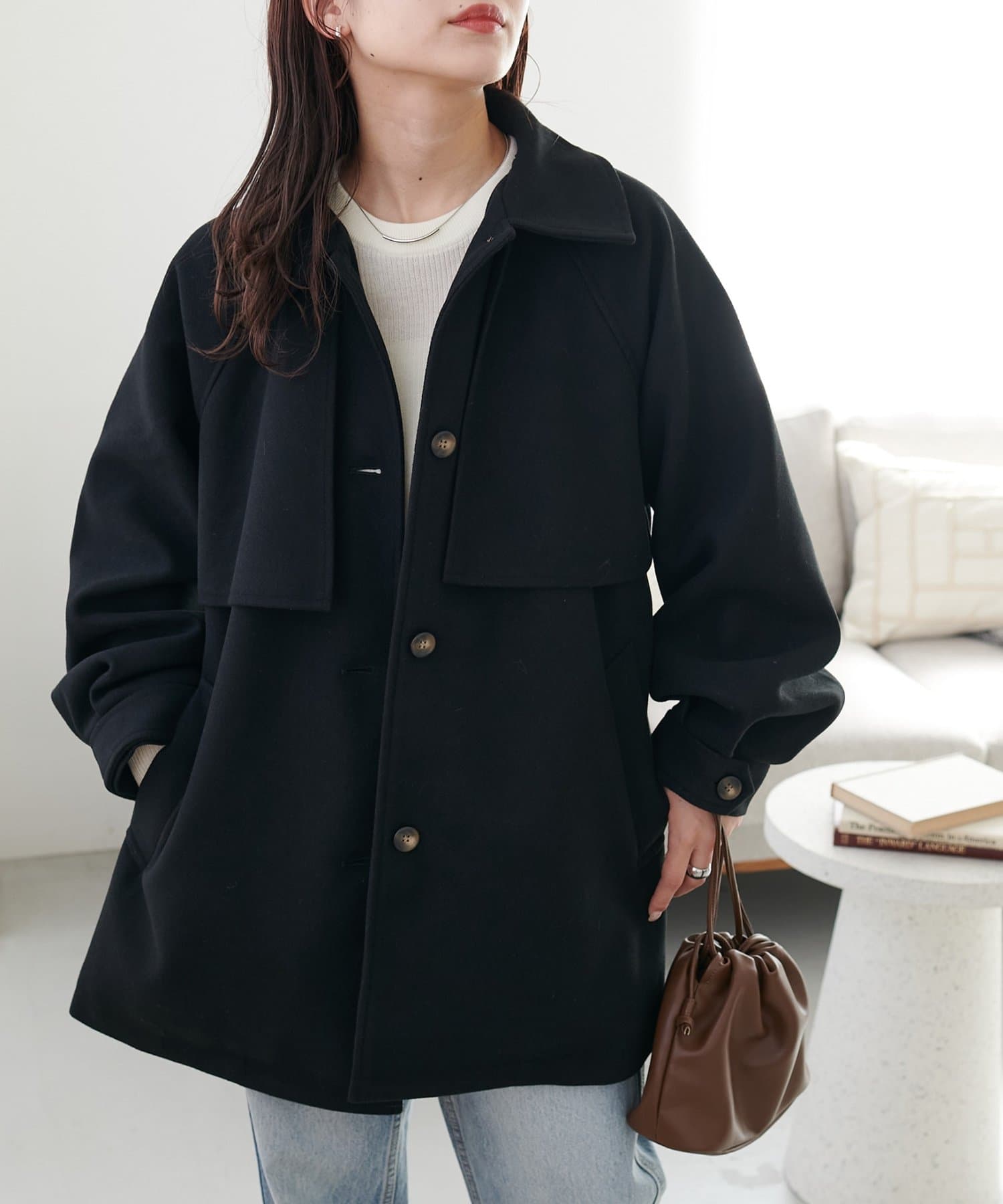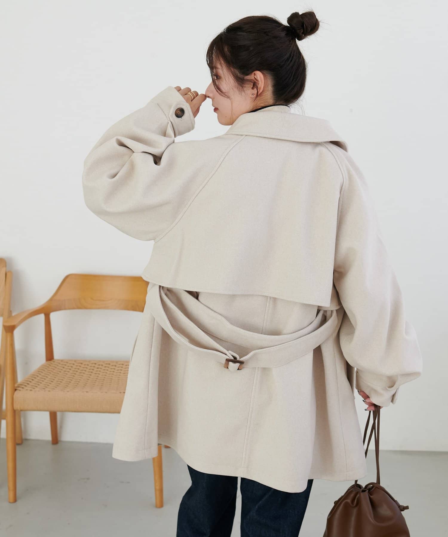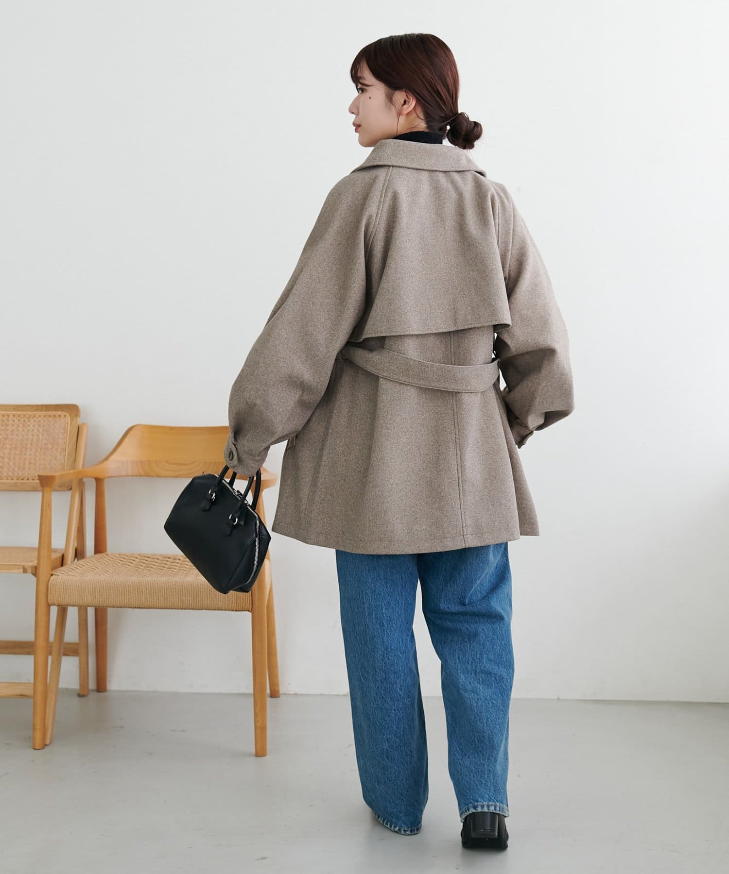 衿を立てても寝かせても着られる2WAYデザインが魅力のミドルコート。