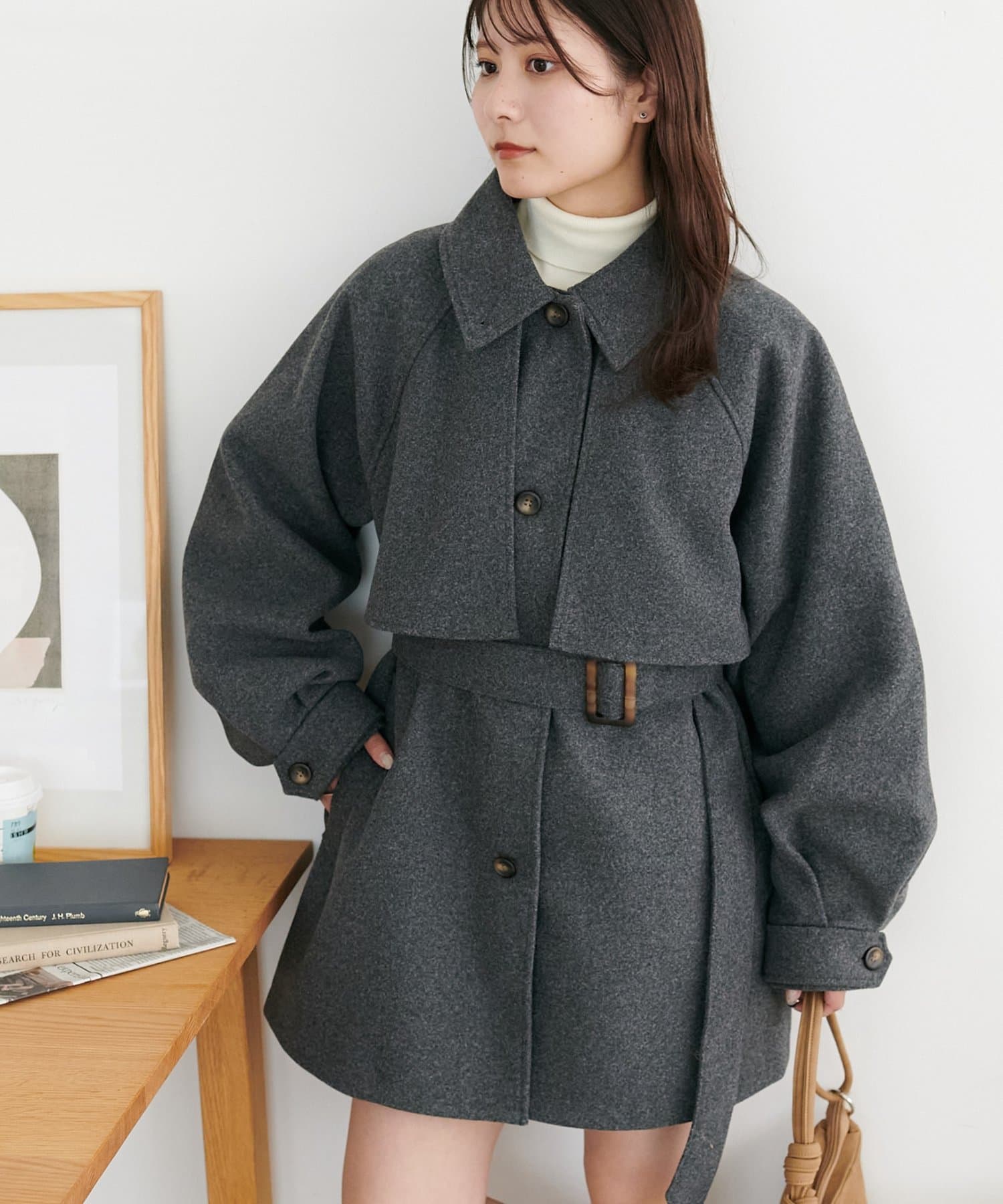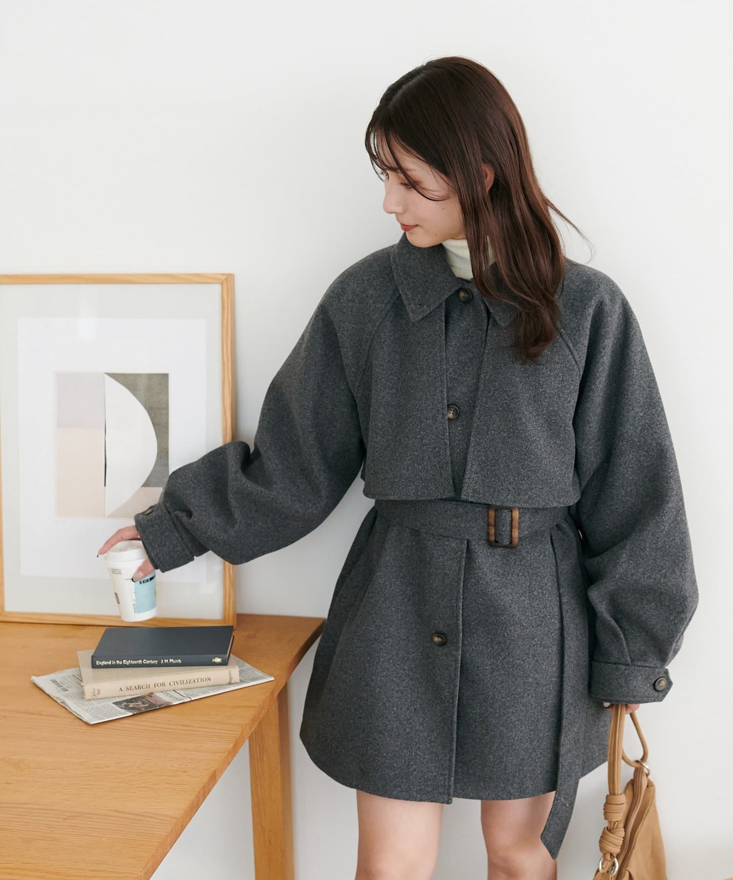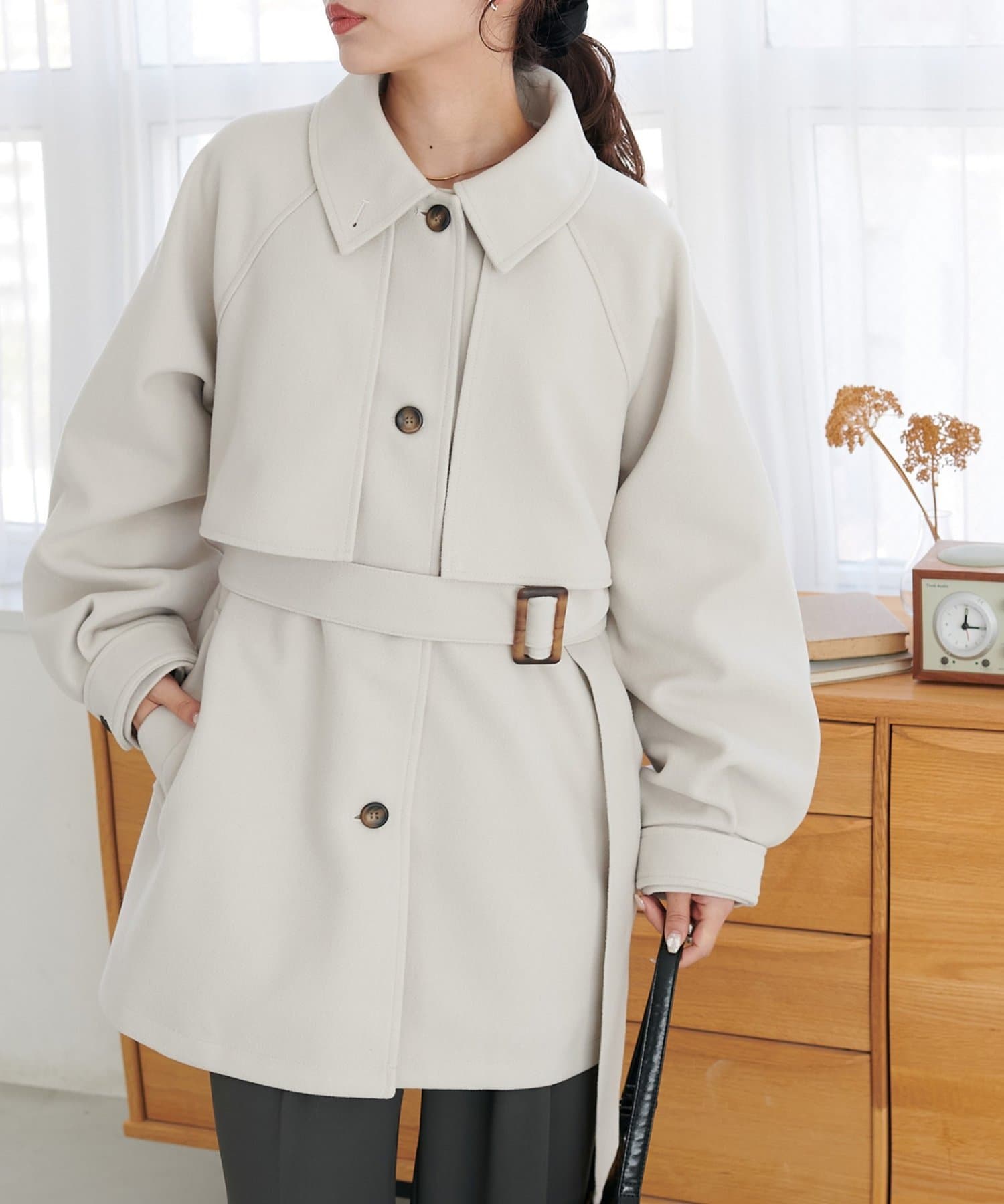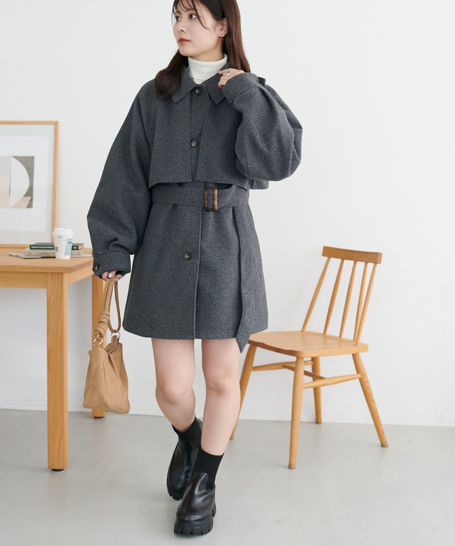【6色展開/体型カバー/ベルト付き】2WAYカラーミドルコート《WEB限定》