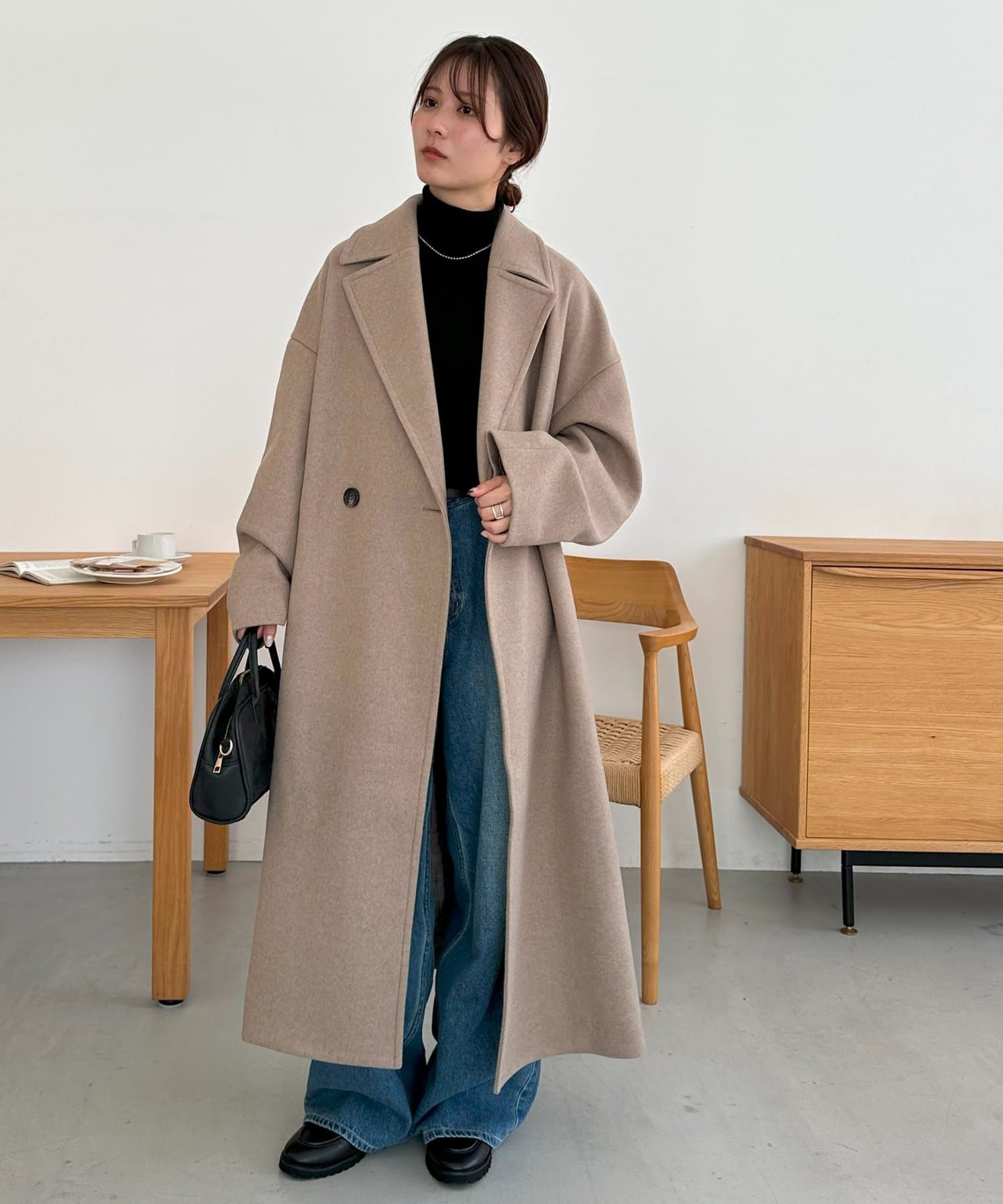 ロングコートなので、パンツスタイルやナロースカート合わせがおすすめ!