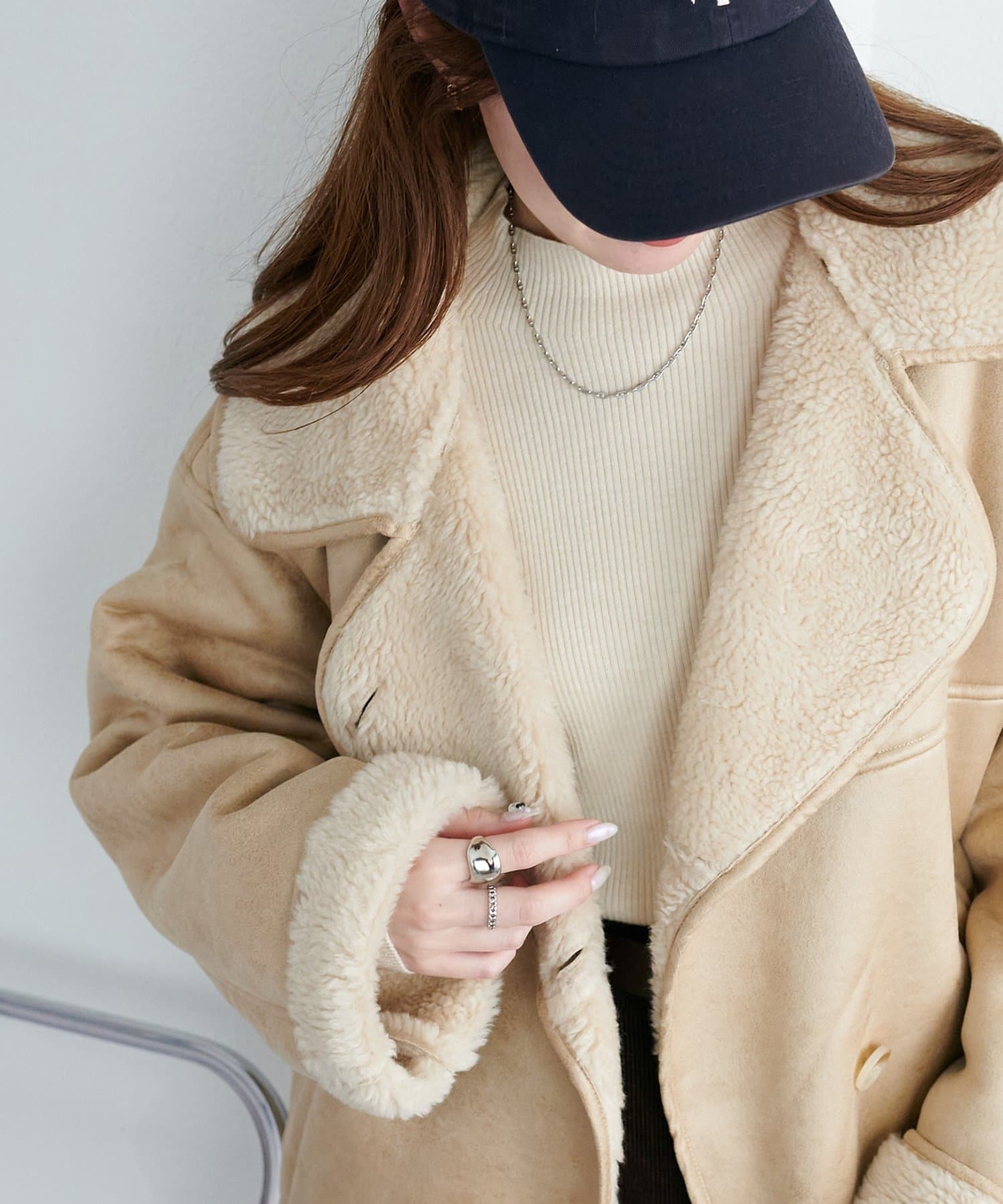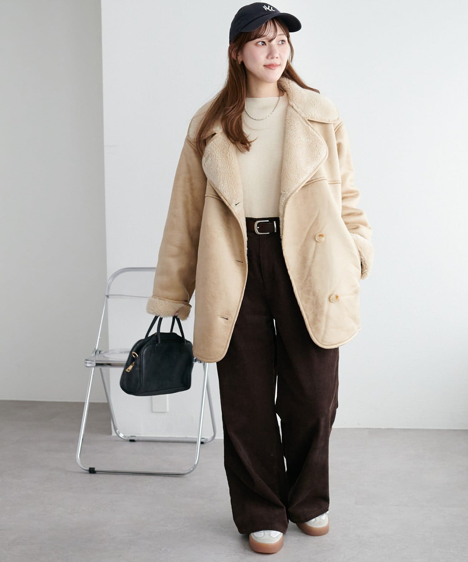 裏地はボア素材で暖かみもしっかりあります◎女性らしい柔らかな雰囲気も楽しめるアウターなので、カジュアルからキレイメ、甘めまでテイスト問わず合わせやすいです。