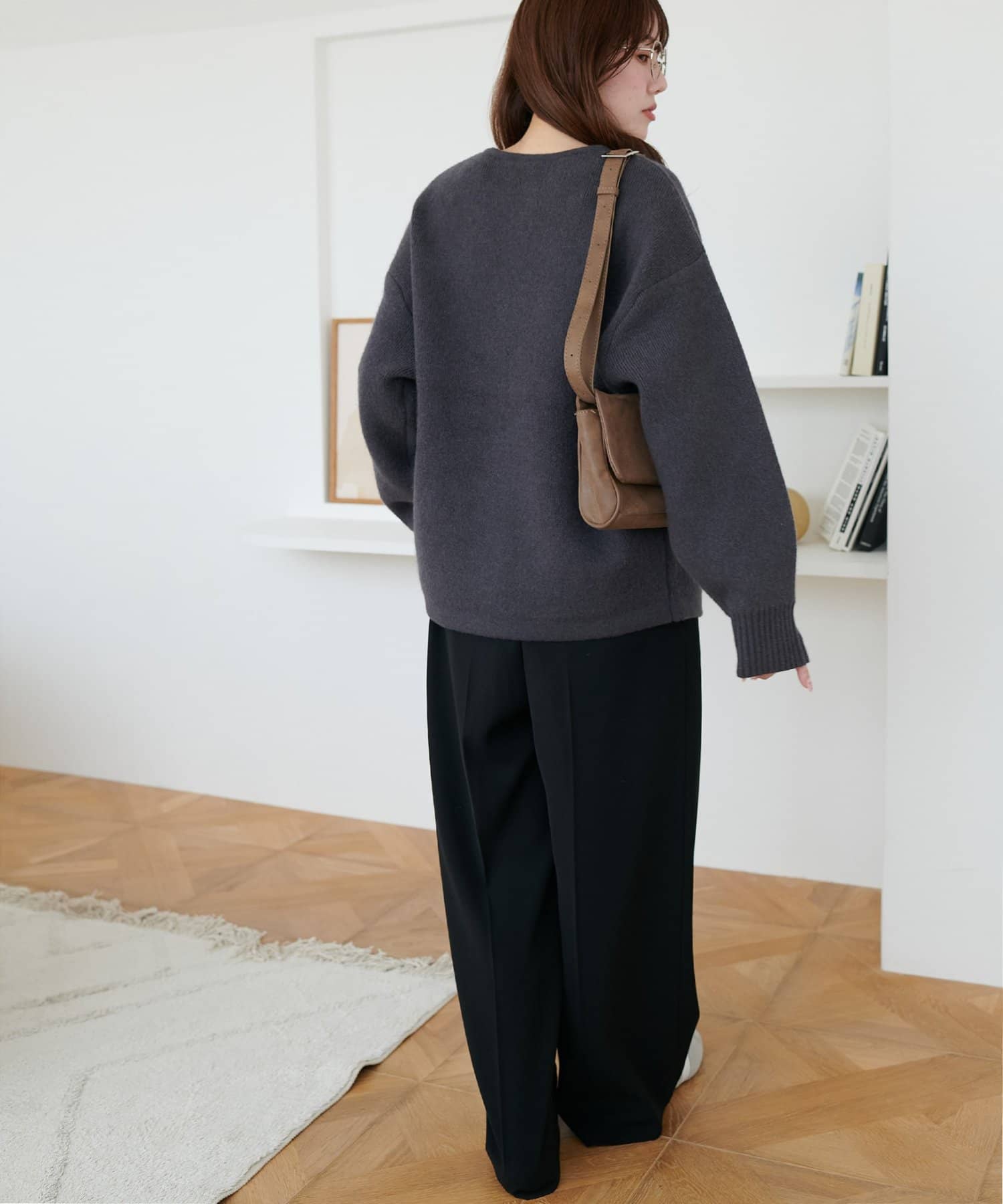 160cmスタッフ:やや厚めの柔らかなニット素材で着心地◎パンツでもスカートでも合わせやすく、たくさん着まわせます♪