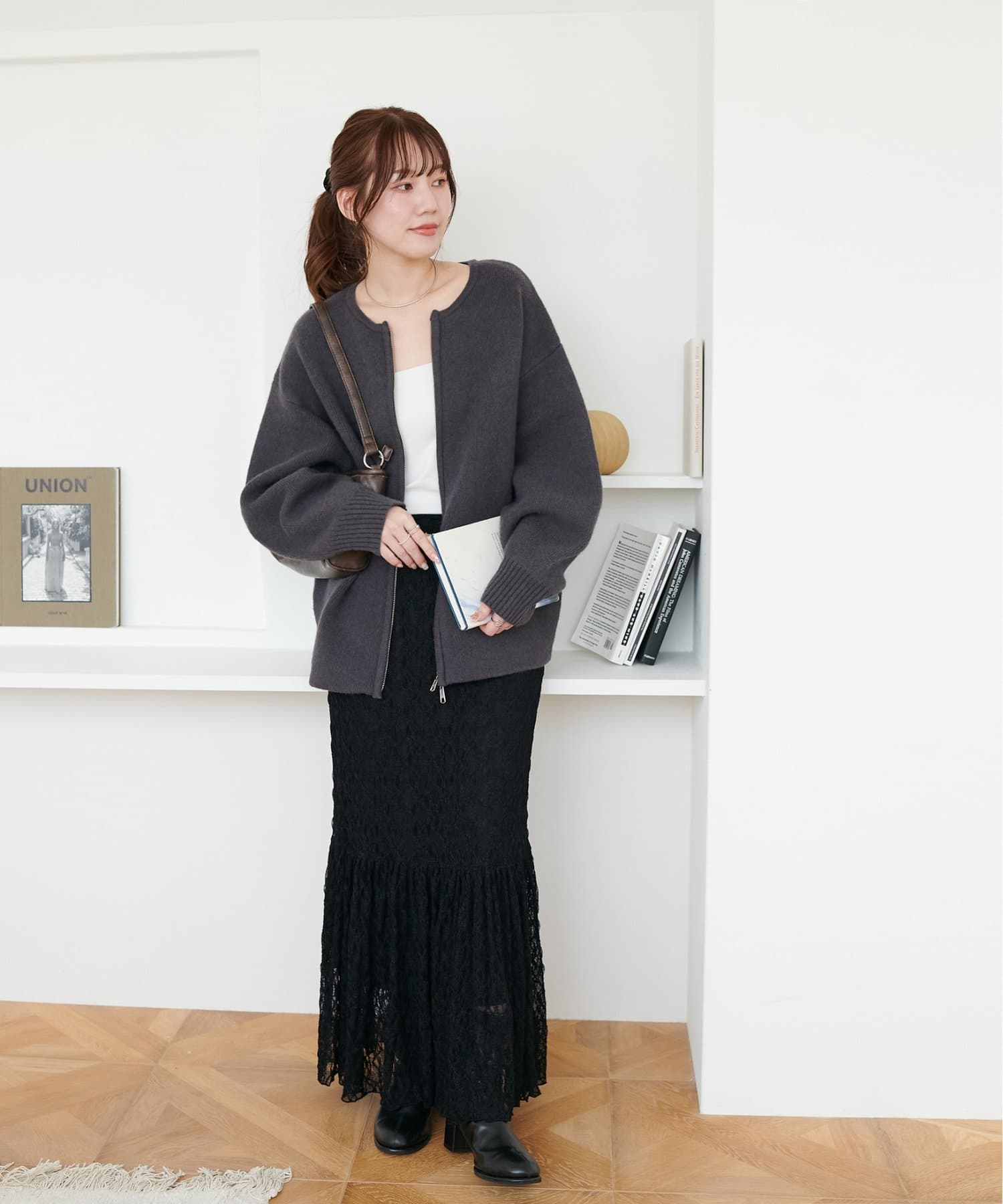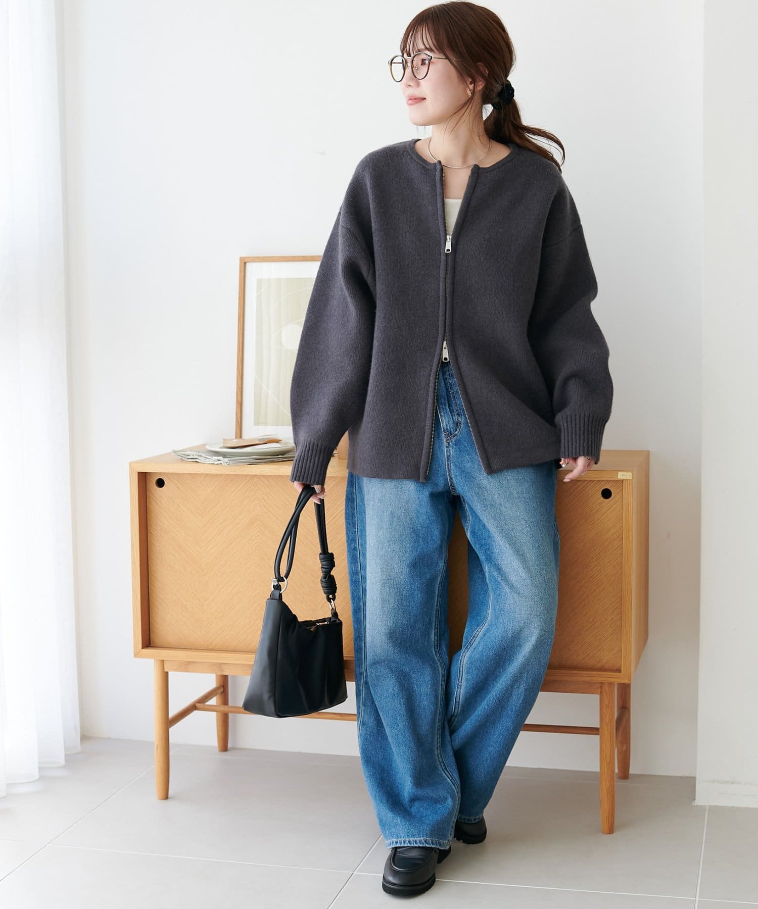 155cmスタッフ:ダブルジップで抜け感を出せるので、シンプルながらアレンジしやすいのが嬉しいです!