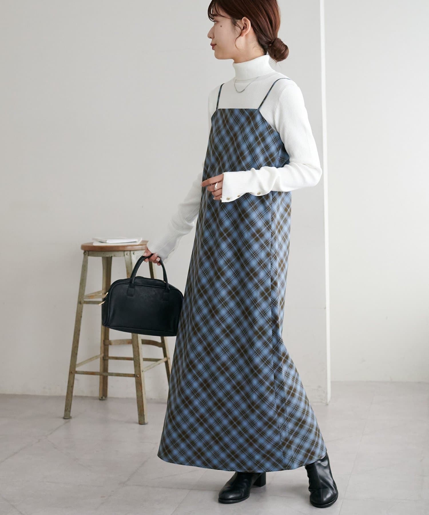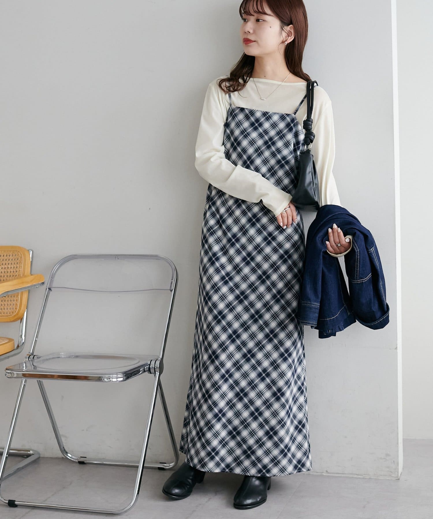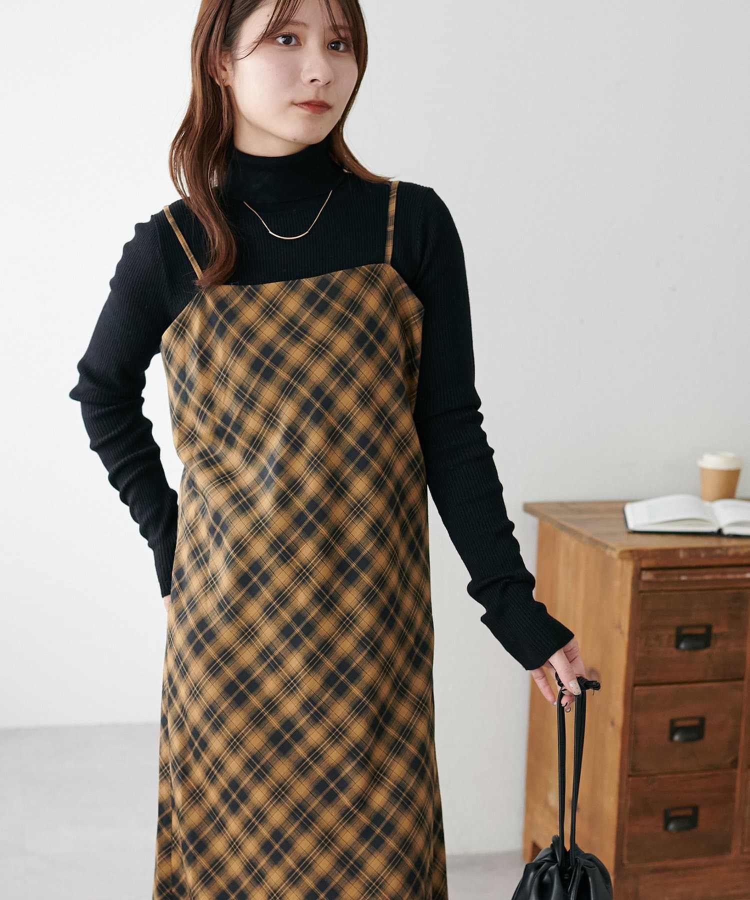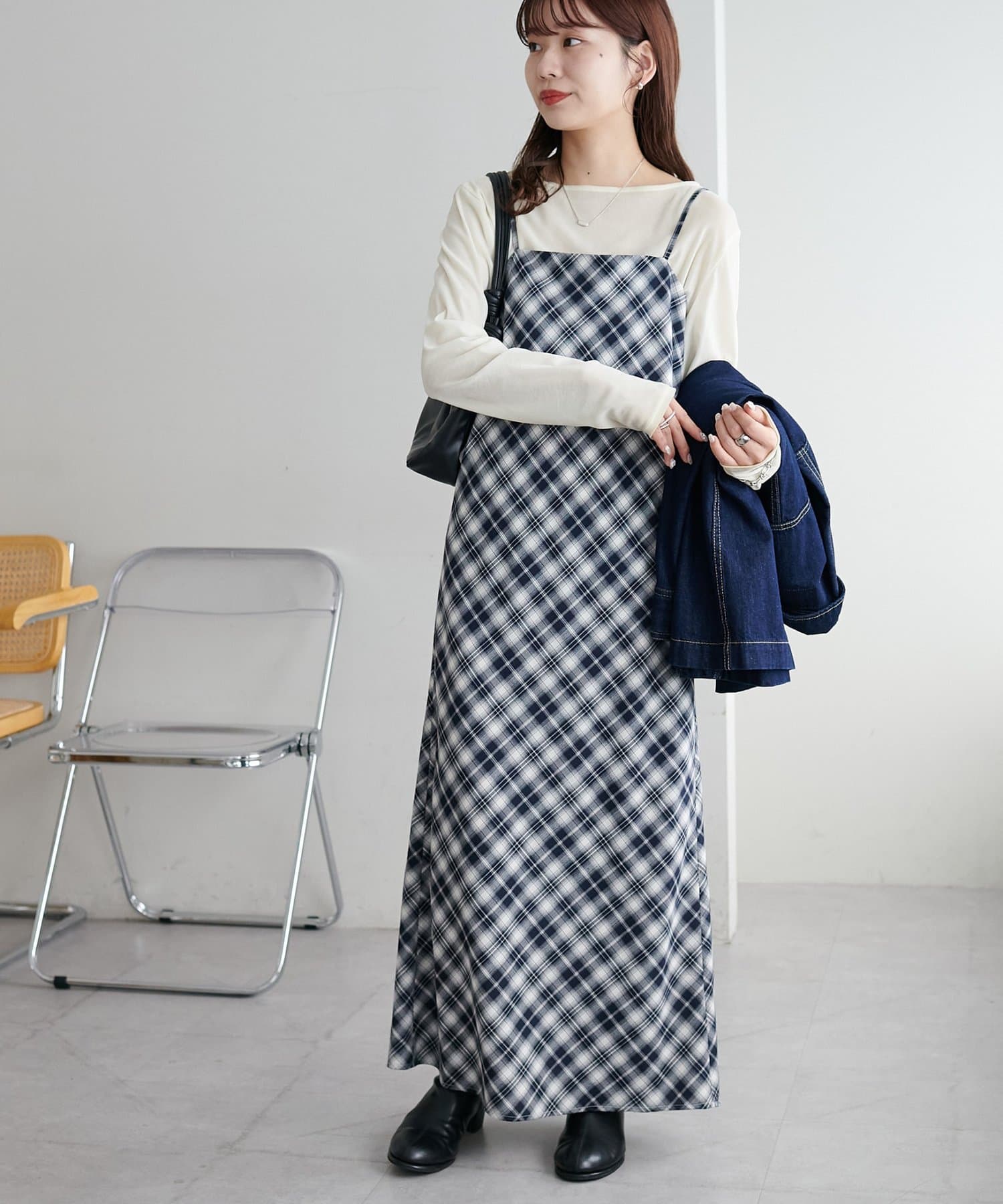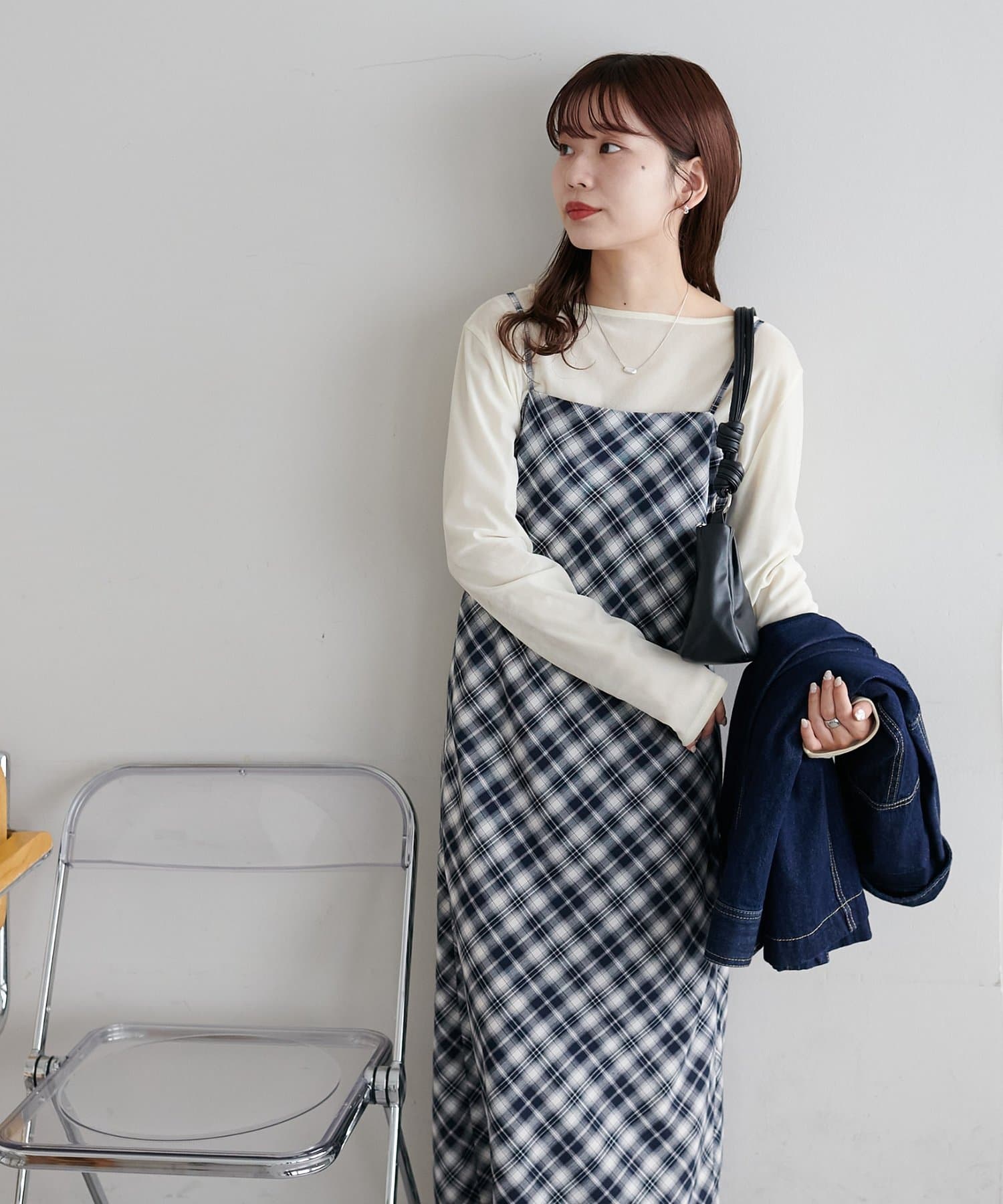 【チェック柄が映える!/着回し万能/WEB限定】オンブレチェックキャミワンピース