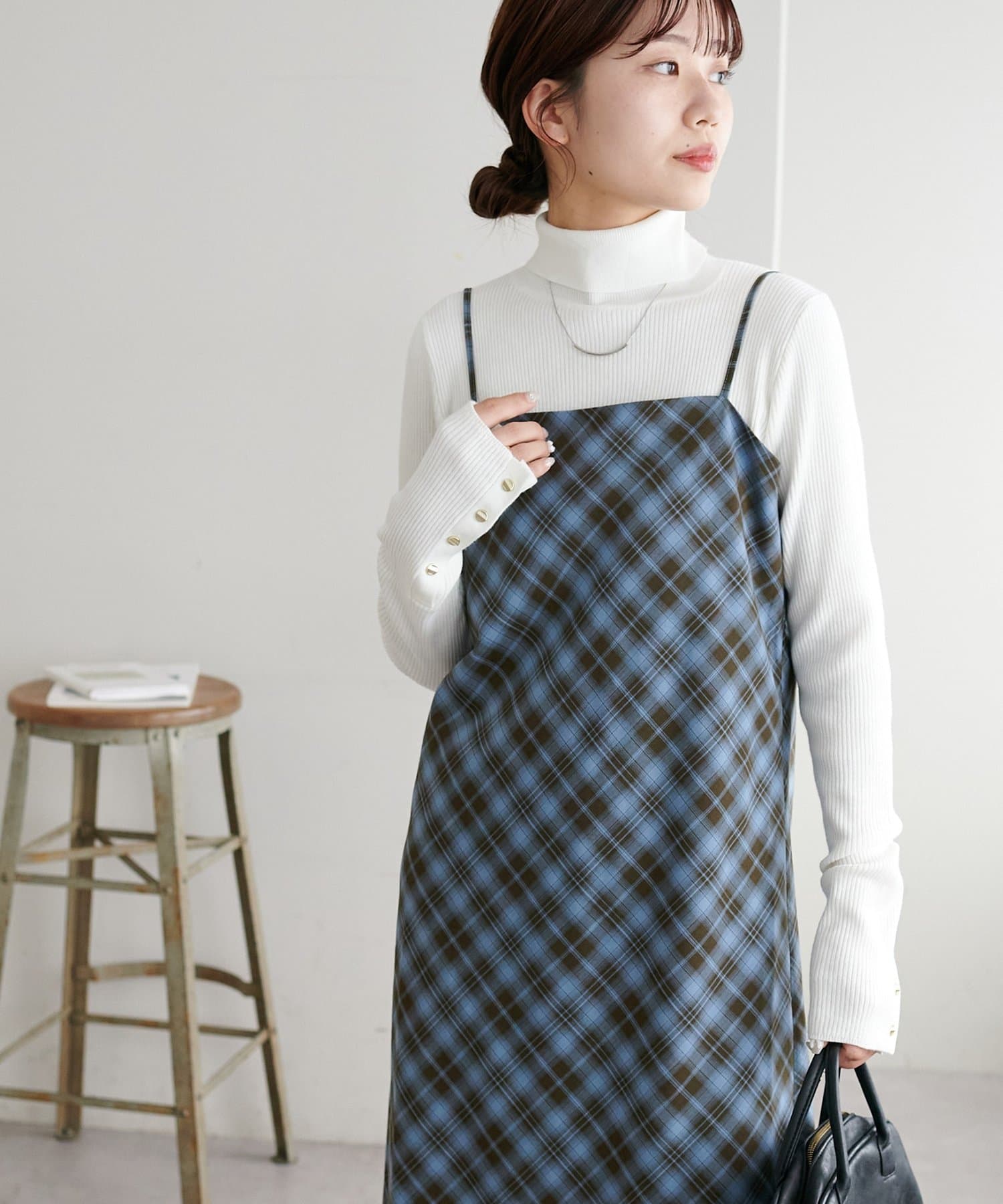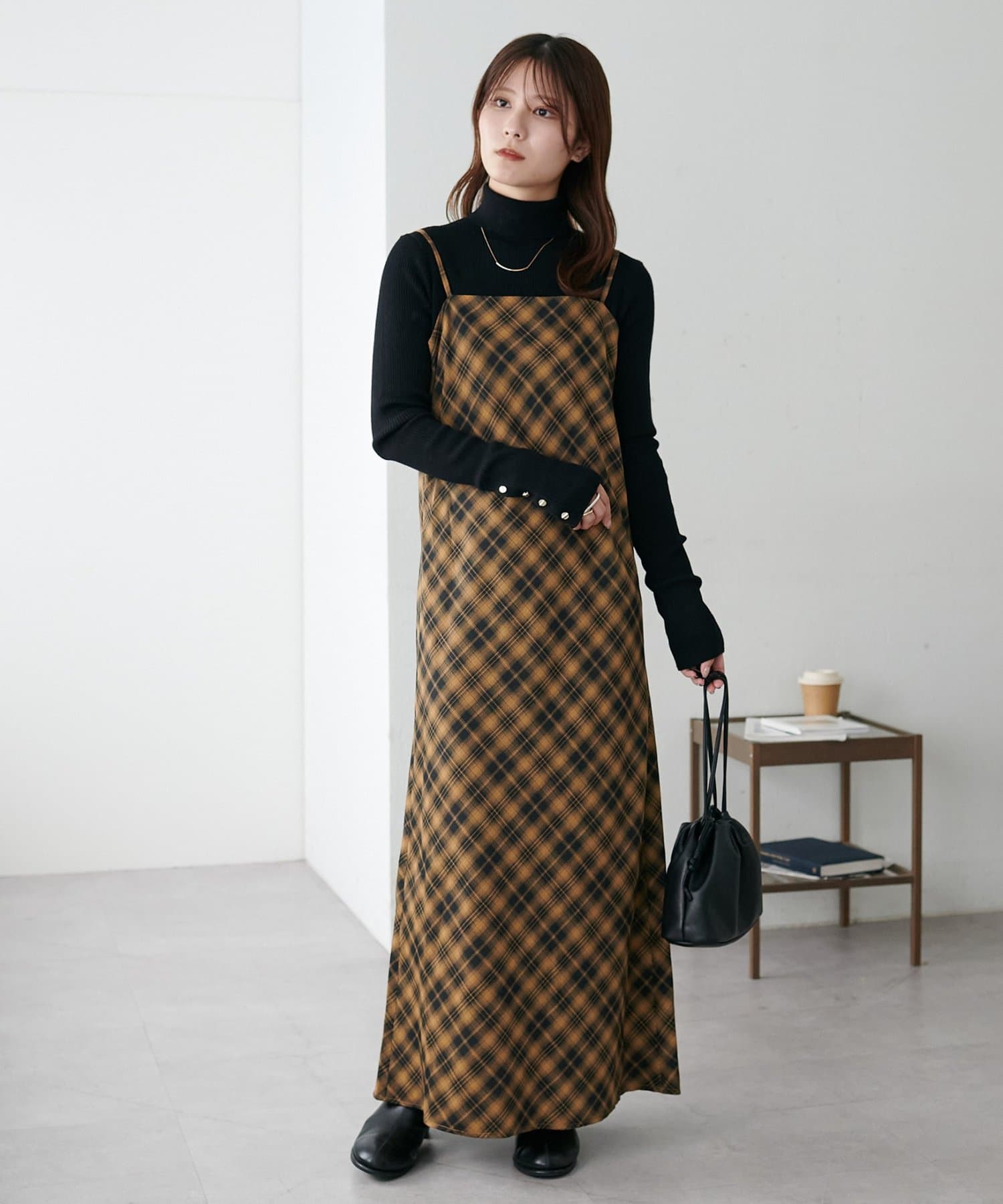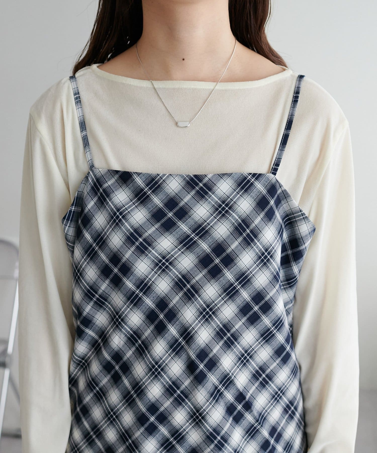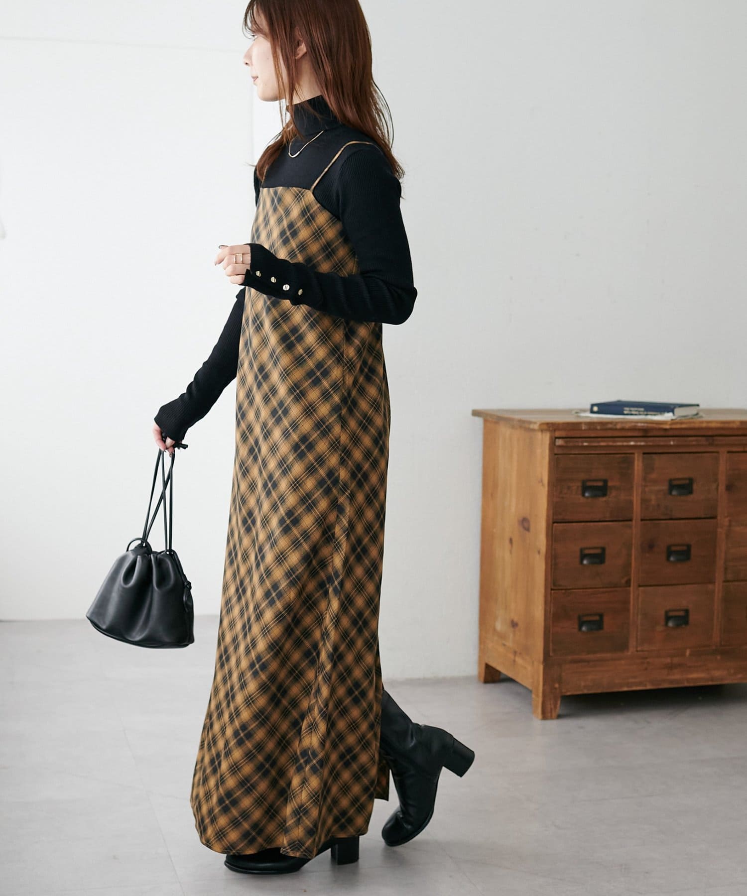 【チェック柄が映える!/着回し万能/WEB限定】オンブレチェックキャミワンピース