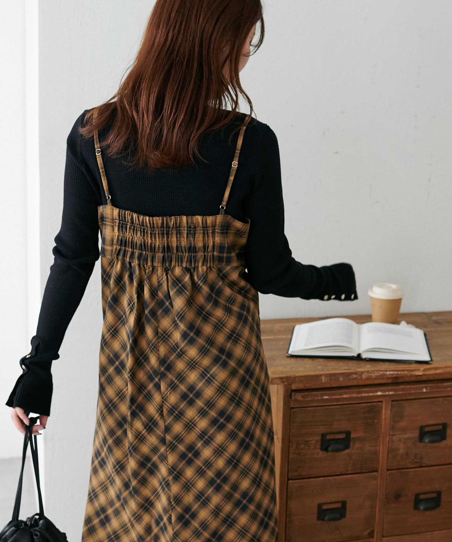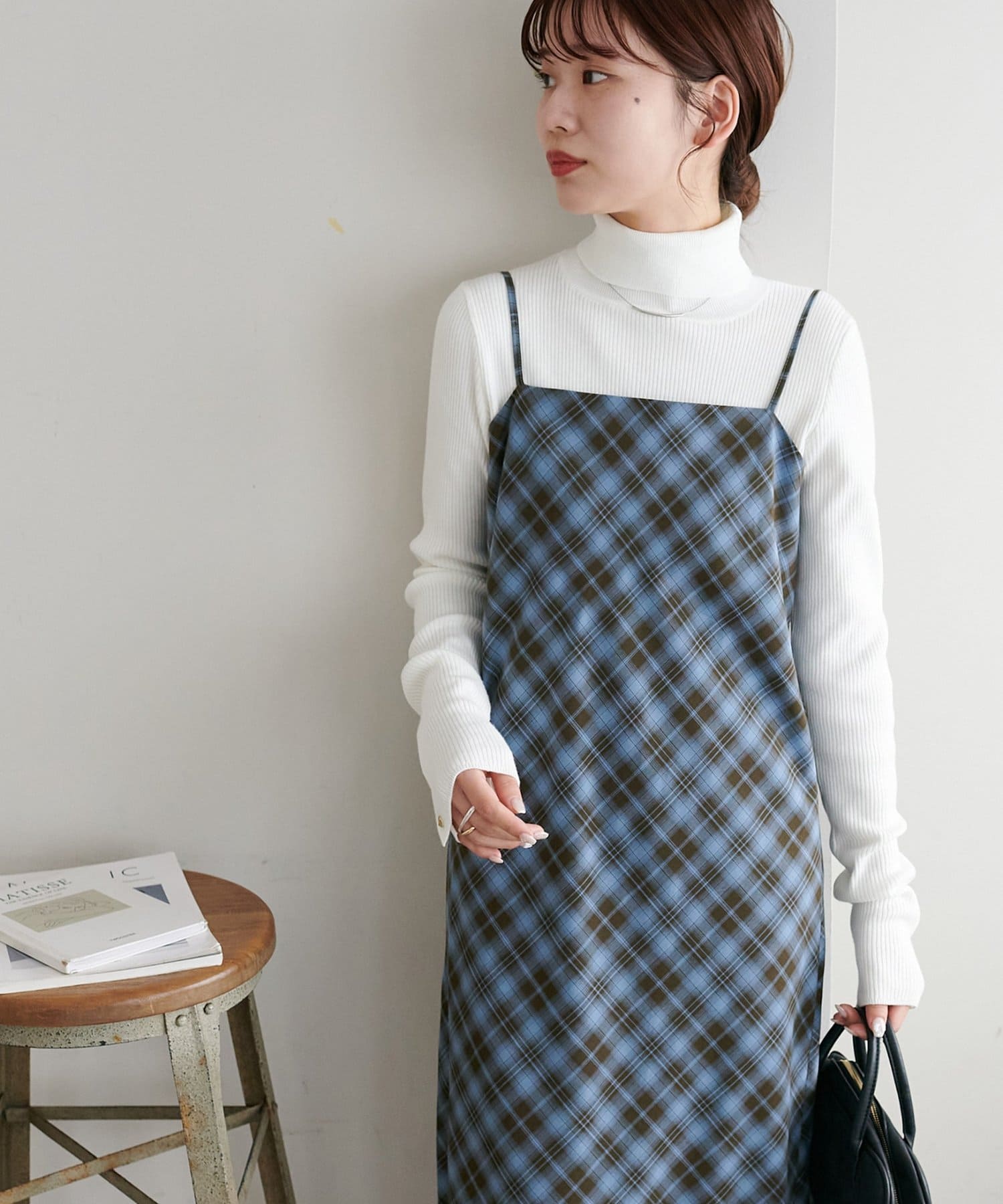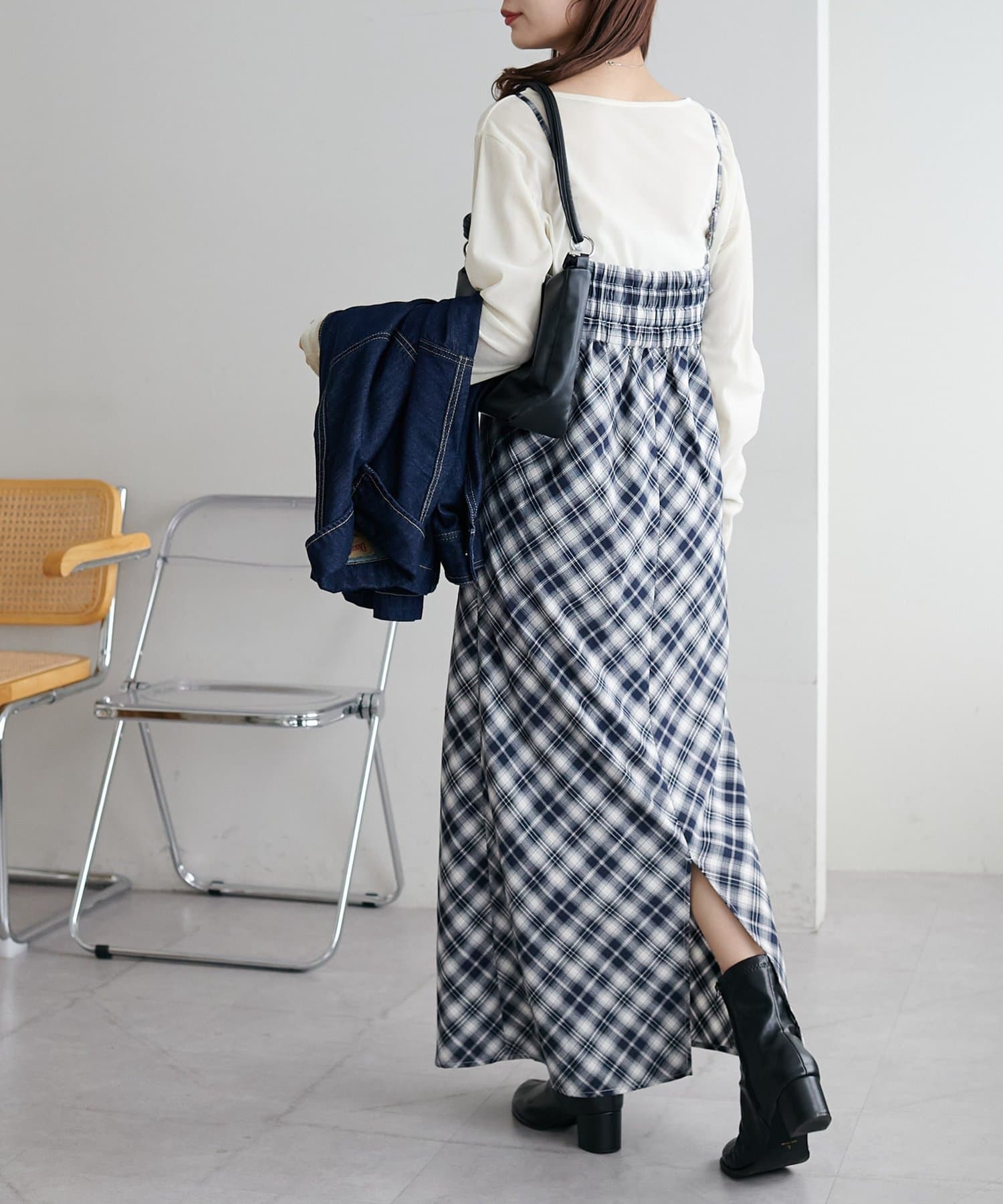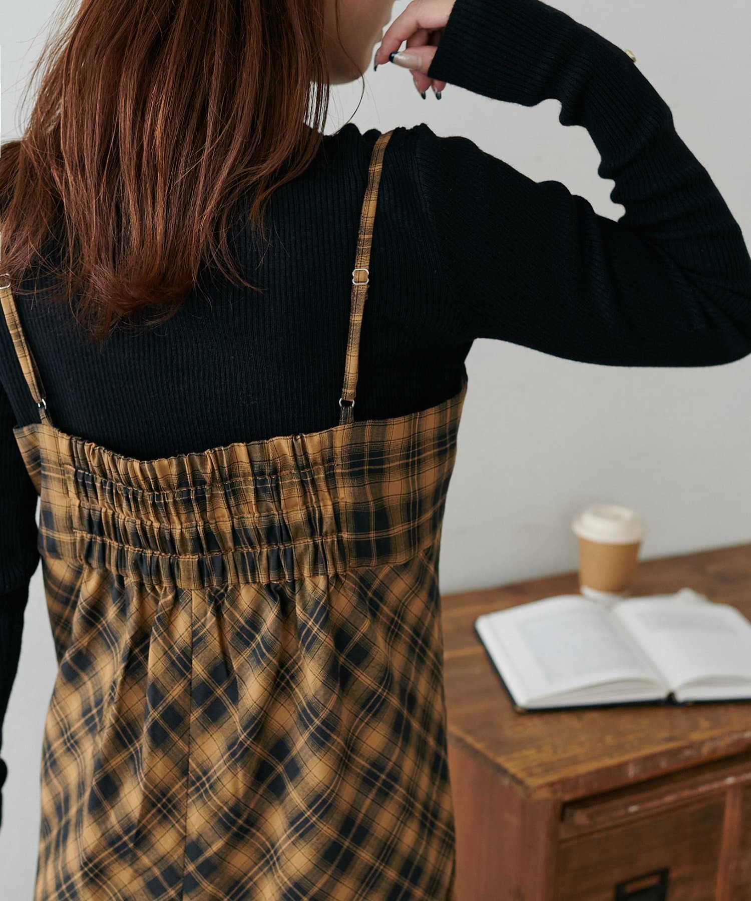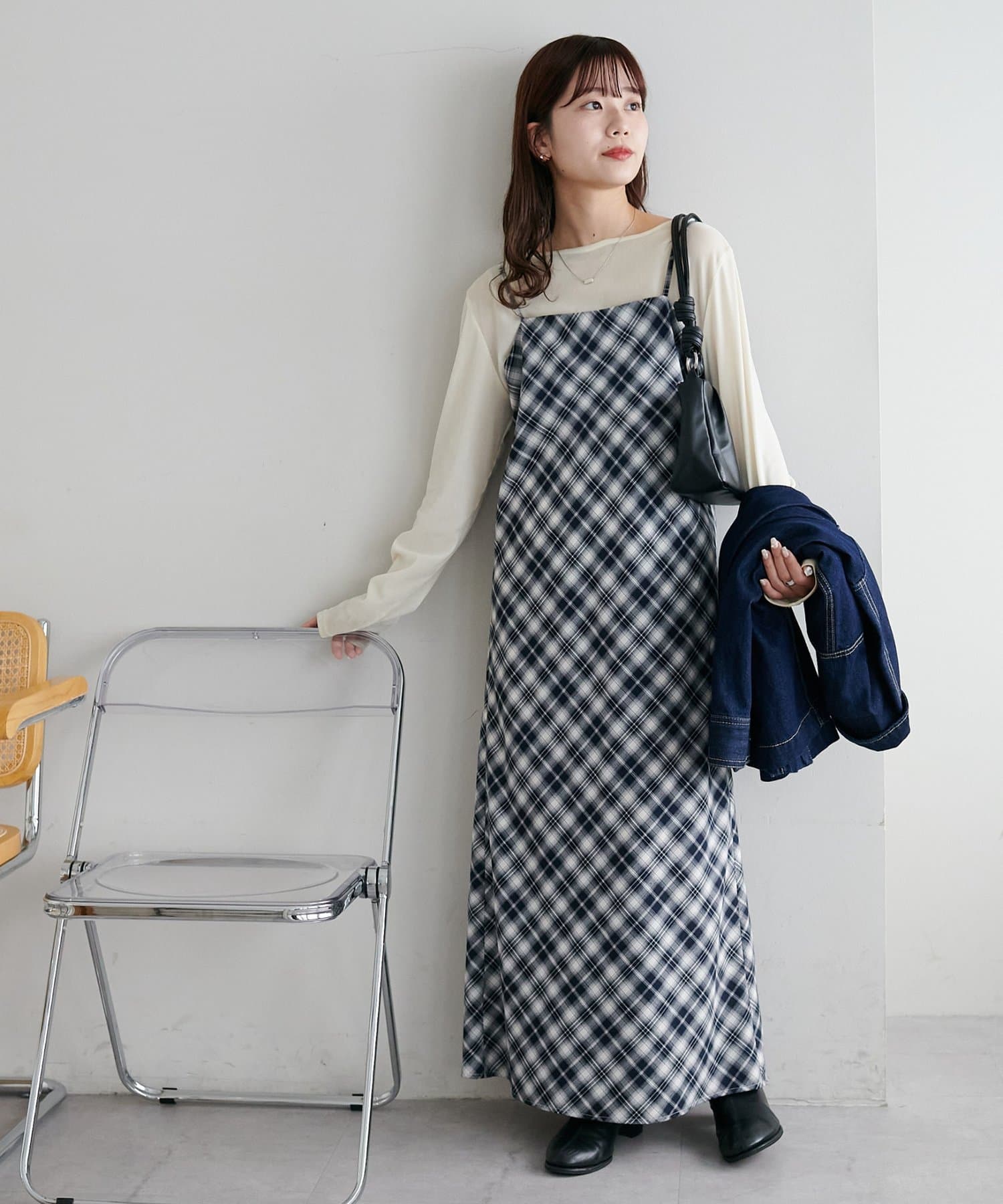 【チェック柄が映える!/着回し万能/WEB限定】オンブレチェックキャミワンピース