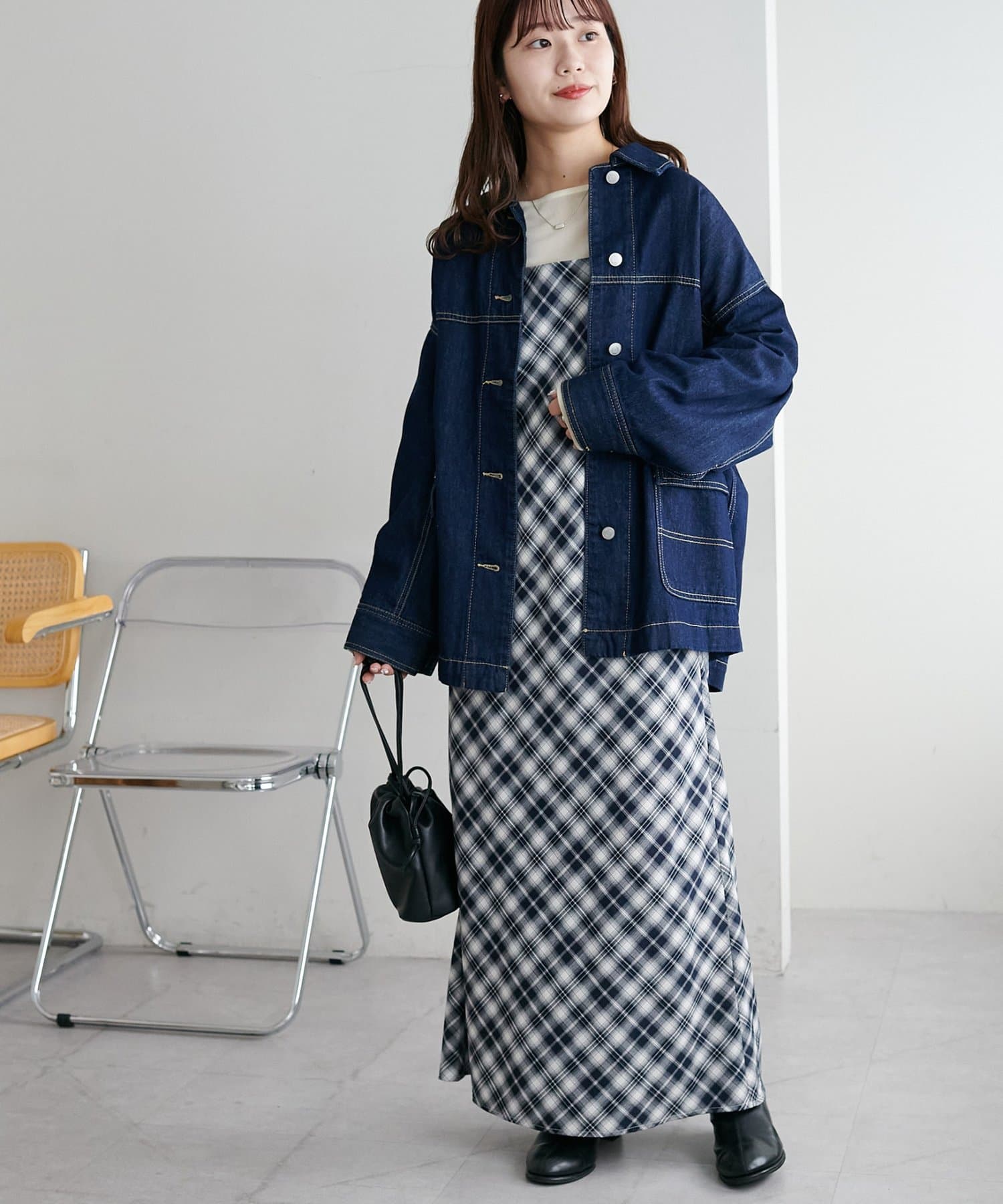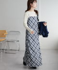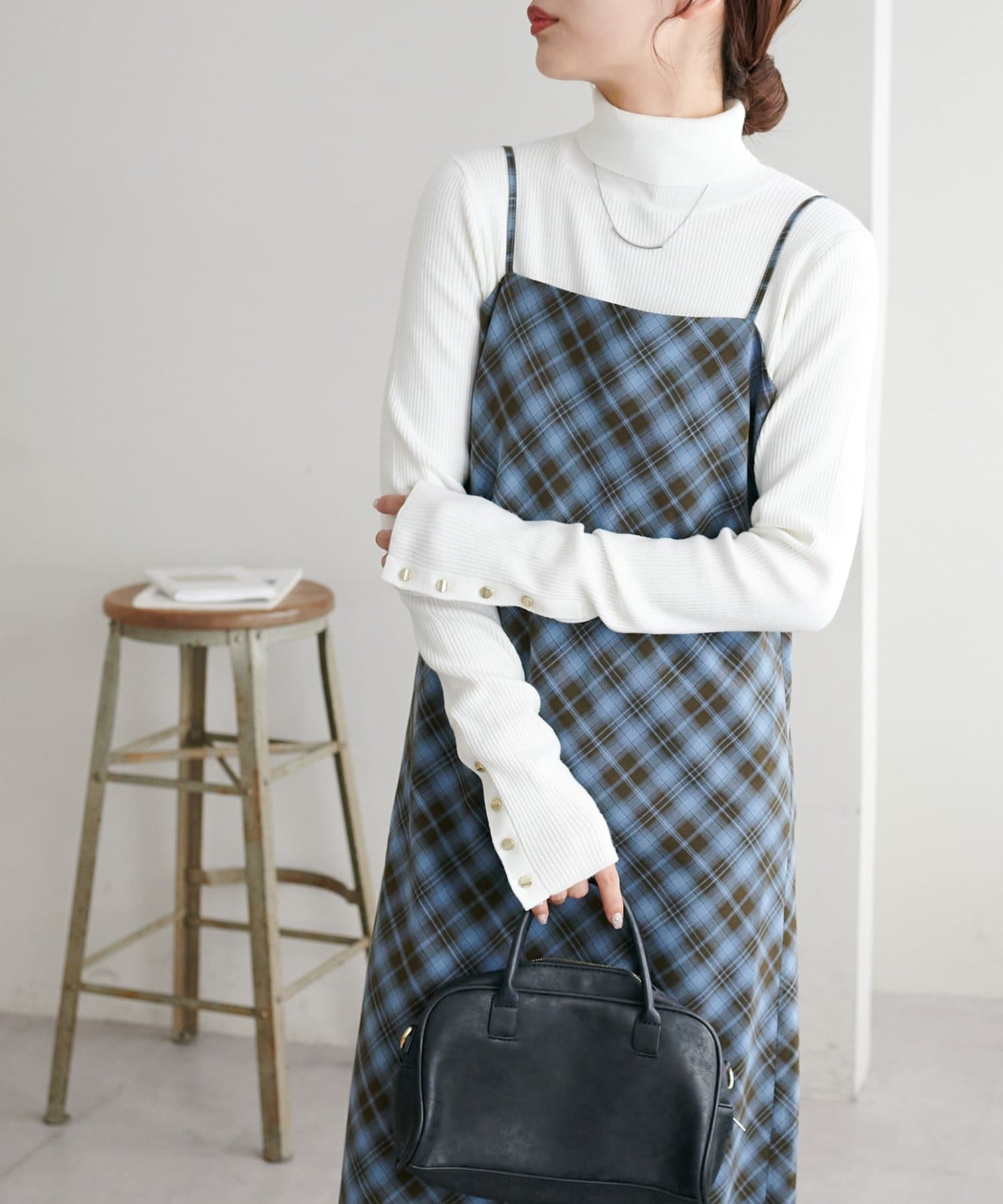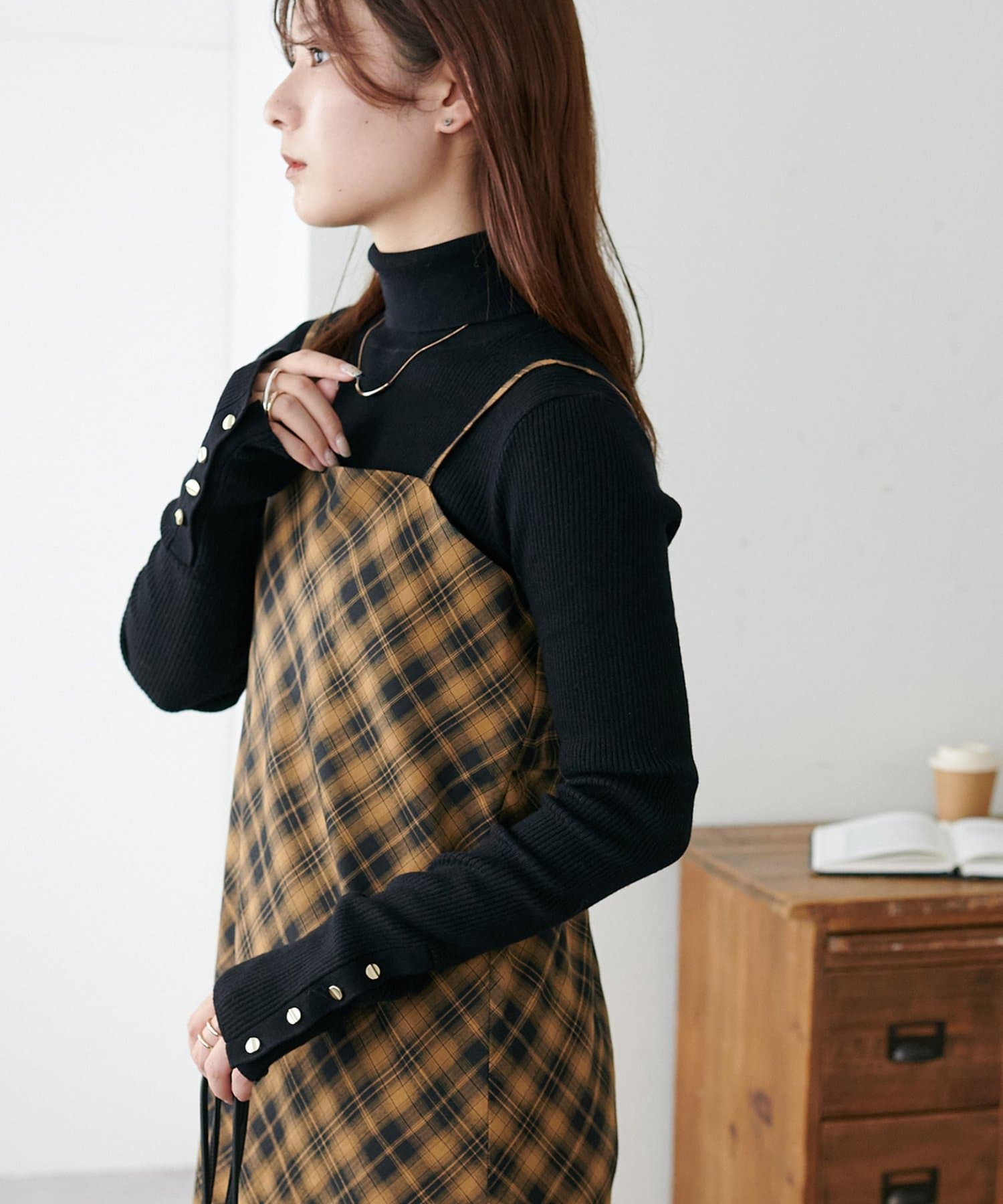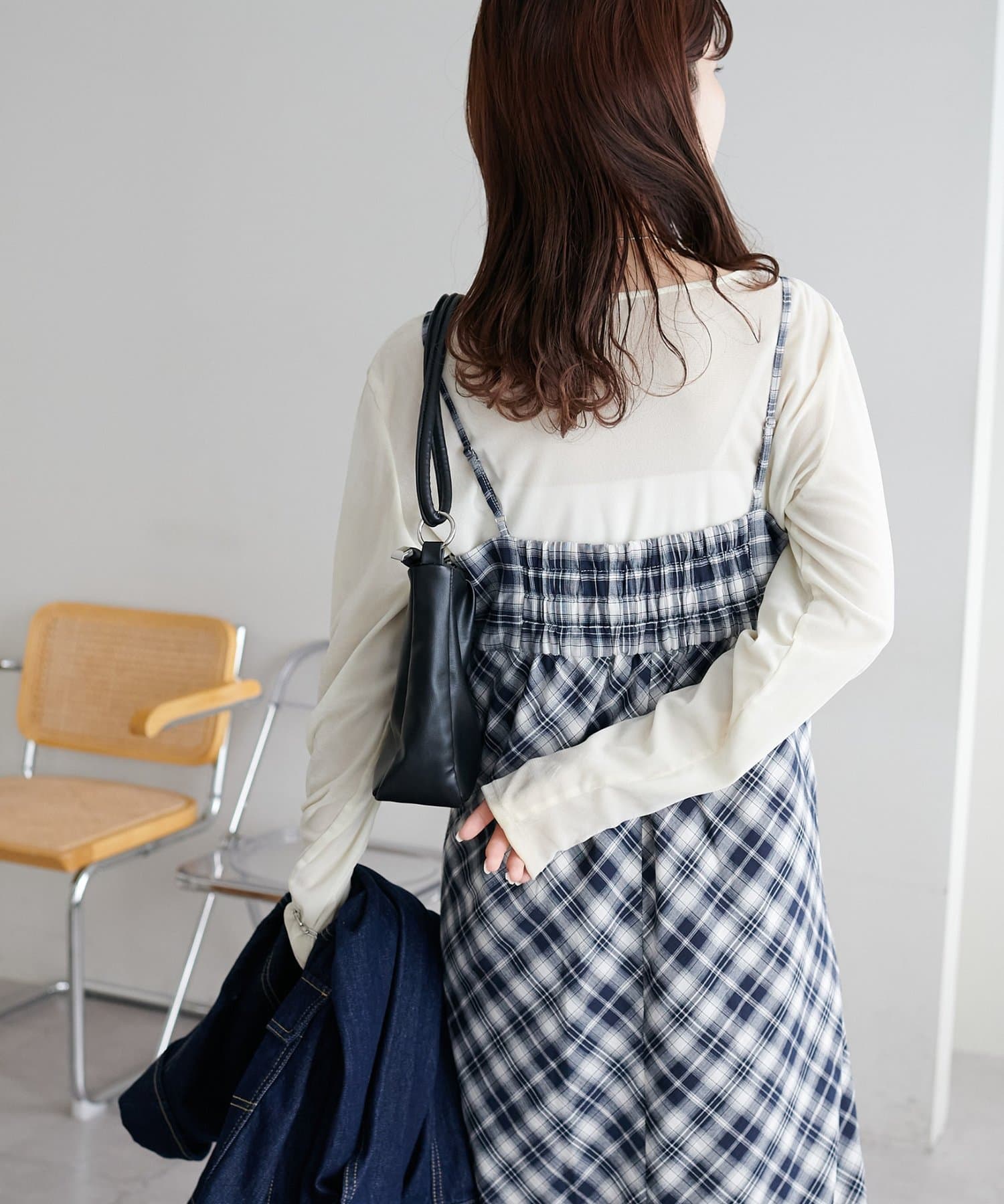 【チェック柄が映える!/着回し万能/WEB限定】オンブレチェックキャミワンピース
