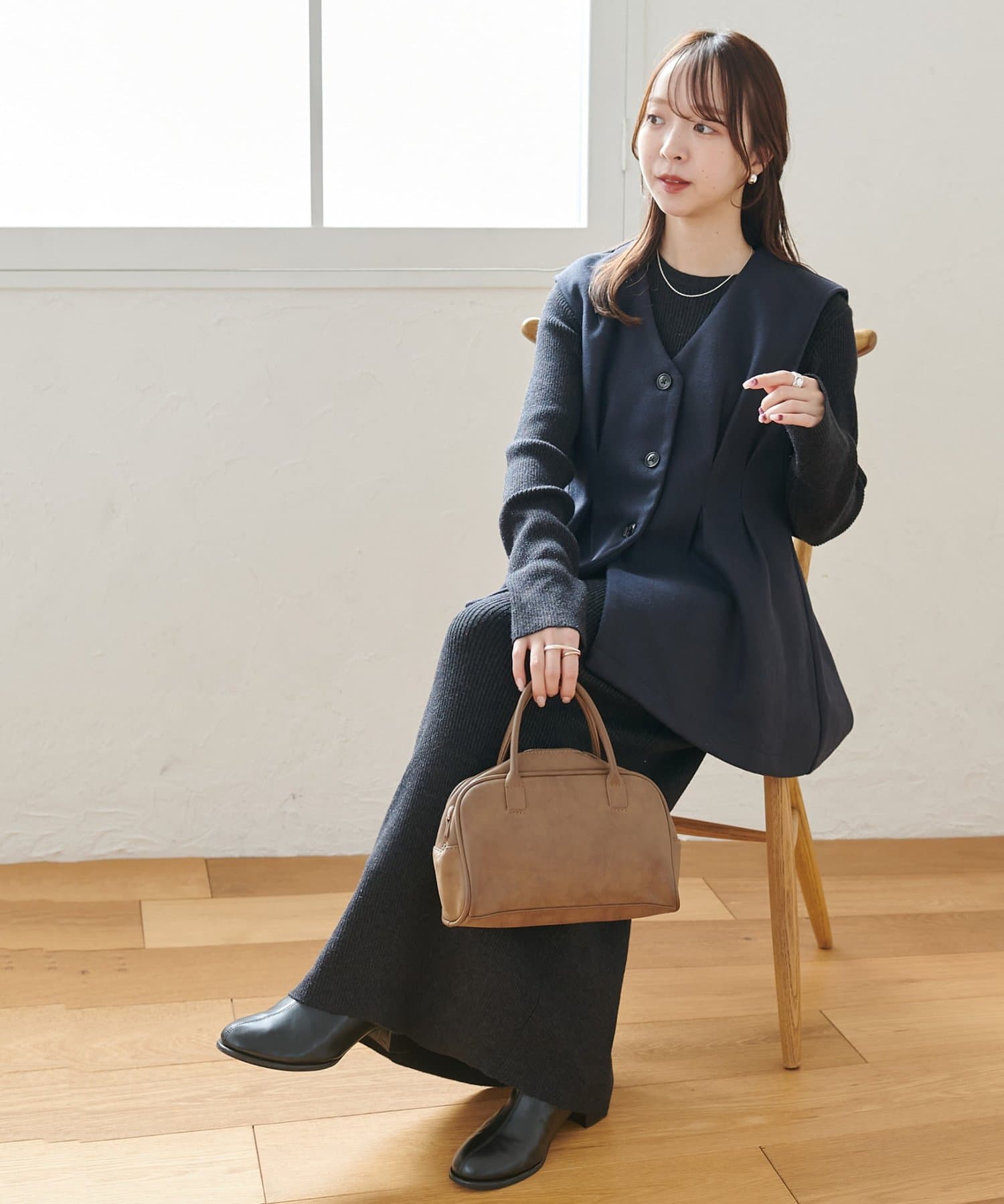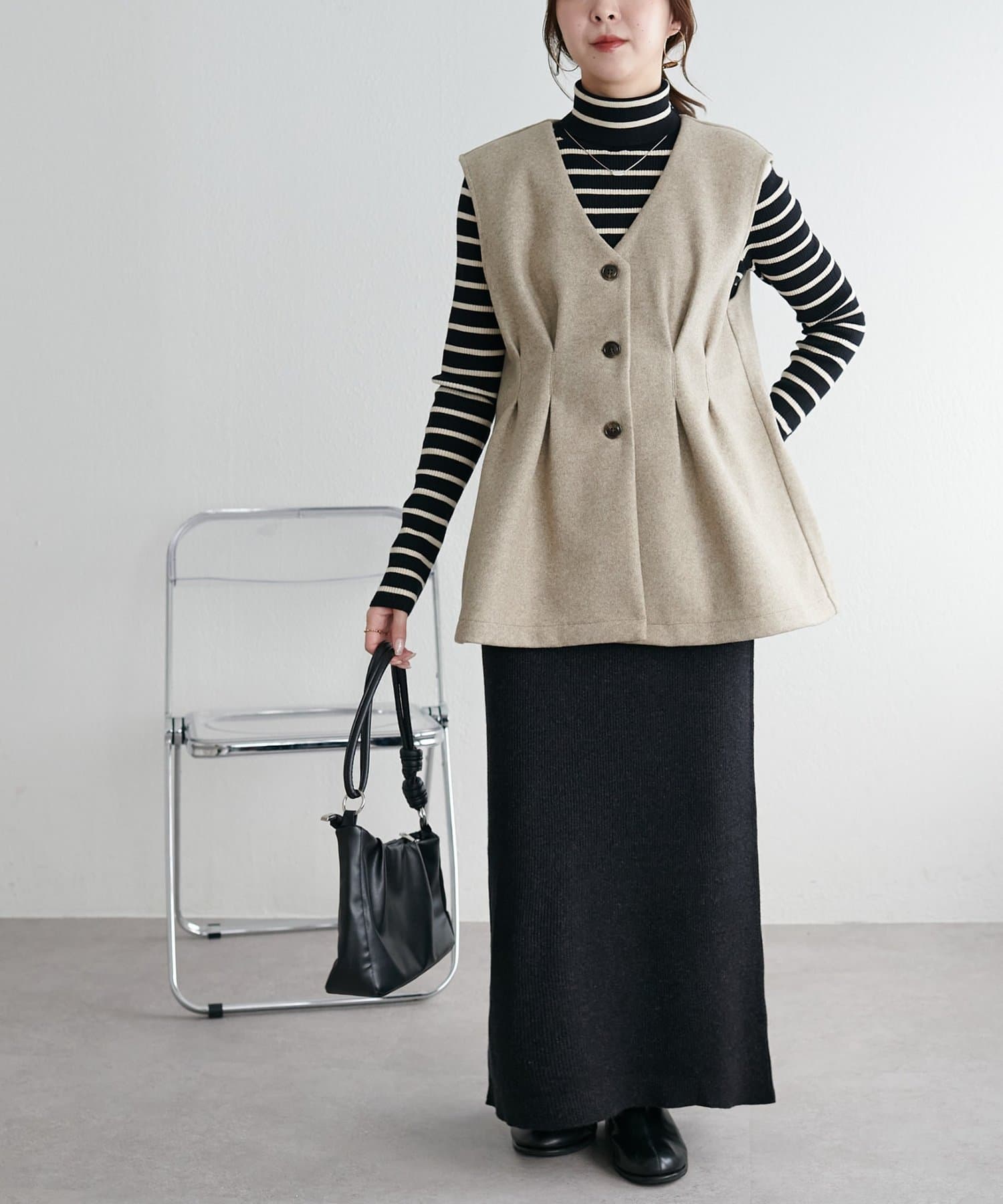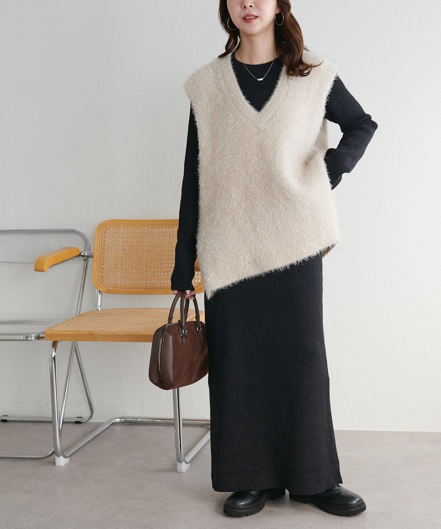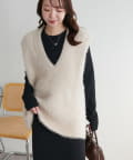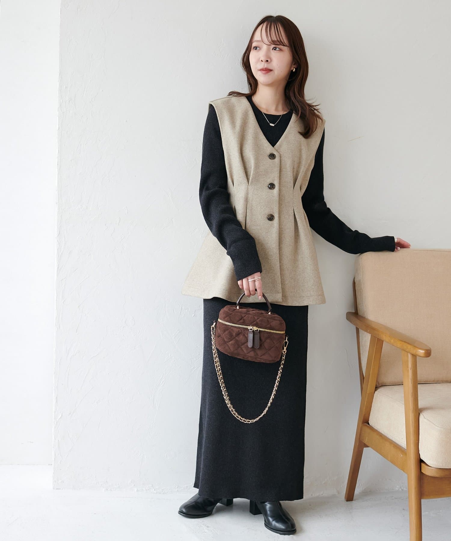 ジレを外せばシンプルなニットセットアップとして、ジレ単体をデニムやワンピースに重ねて着回すのもおすすめ◎