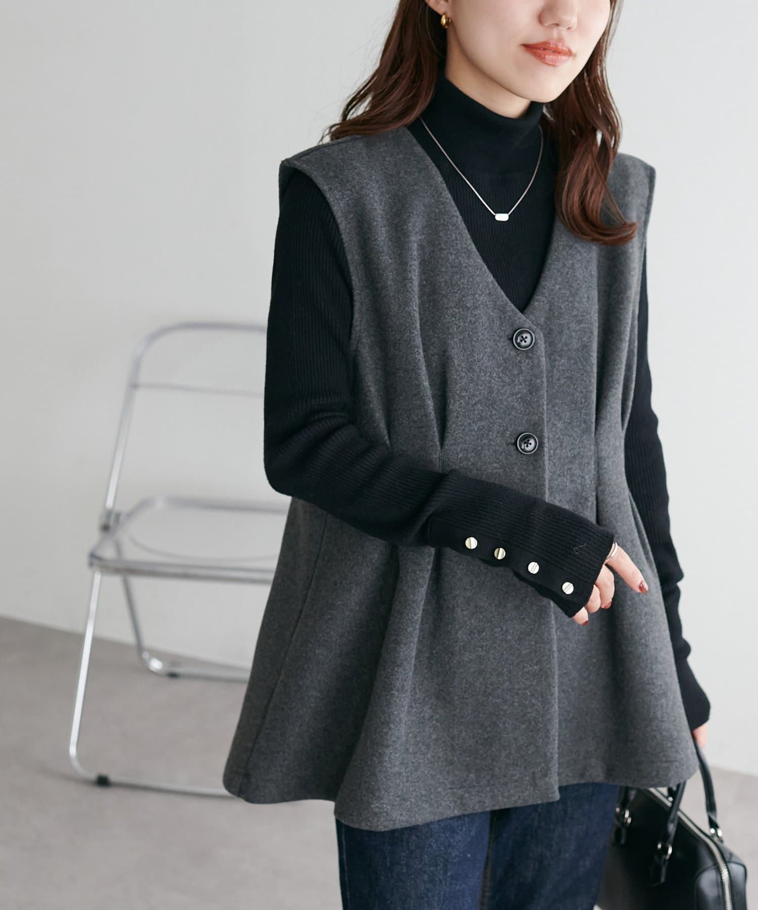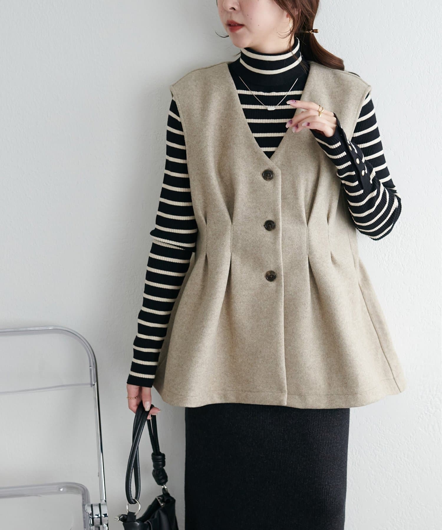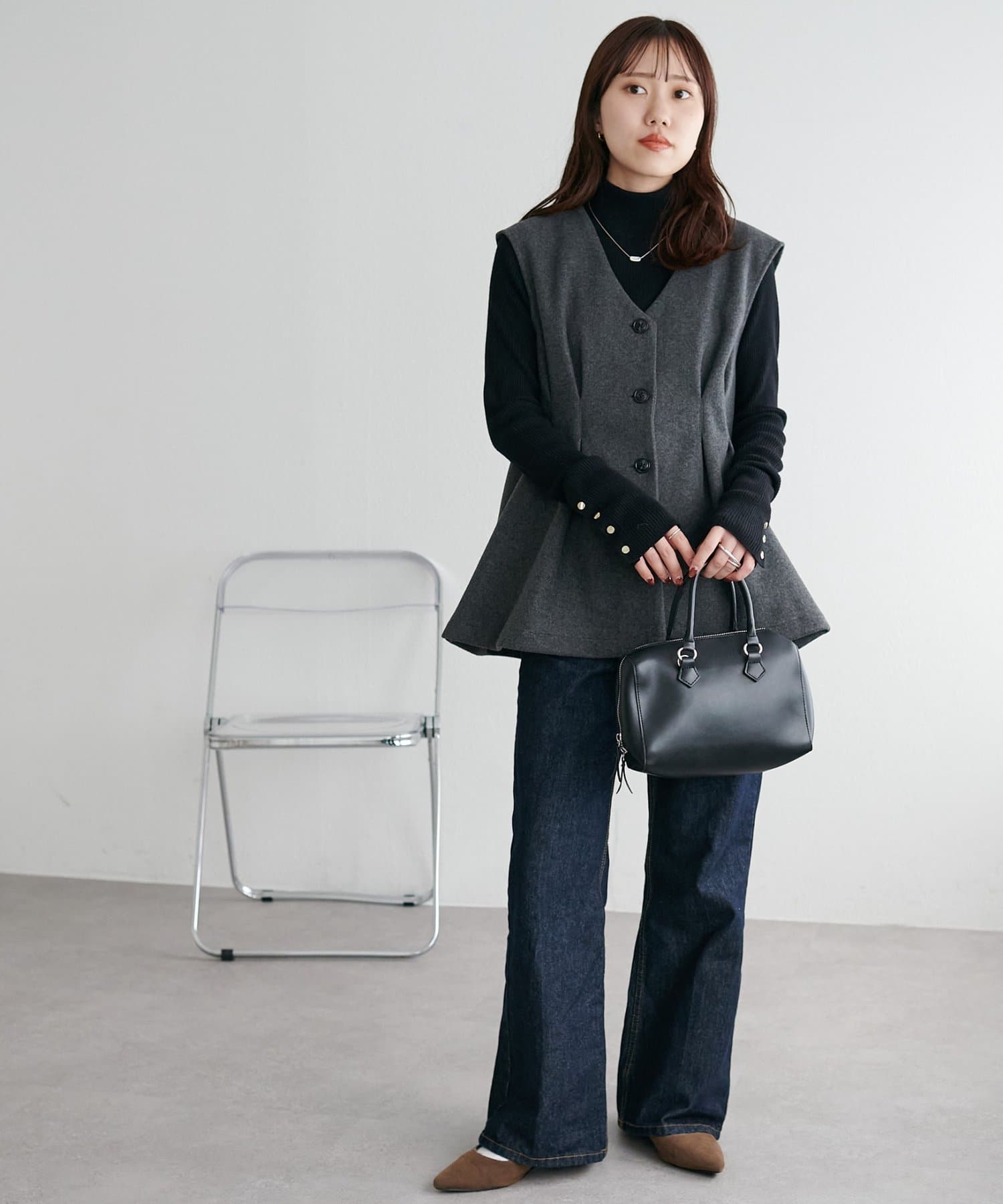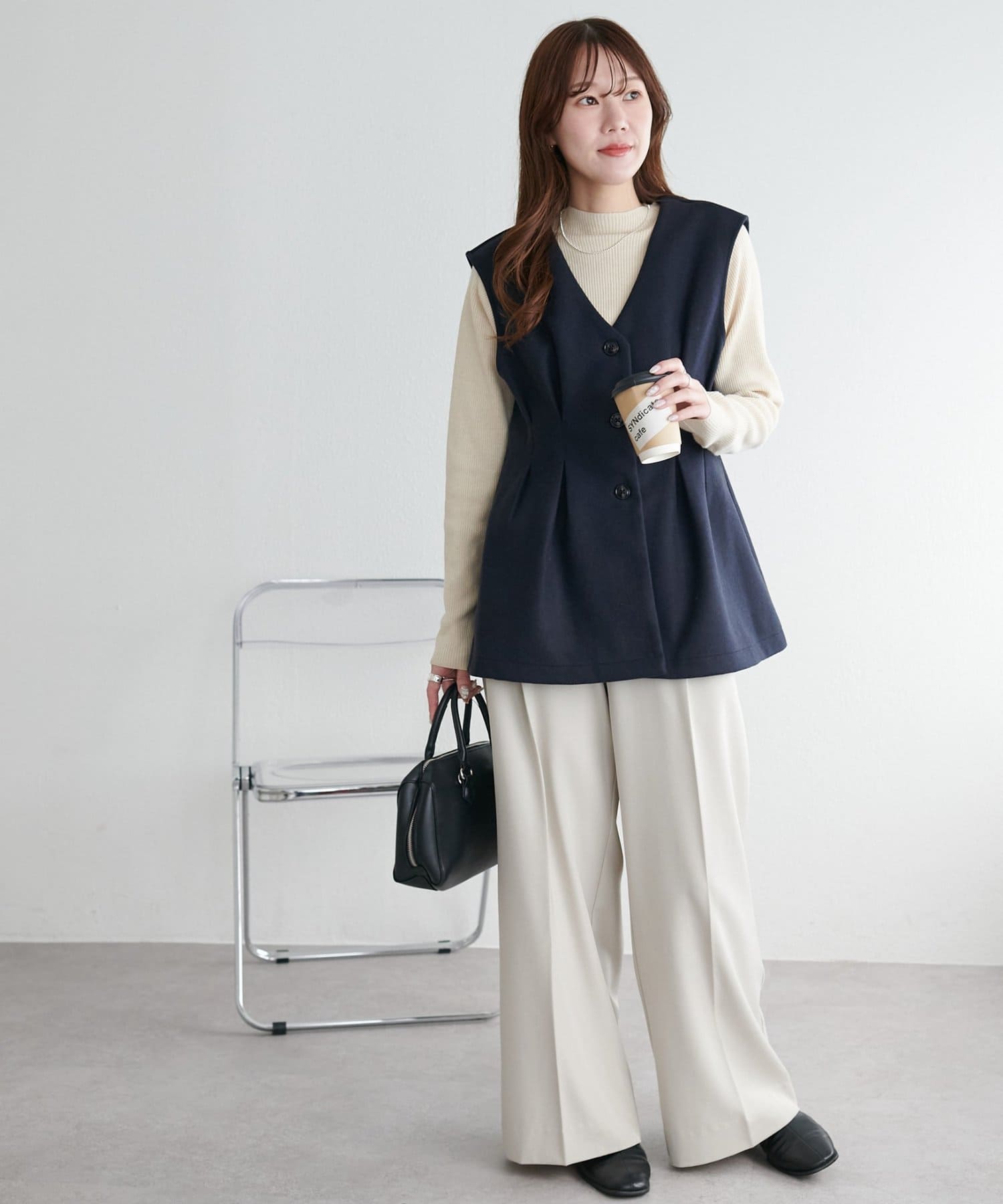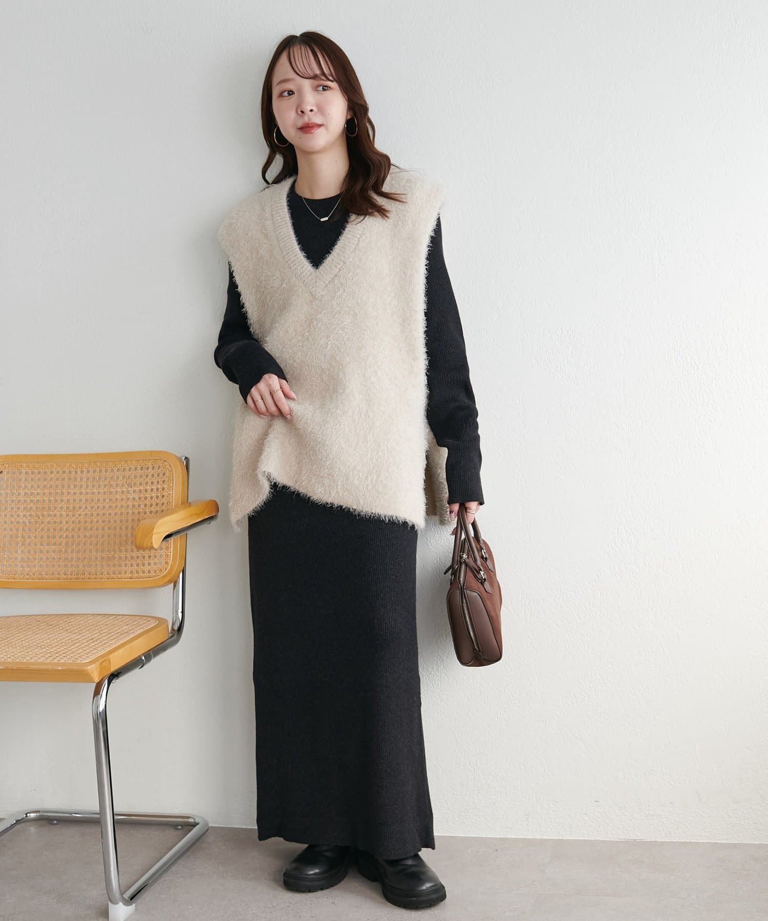 ジレを外せばシンプルなニットセットアップとして、ジレ単体をデニムやワンピースに重ねて着回すのもおすすめ◎