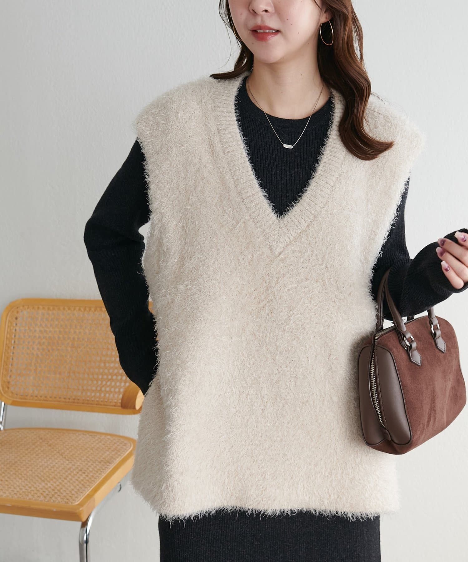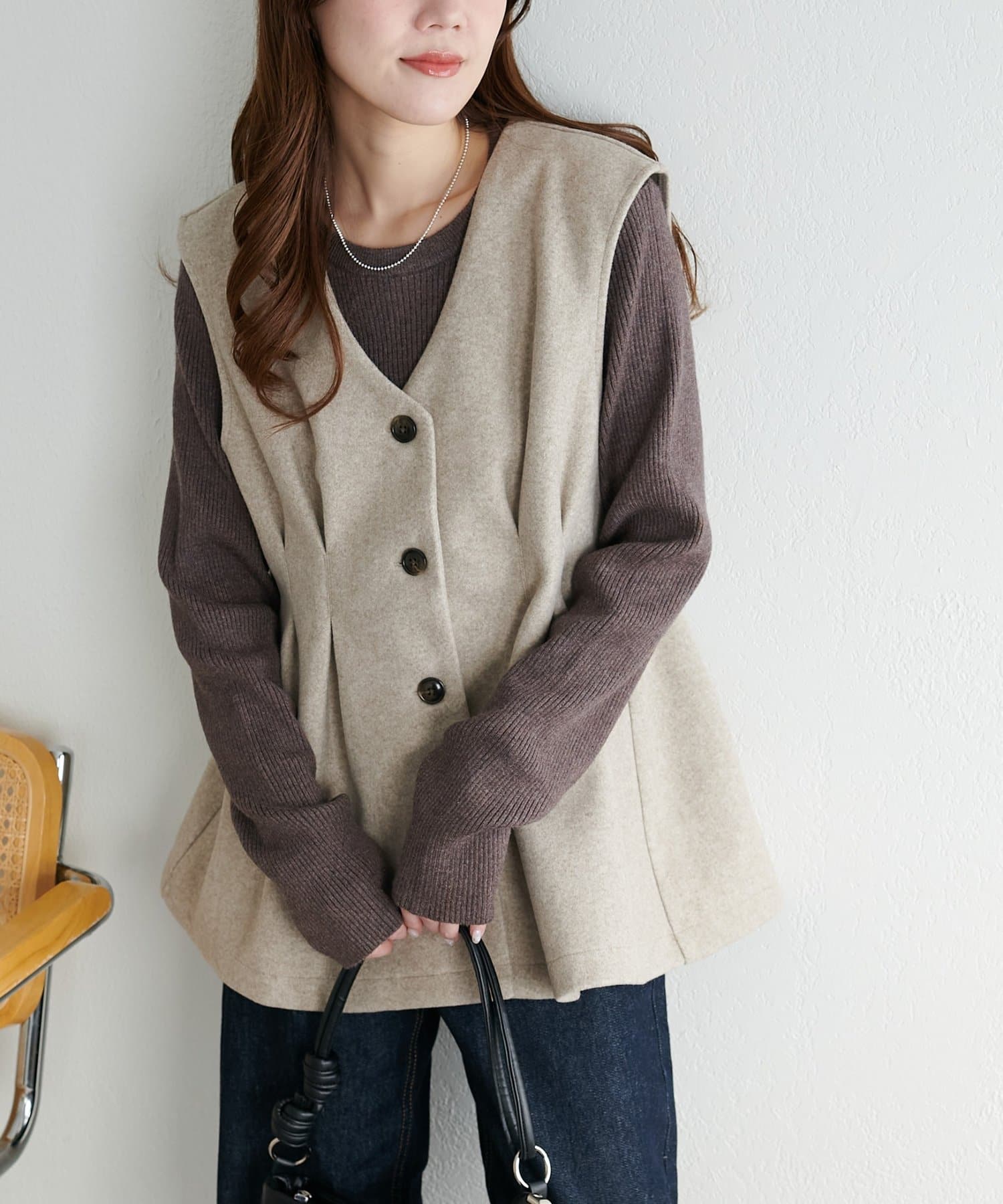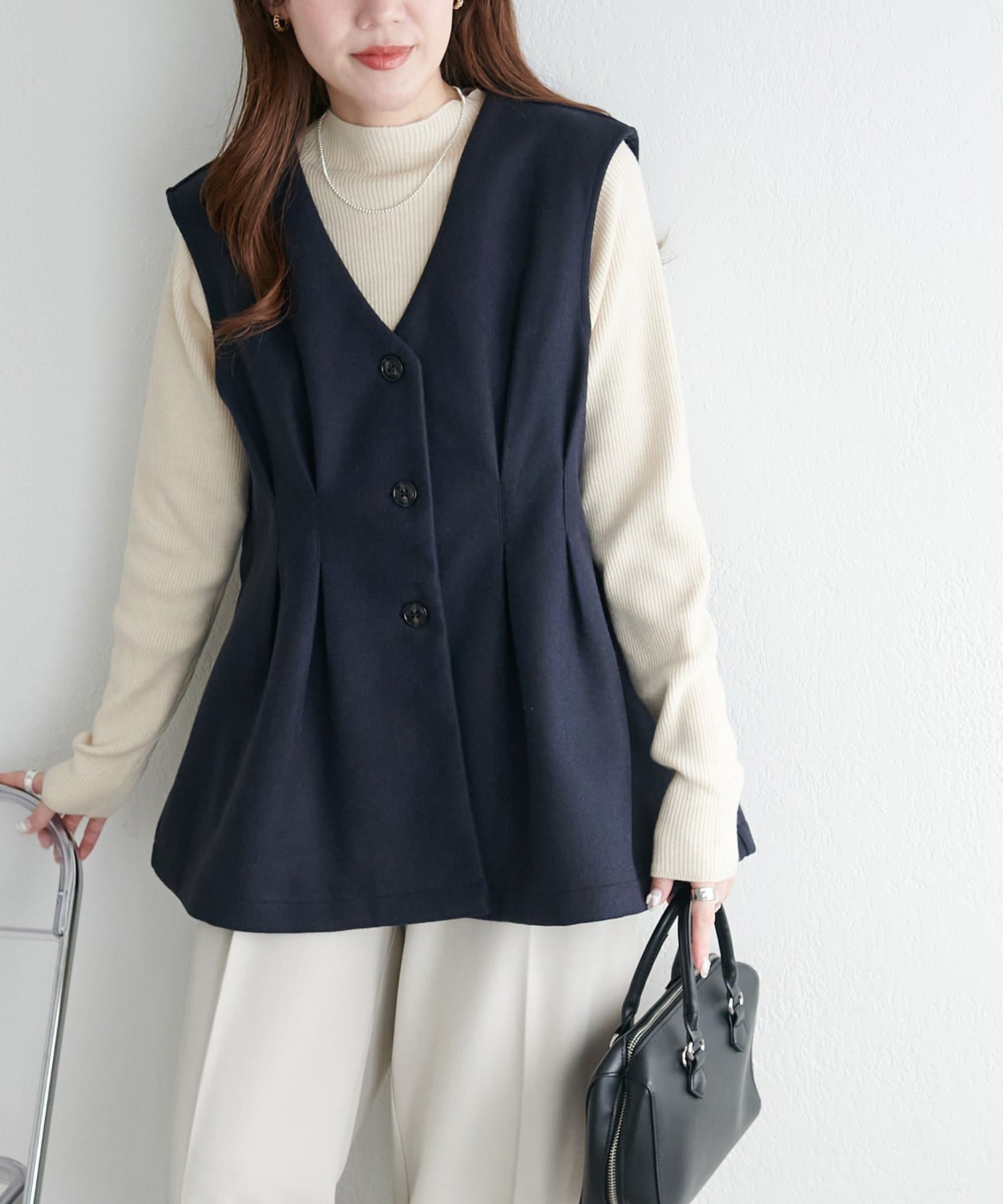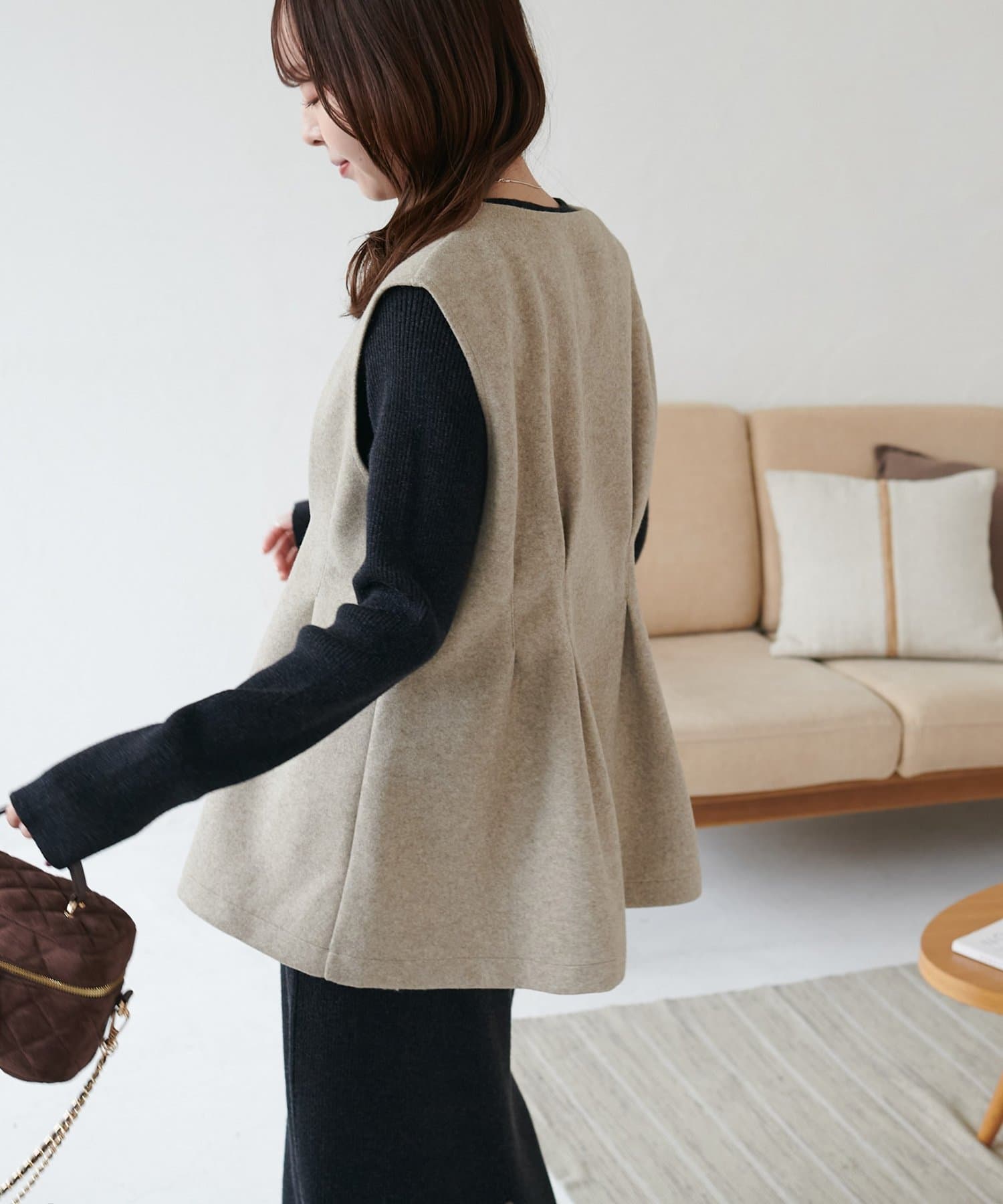 ジレを外せばシンプルなニットセットアップとして、ジレ単体をデニムやワンピースに重ねて着回すのもおすすめ◎