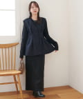 149cmスタッフ(PSサイズ着用):ジレはヒップまでしっかり隠れる丈感で、腰まわりをさりげなくカバーしてくれます。スカートにはバックスリットが入っているので足捌きもしやすいです◎