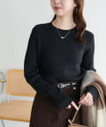 シンプルで着回しやすいリブ編みのクルーネックニットプルオーバー。