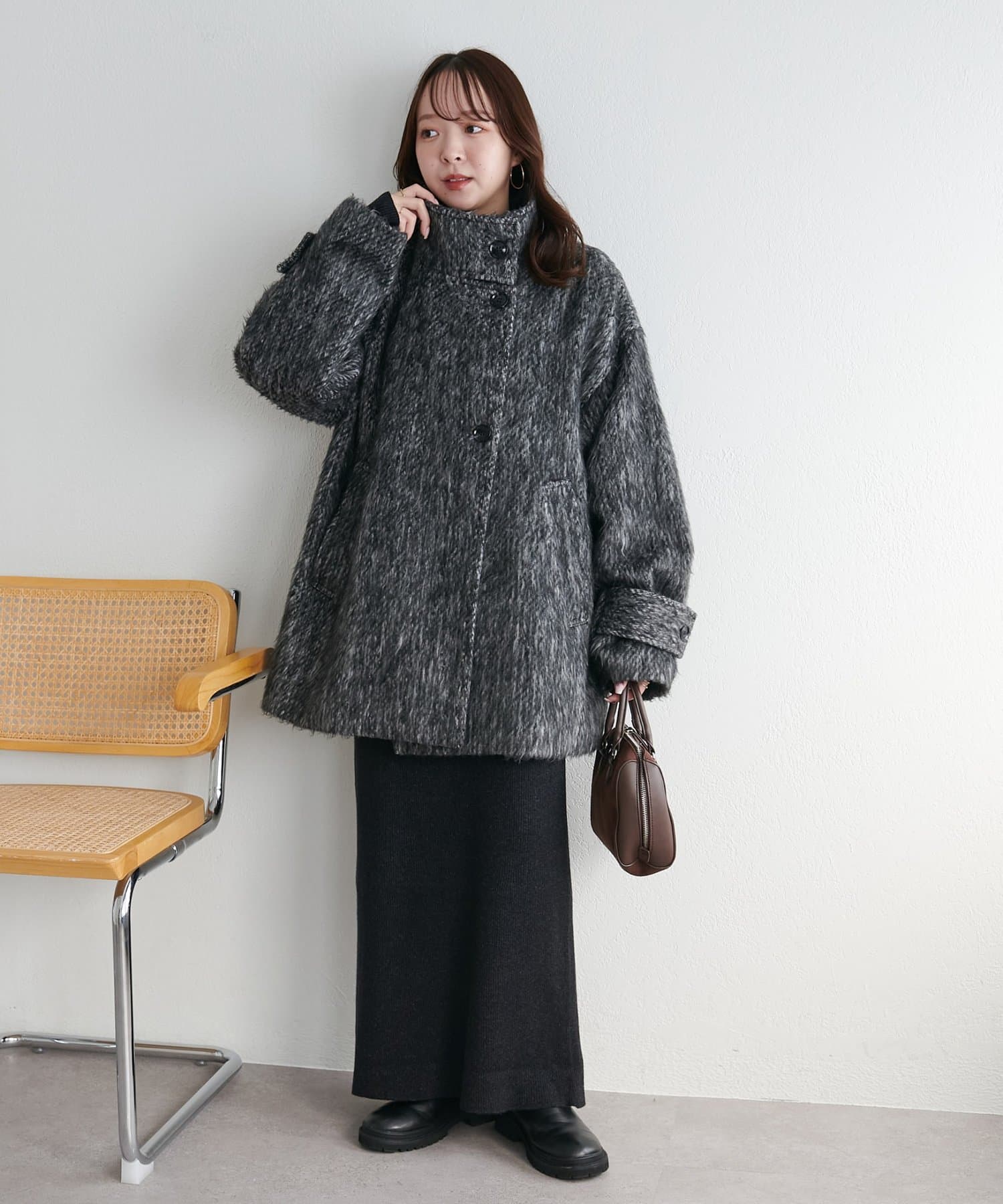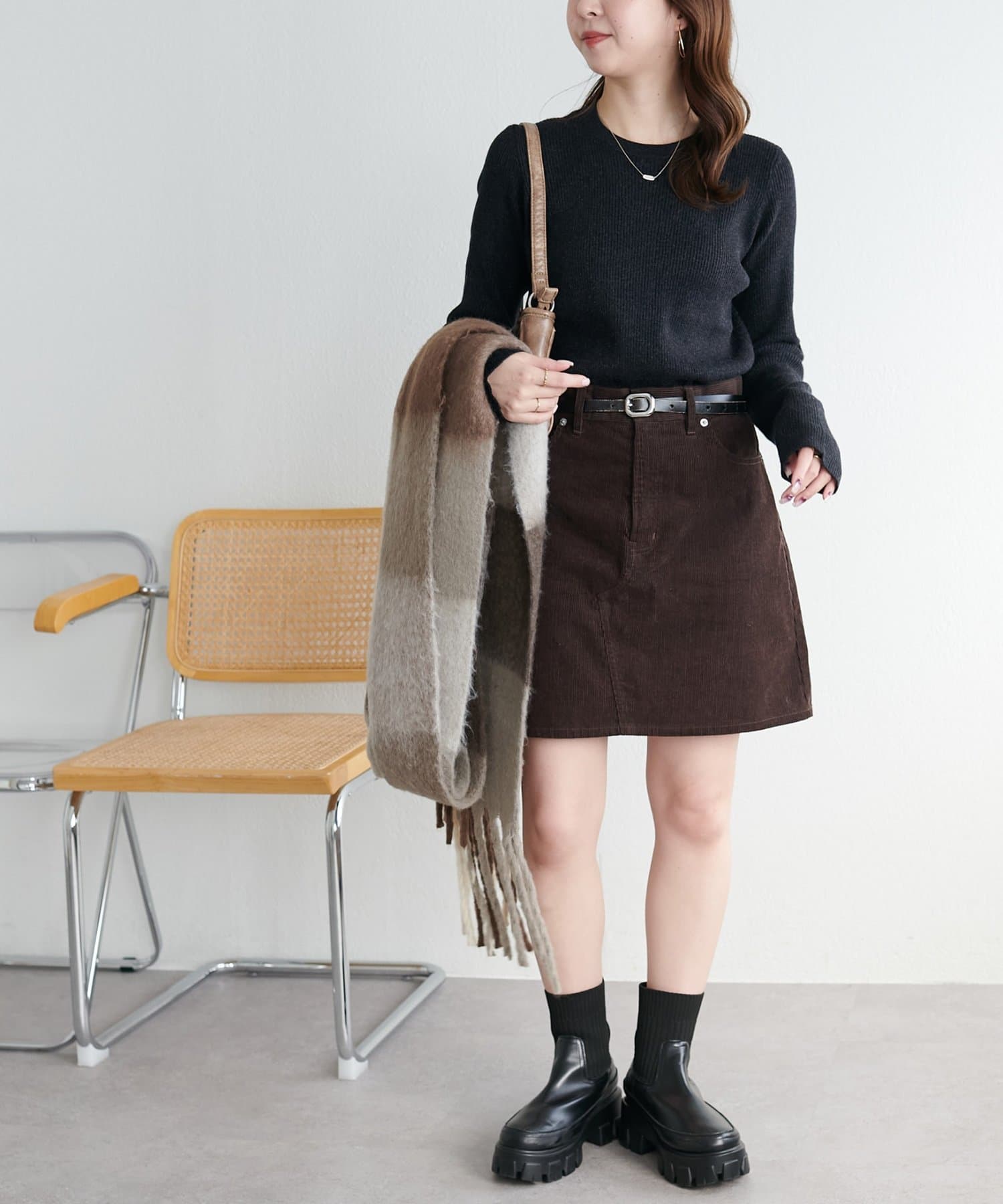 162cmスタッフ(Fサイズ着用):スカートは足首が見えるくらいの丈感で、ブーツとも相性◎それぞれ単品でも使いやすく、着回し力抜群のセットです!