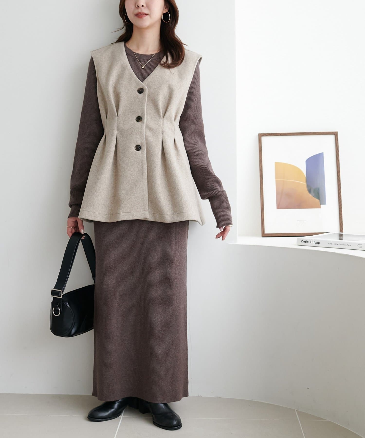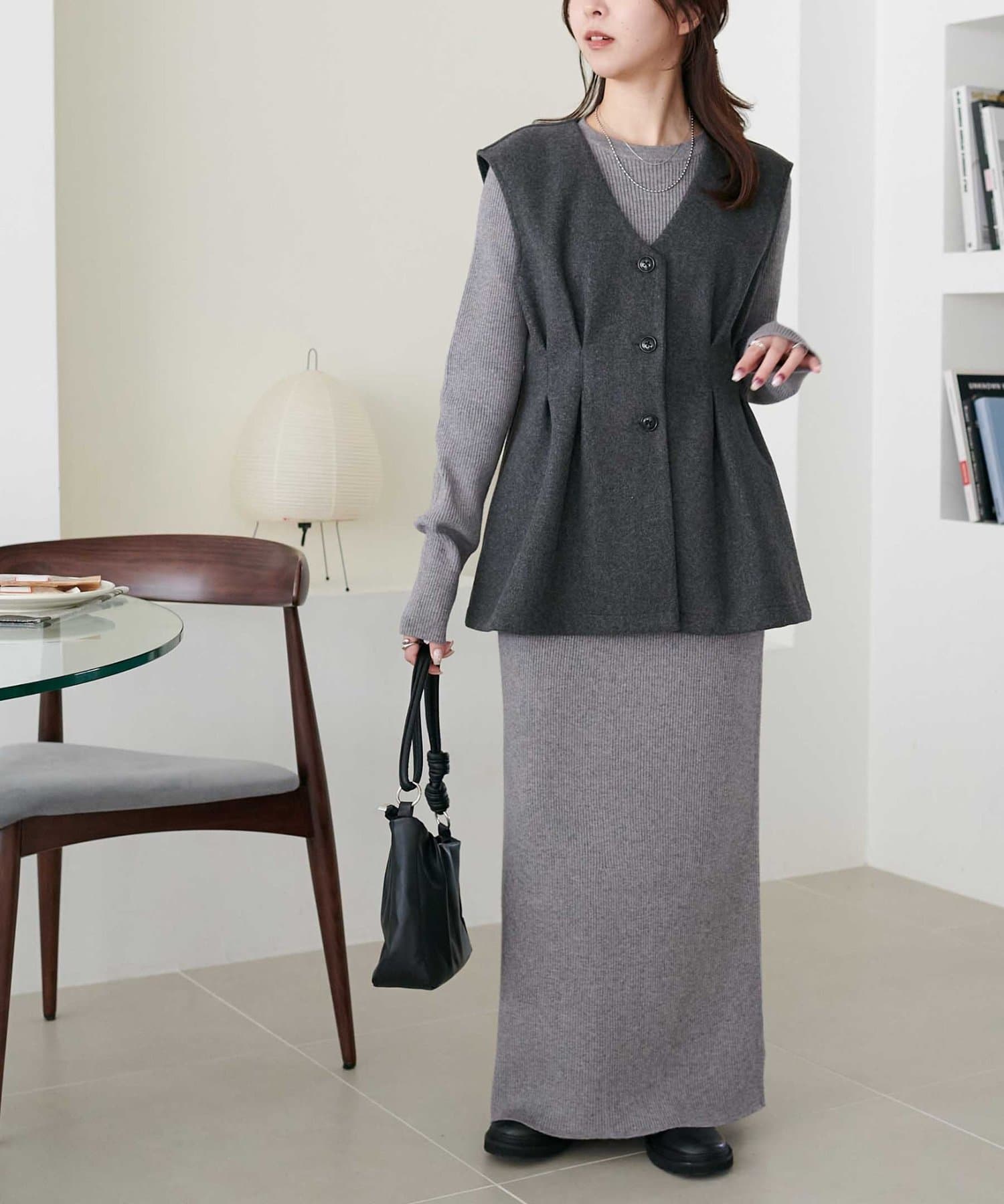 TOP > DISCOAT > レディース > ワンピース > ワンピース > 【サイズ展開あり/3点セット】ペプラムジレ付マルチウェイセットアップ