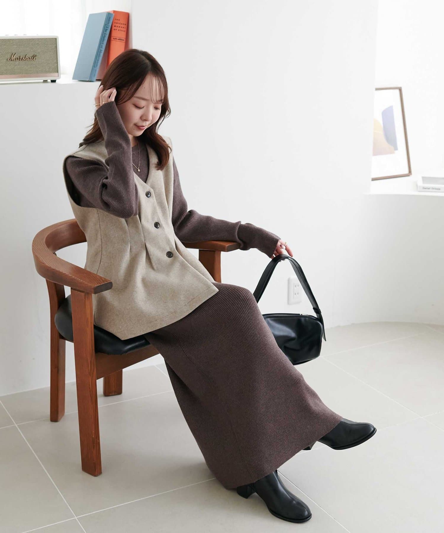 洗濯方法:トップス・スカート(手洗い可)、ジレ(ドライクリーニング)