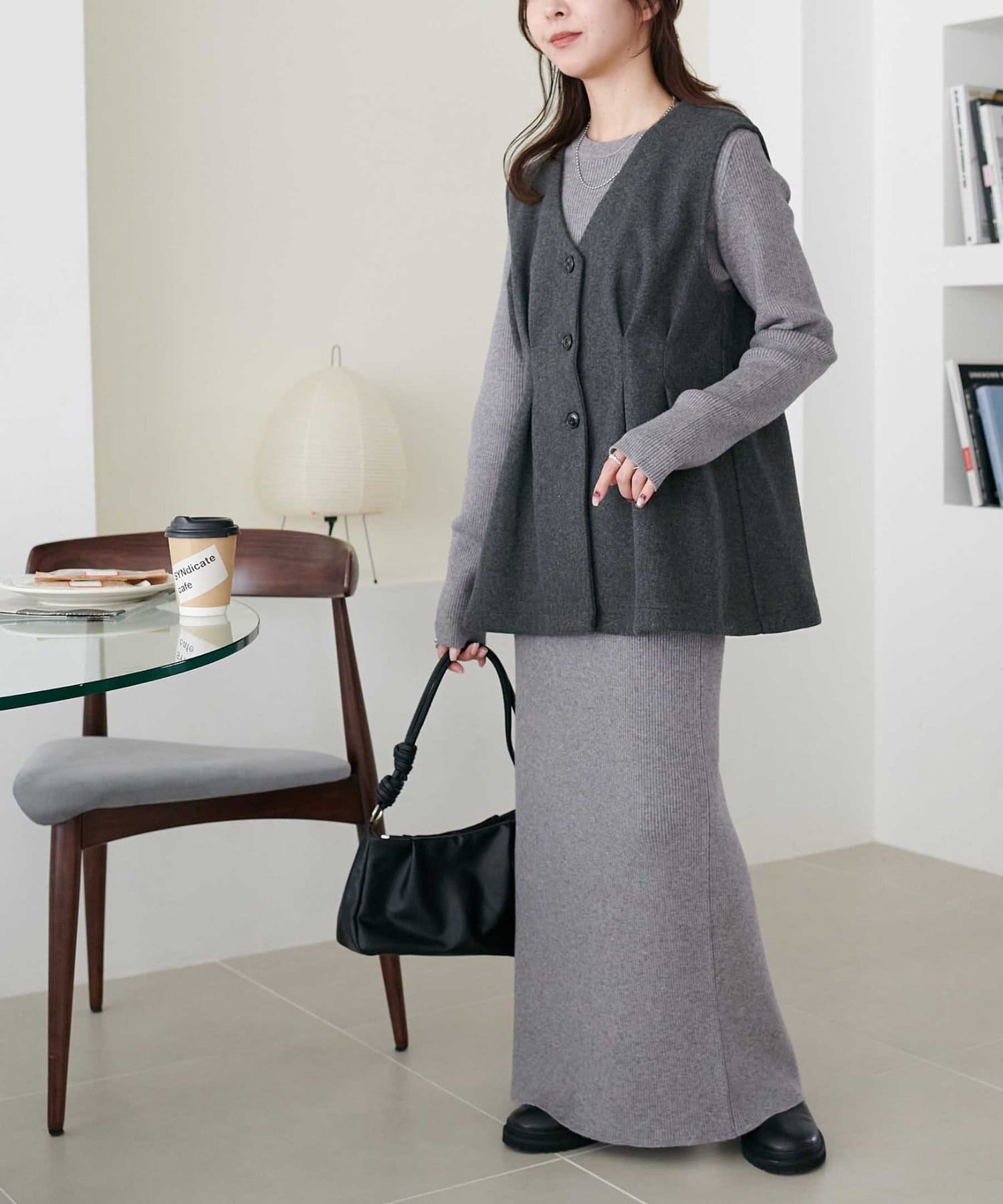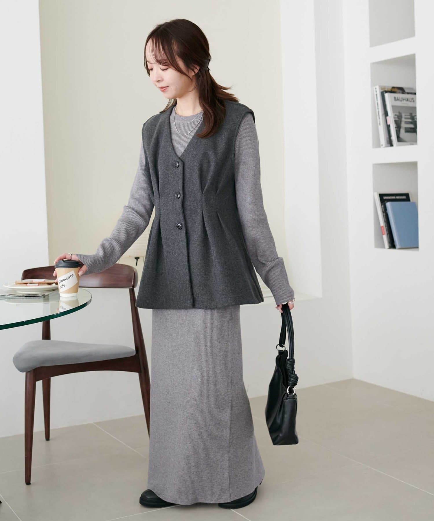 ※チャコールグレーとダークグレーですが、ジレのカラーは同じでワンピースの色のみ異なります。