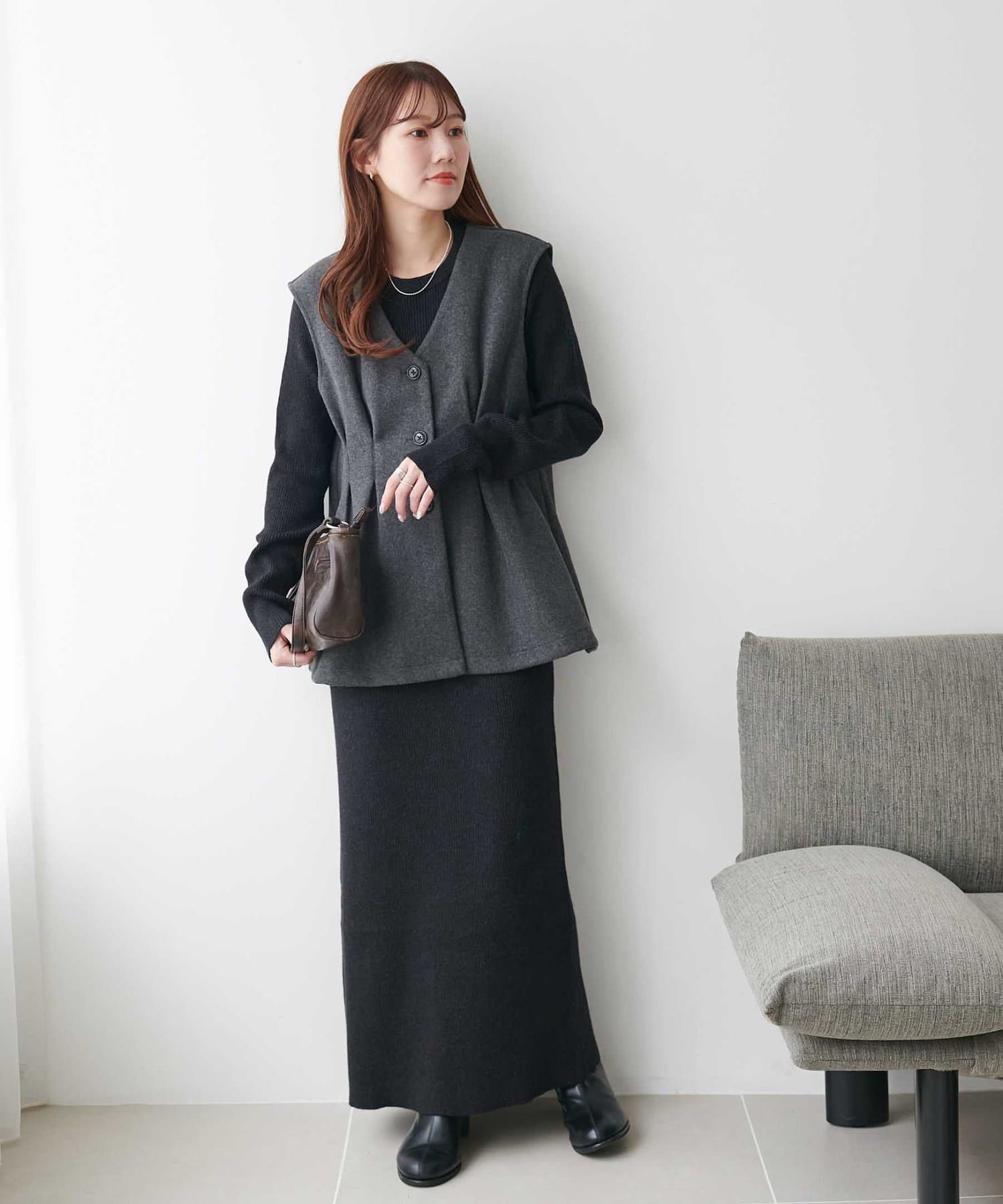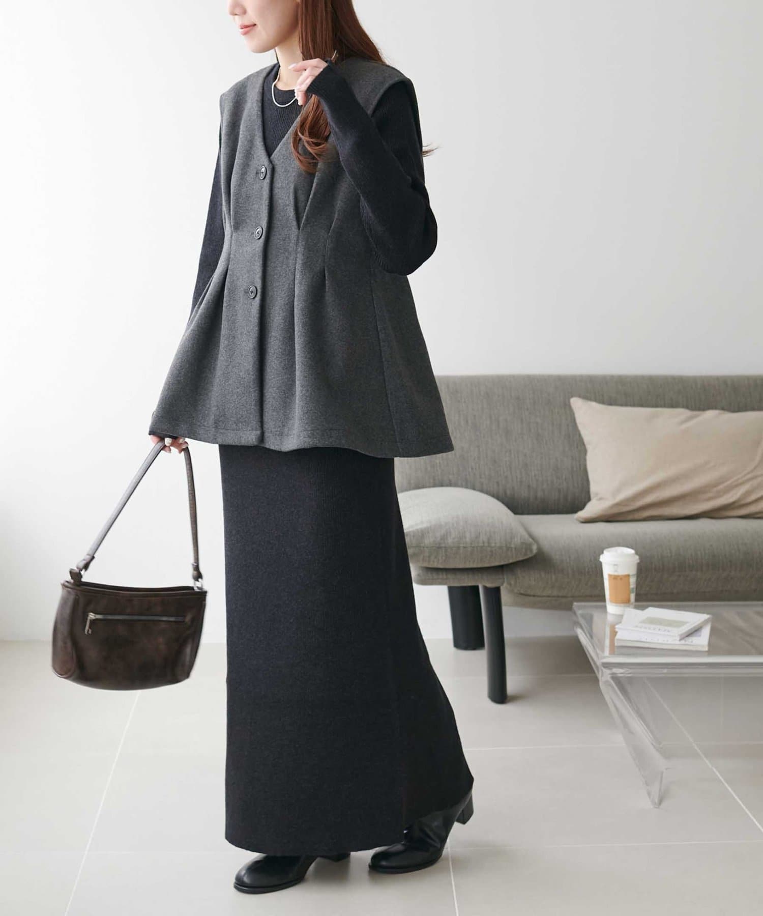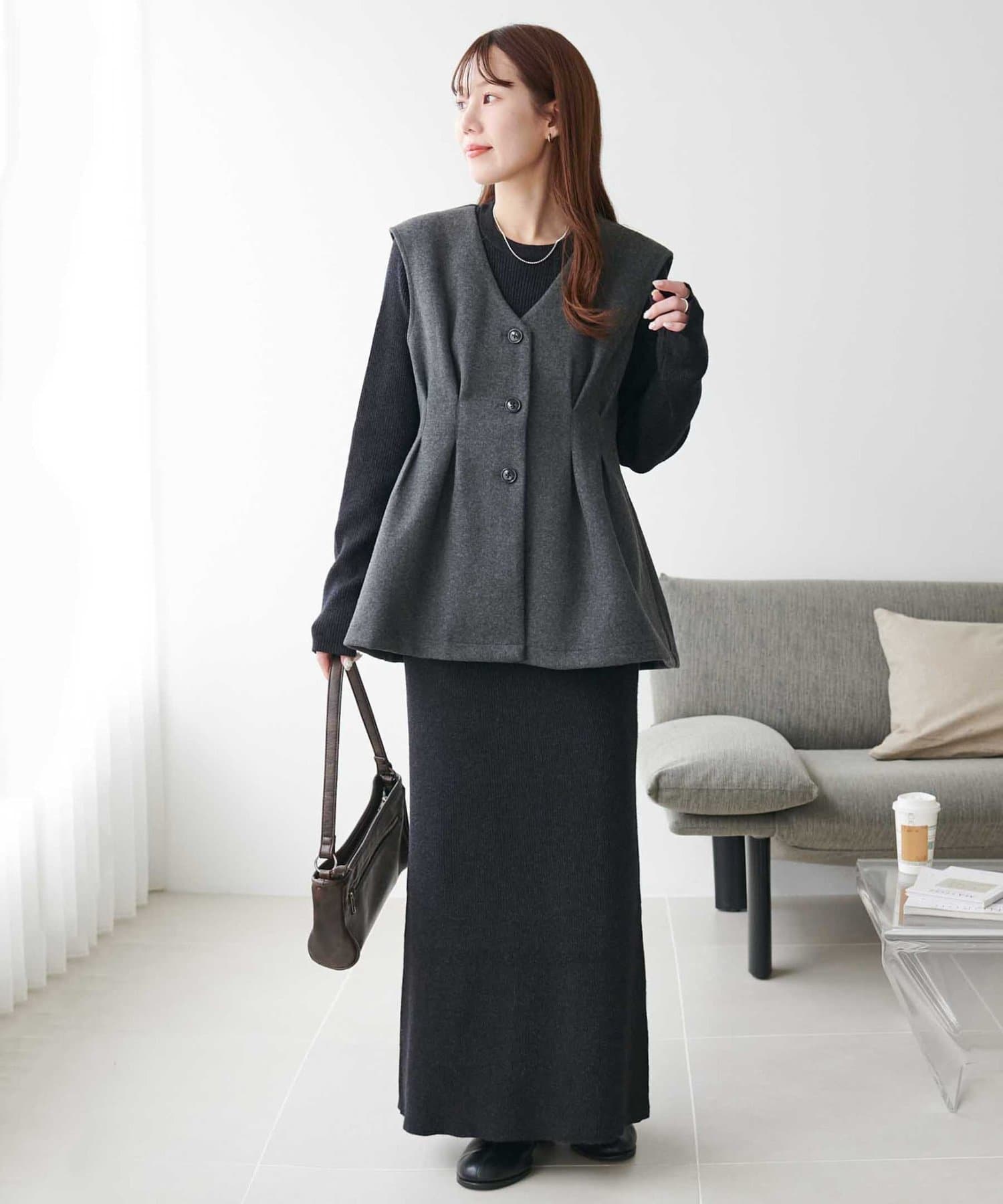 【サイズ展開あり/3点セット】ペプラムジレ付マルチウェイセットアップ