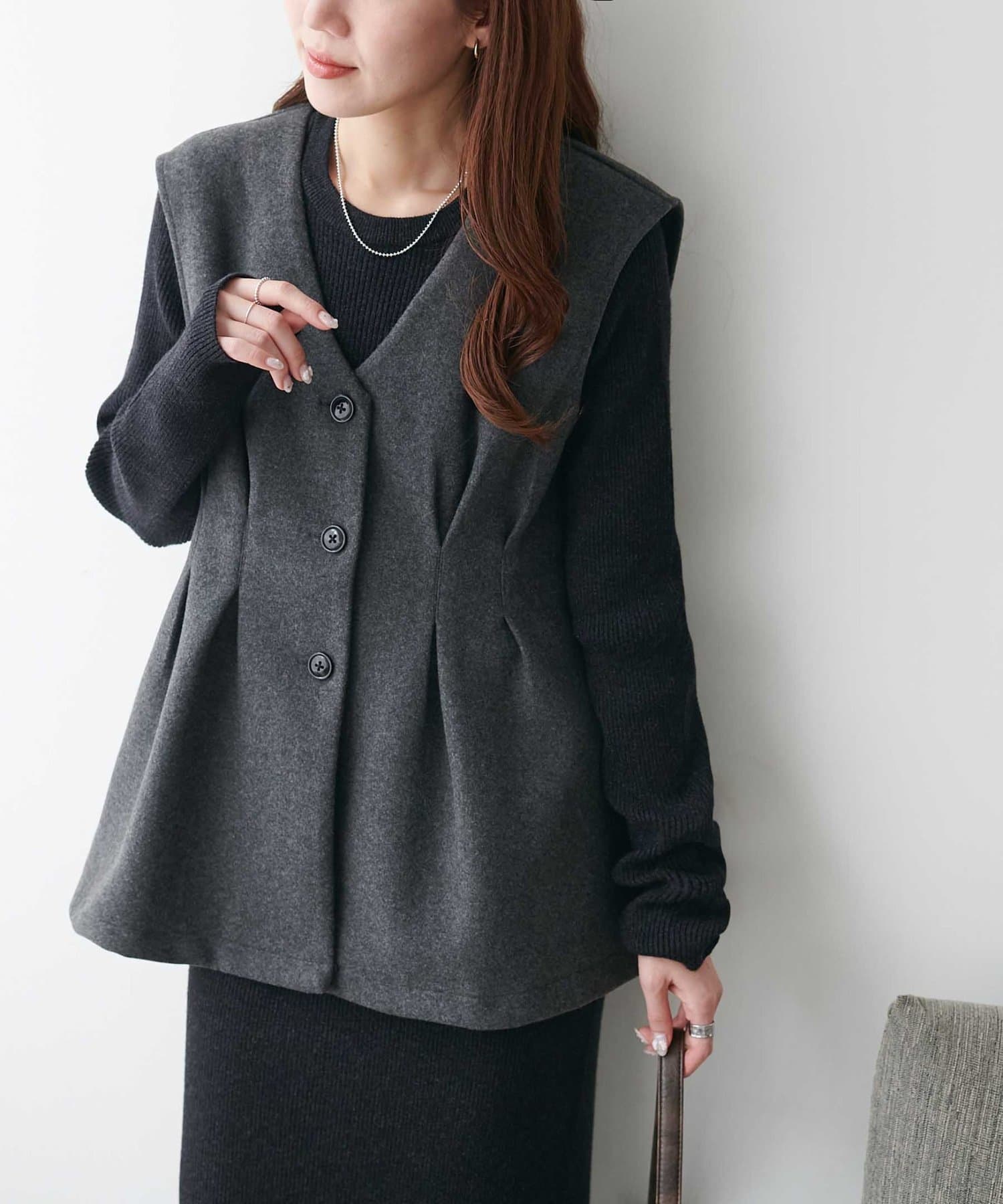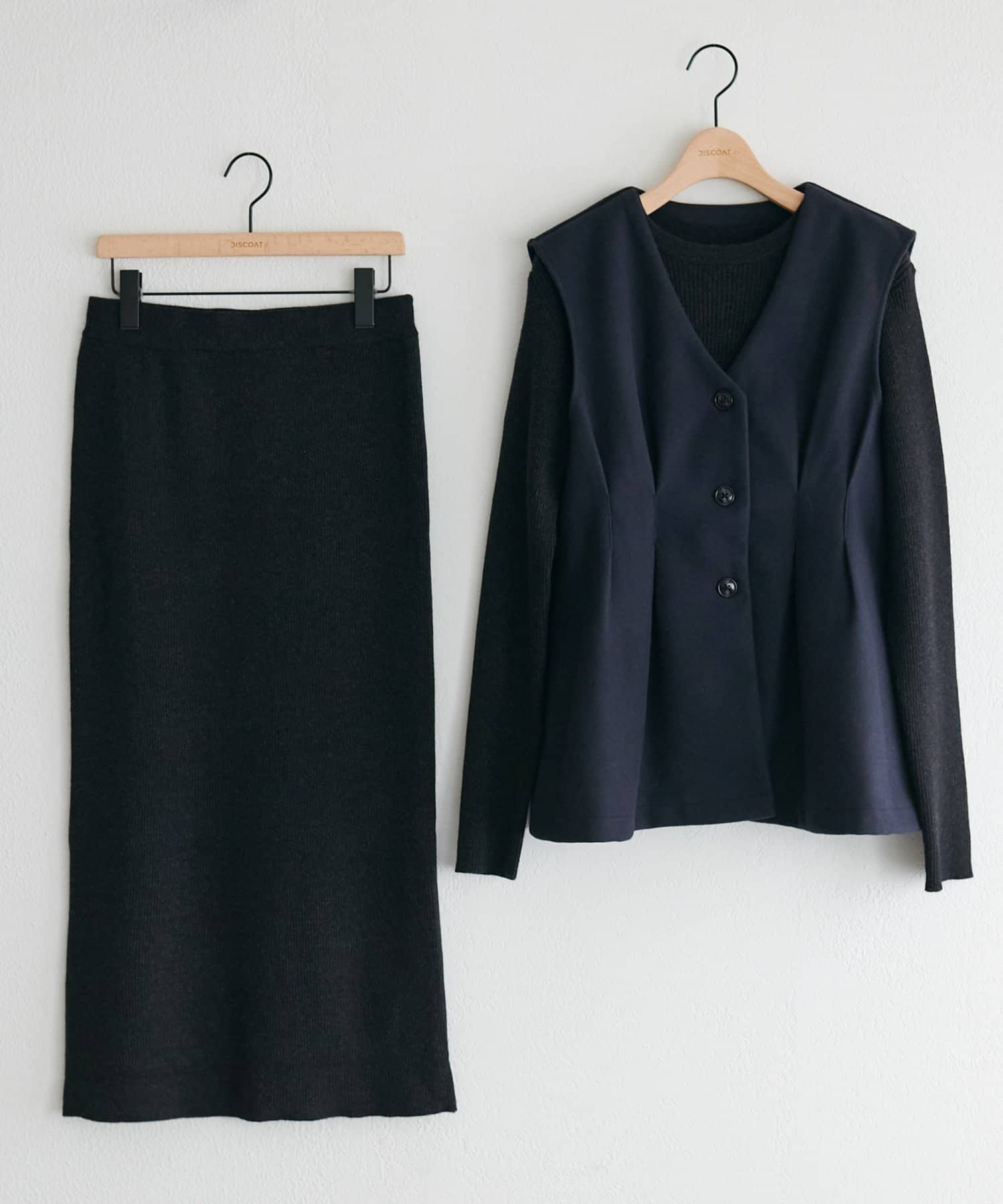 DISCOAT(ディスコート) 【サイズ展開あり/3点セット】ペプラムジレ付マルチウェイセットアップ