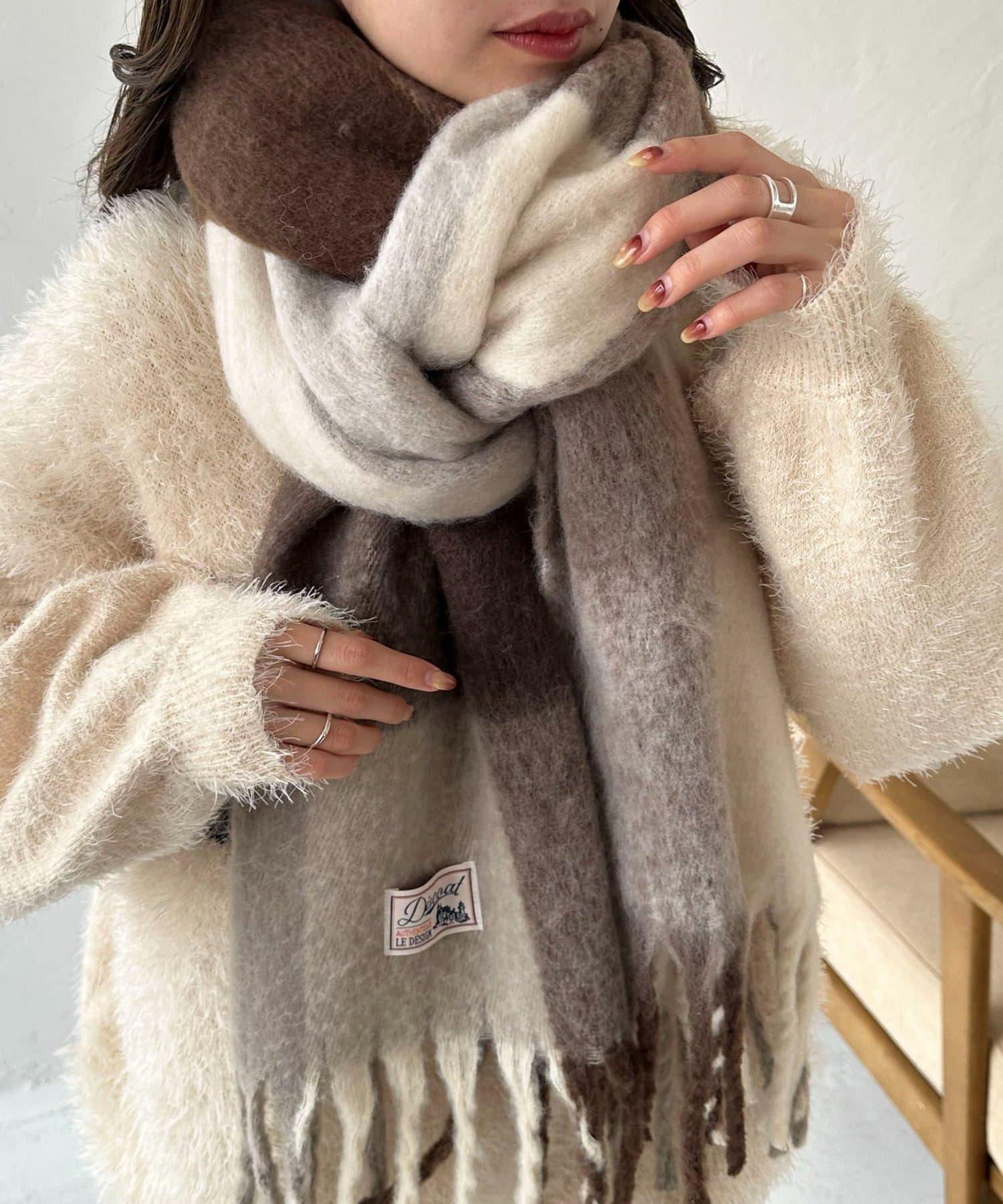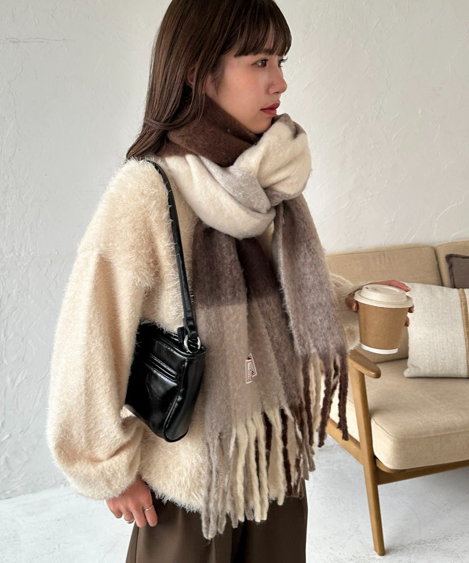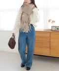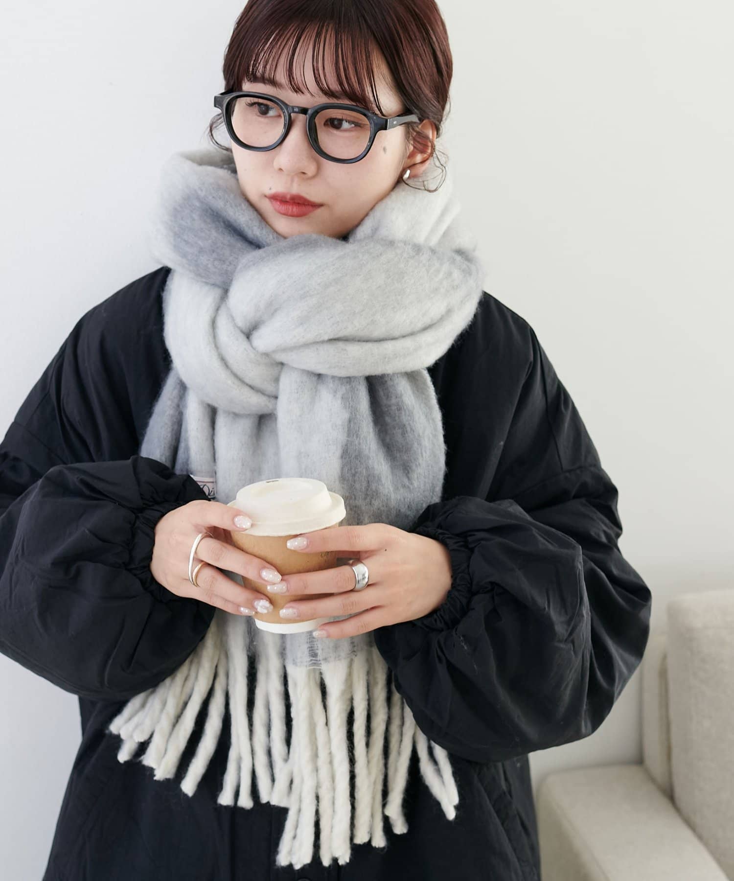 肌触り豊かで存在感ある仕上がりの太フリンジストール。シンプルなコートやジャケットに合わせるだけで、コーディネートにほどよいアクセントをプラス◎大判サイズで、マフラーとしてだけではなく肩掛けや膝掛けとしても重宝します。軽やかな巻き心地ながら、しっかりとした暖かさも兼ね備えているので、冬本番のシーズンに活躍します。冬のコーディネートを“ただ暖かい”だけで終わらせず、「おしゃれ」まで叶えてくる1枚です。