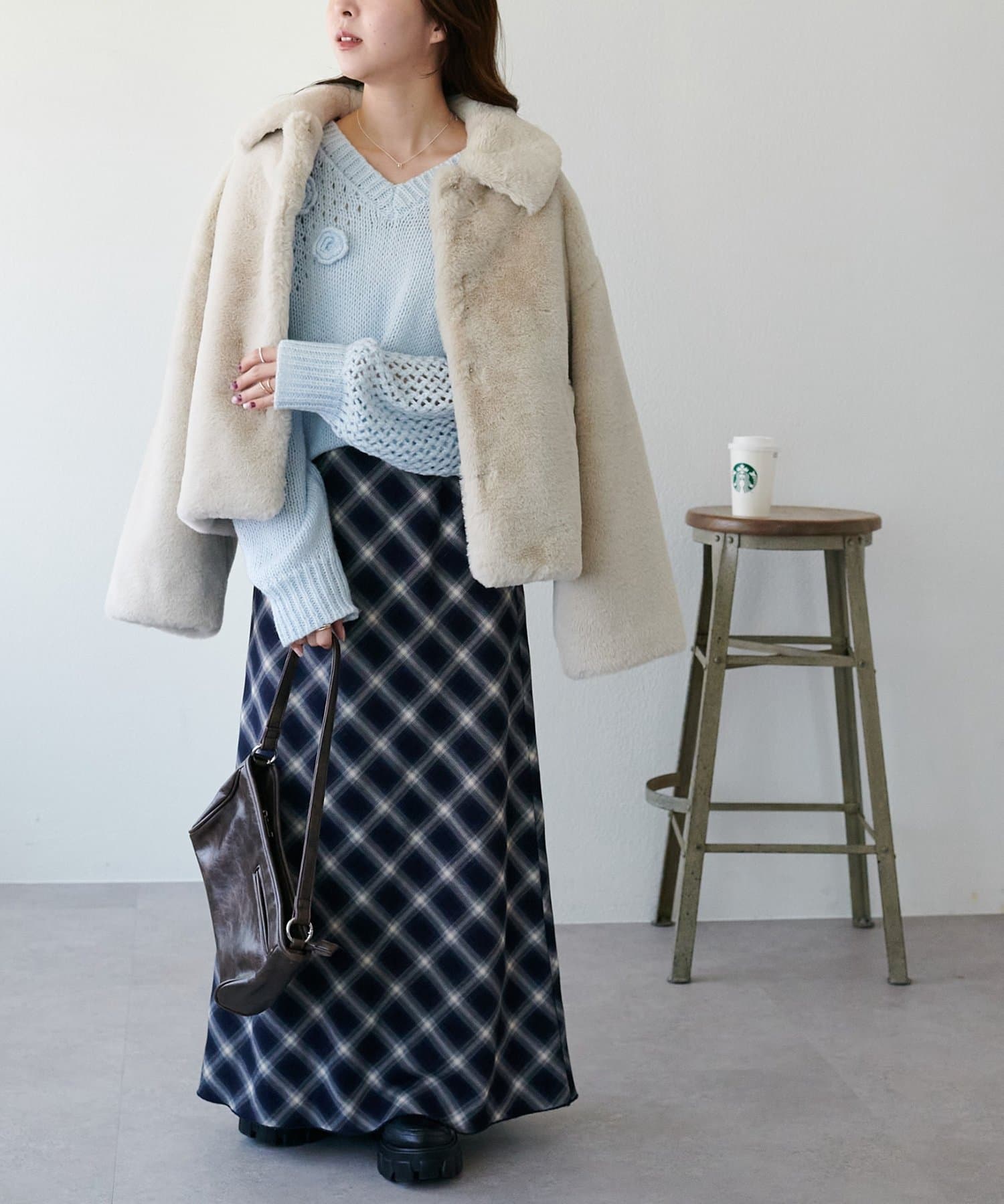 1枚で主役になるデザインなので、シンプルなボトムスと合わせるだけでも雰囲気のあるスタイリングが完成します◎